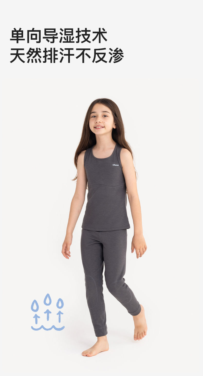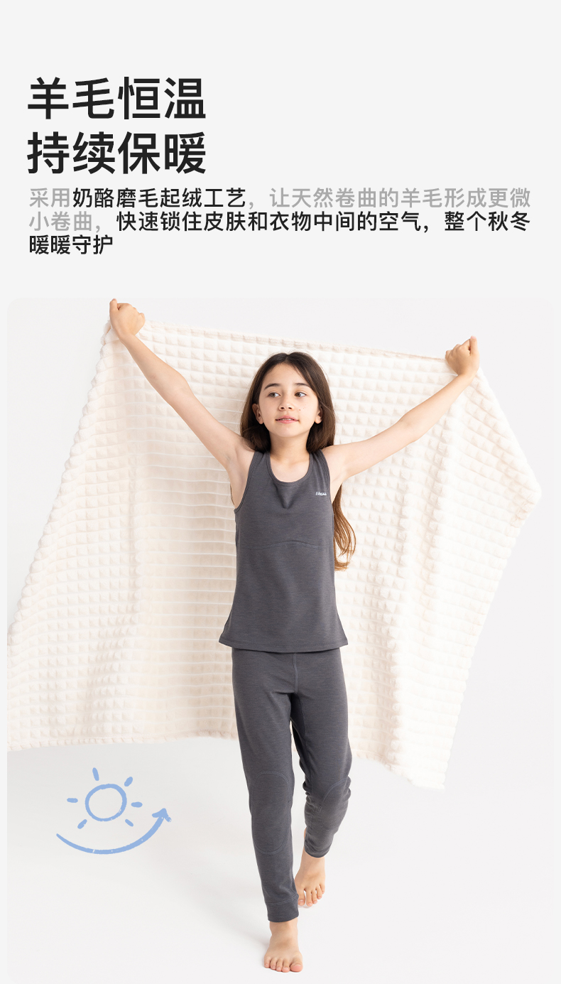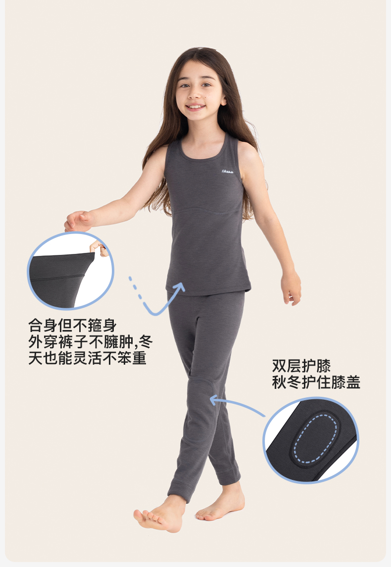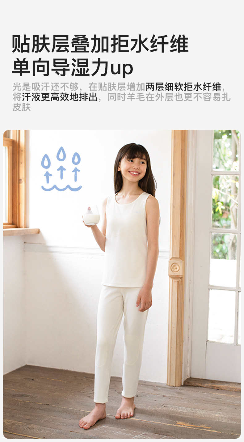 likeuu儿童保暖裤男女大童美利奴羊毛初高中学生双层护膝保暖裤ZY