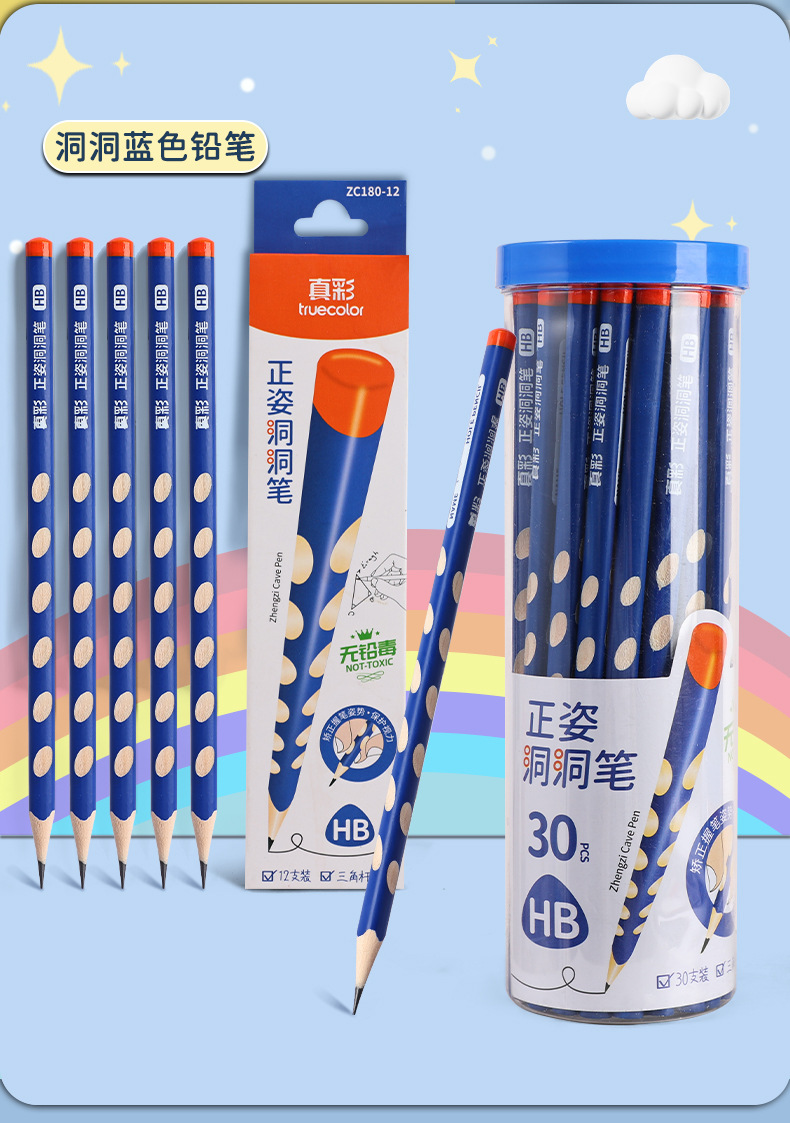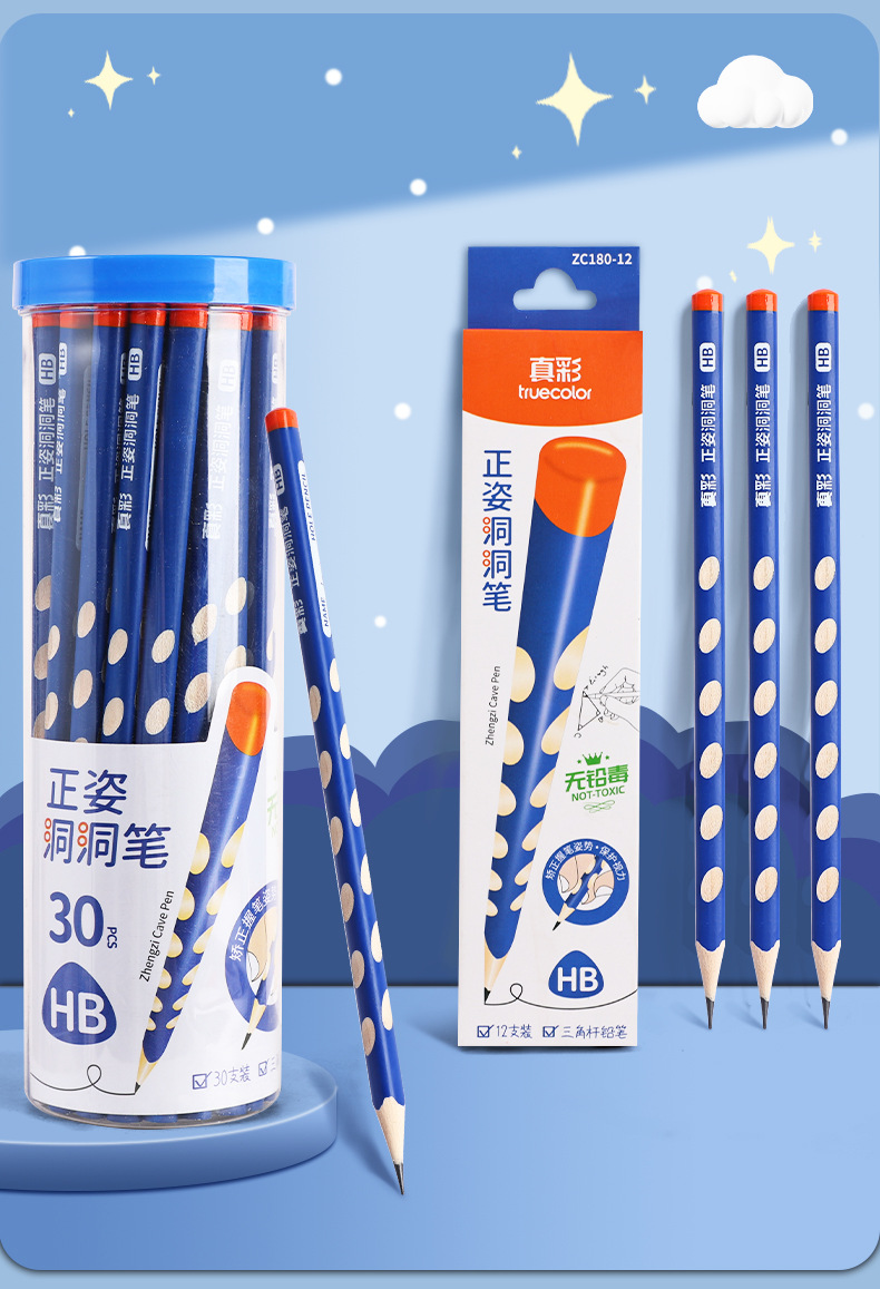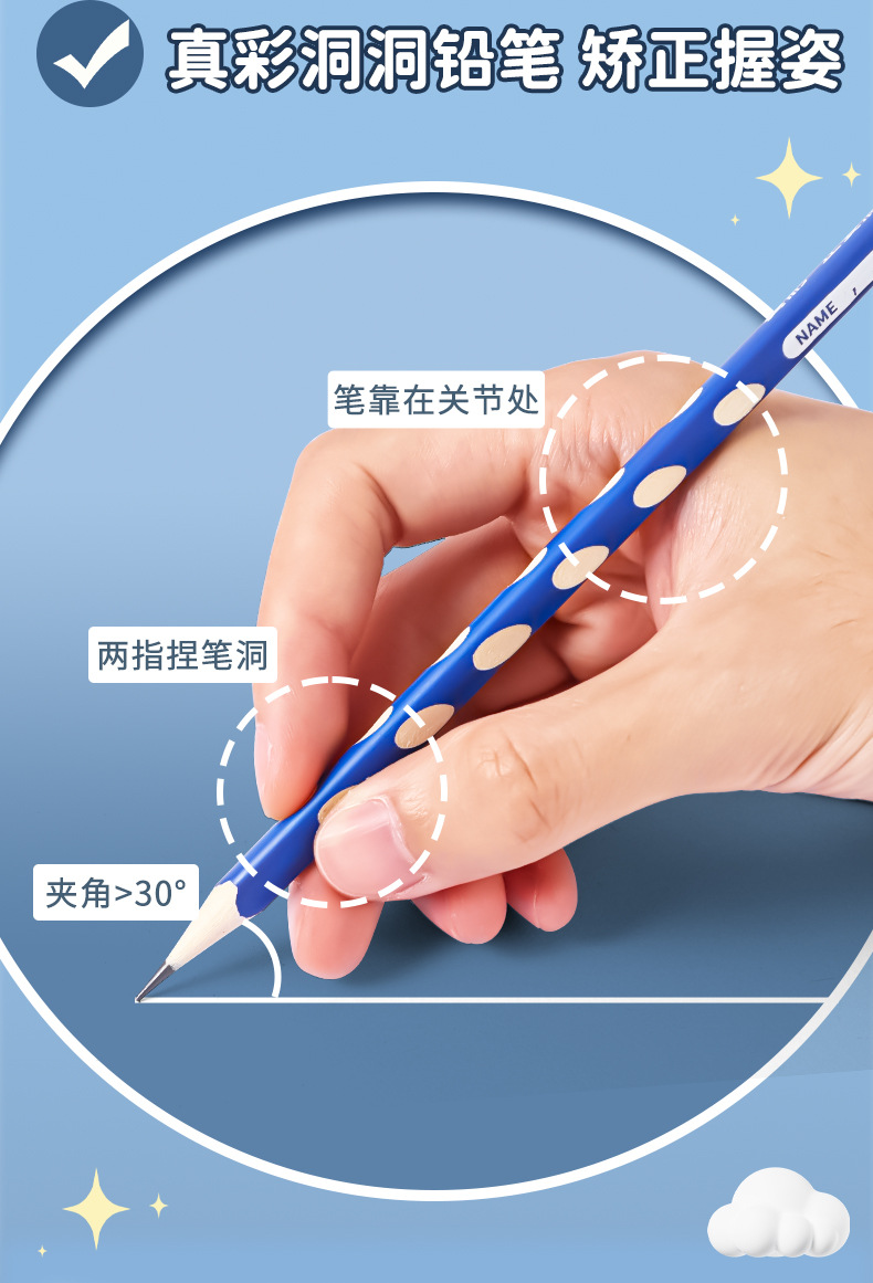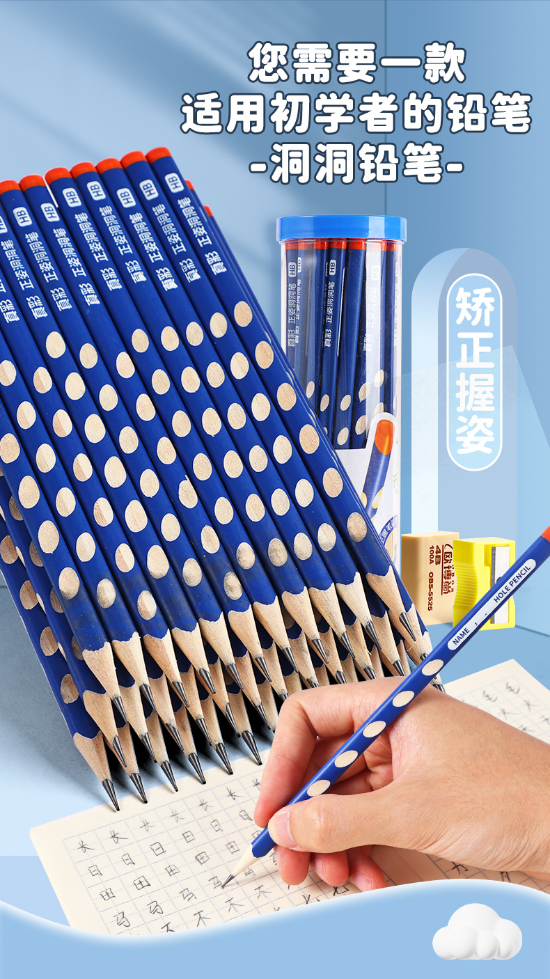 【三角设计,舒适握持】HB洞洞铅笔50支 小学生儿童正姿矫姿 幼儿园练字笔 三角安全无毒-QQ