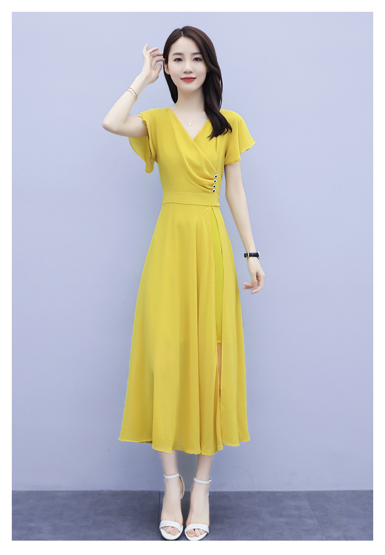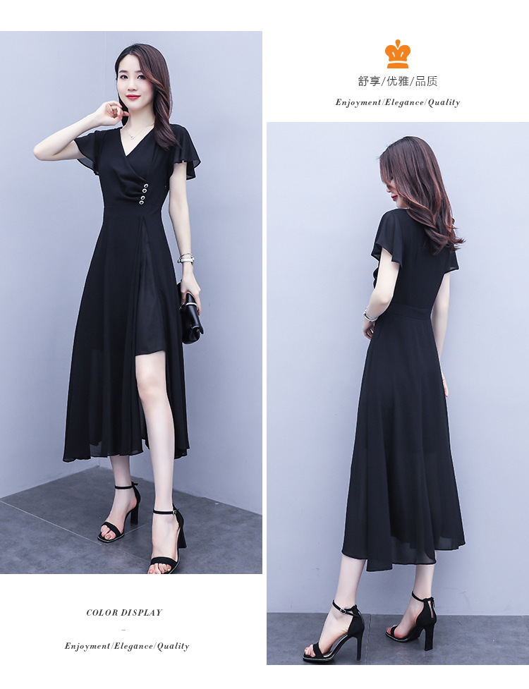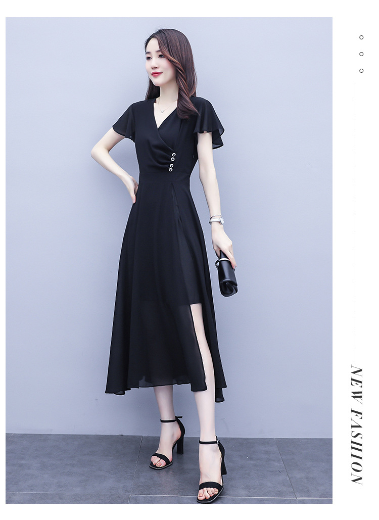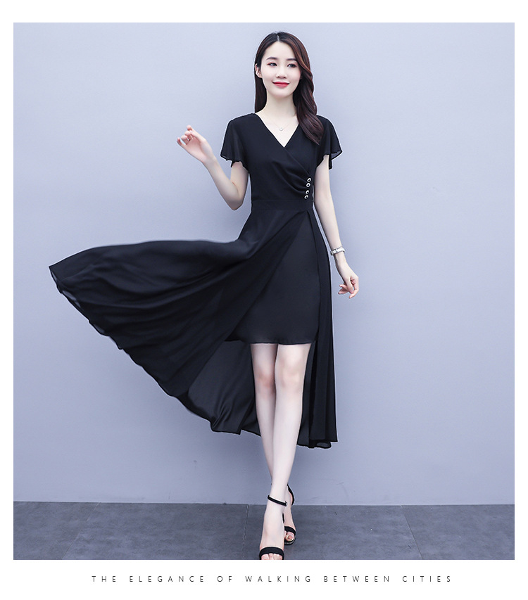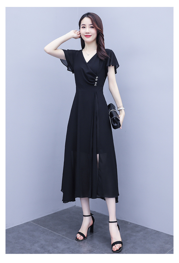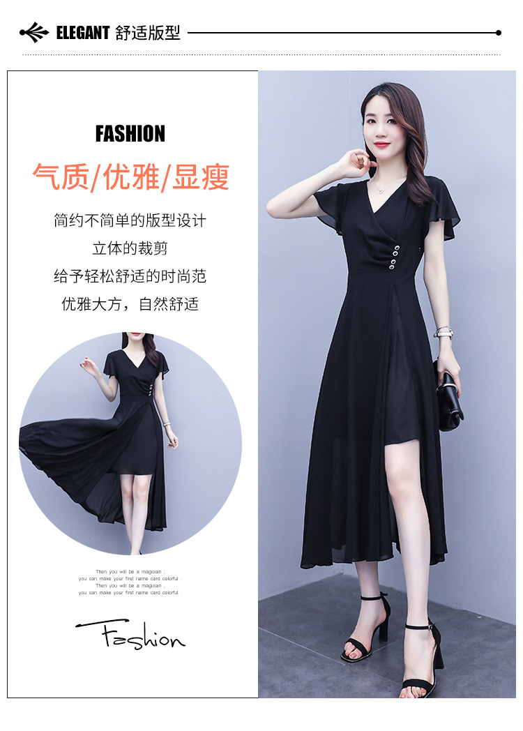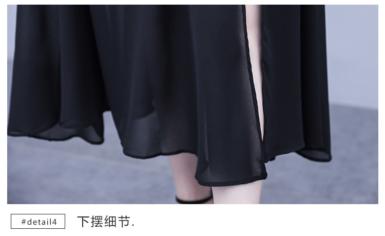 YBY-6158夏季连衣裙 春夏新款胖mm大码雪纺韩版修身显瘦开叉气质长裙