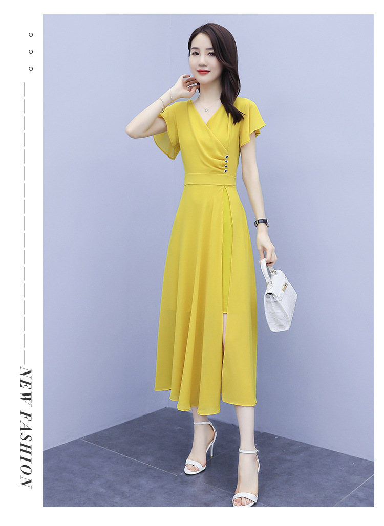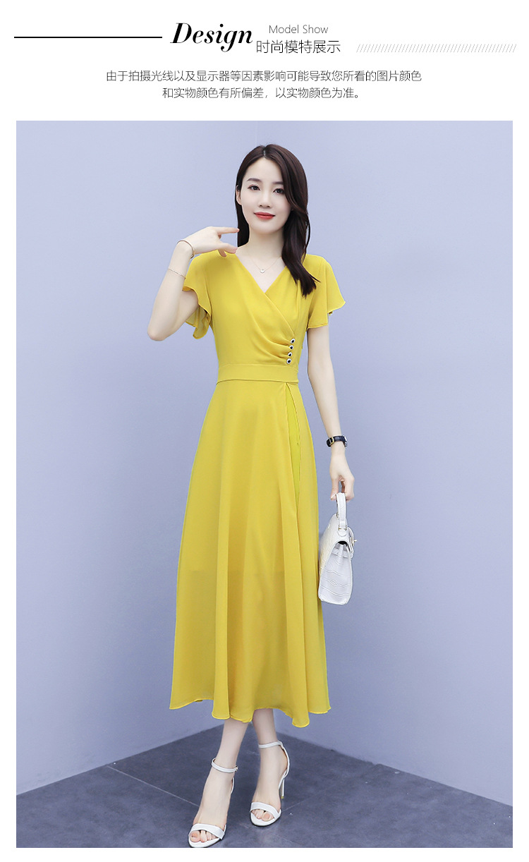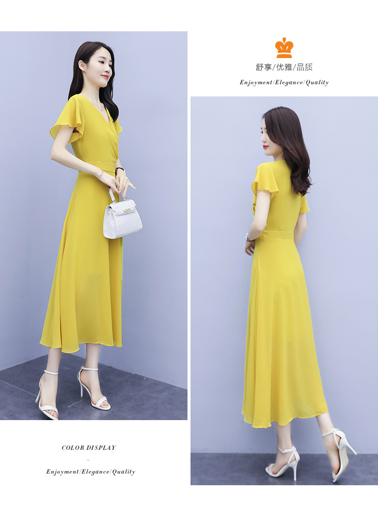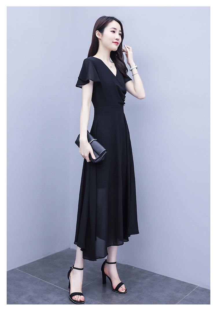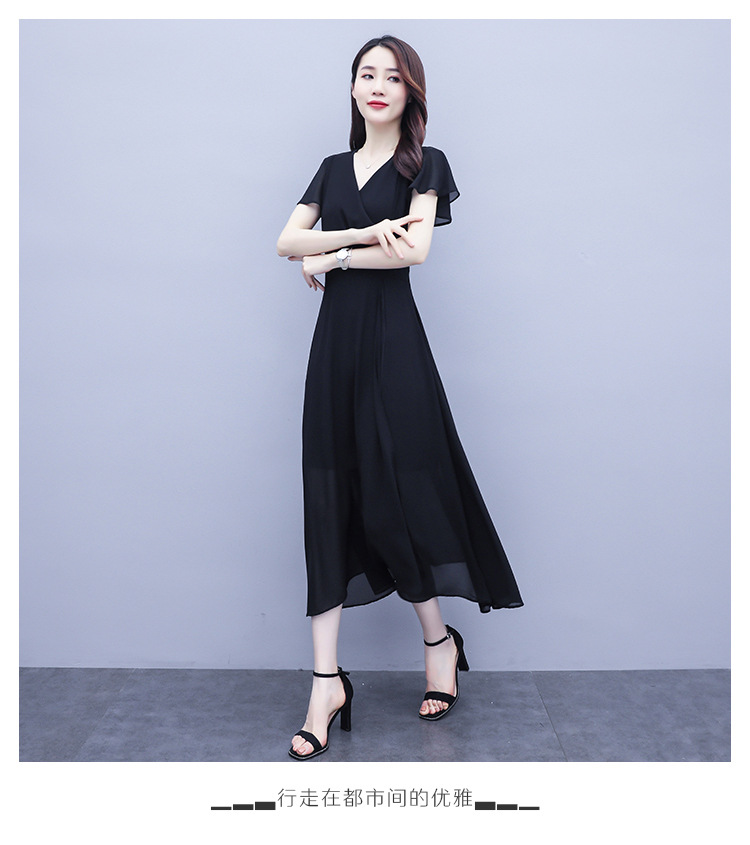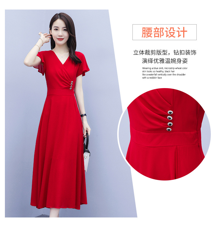 YBY-6158夏季连衣裙 春夏新款胖mm大码雪纺韩版修身显瘦开叉气质长裙