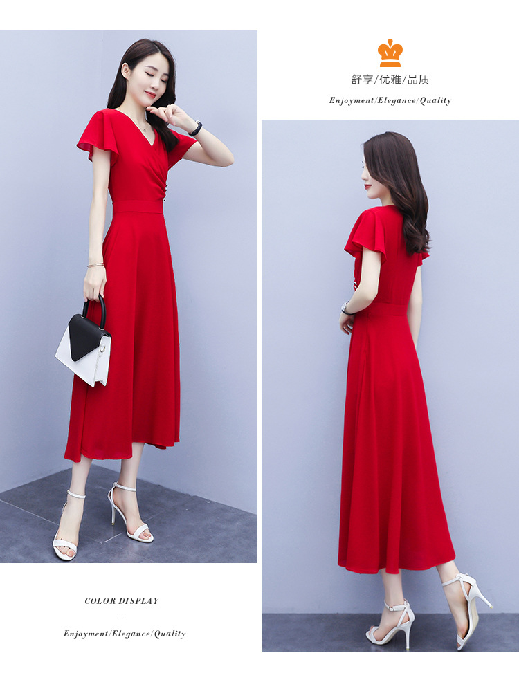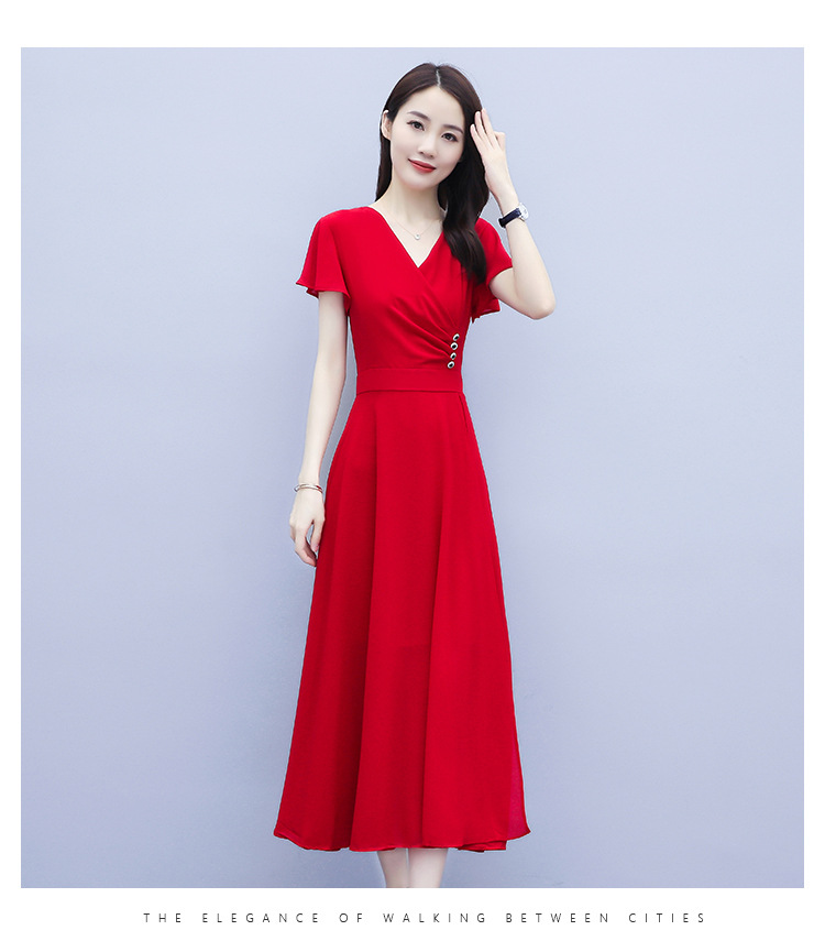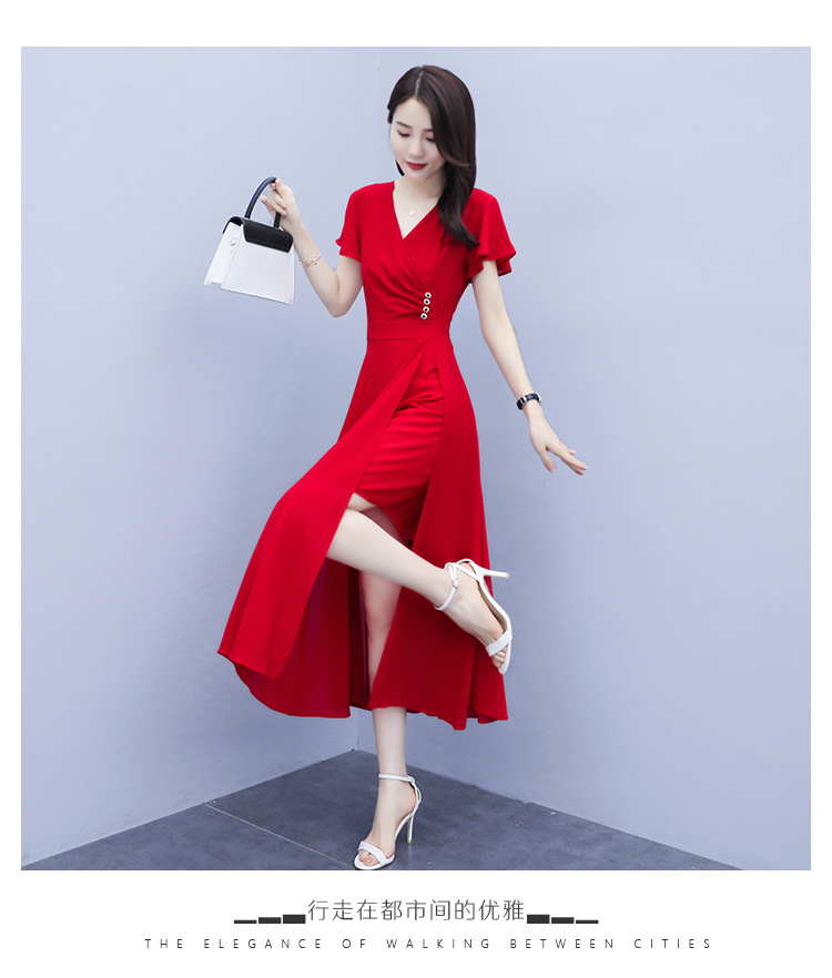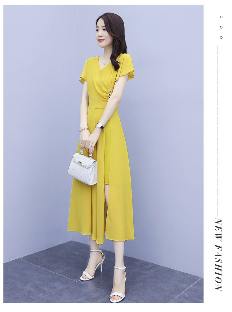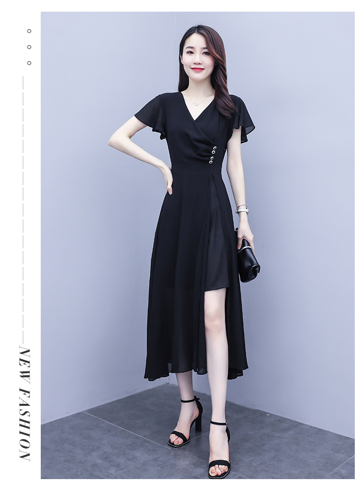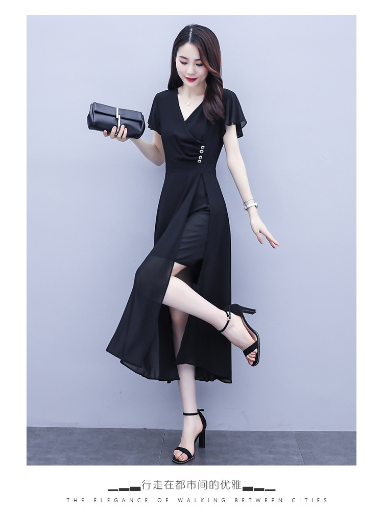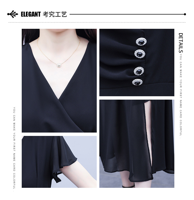 YBY-6158夏季连衣裙 春夏新款胖mm大码雪纺韩版修身显瘦开叉气质长裙