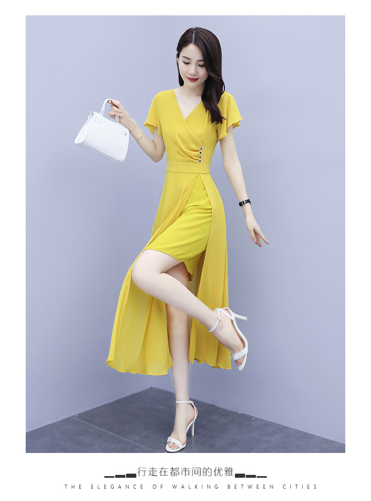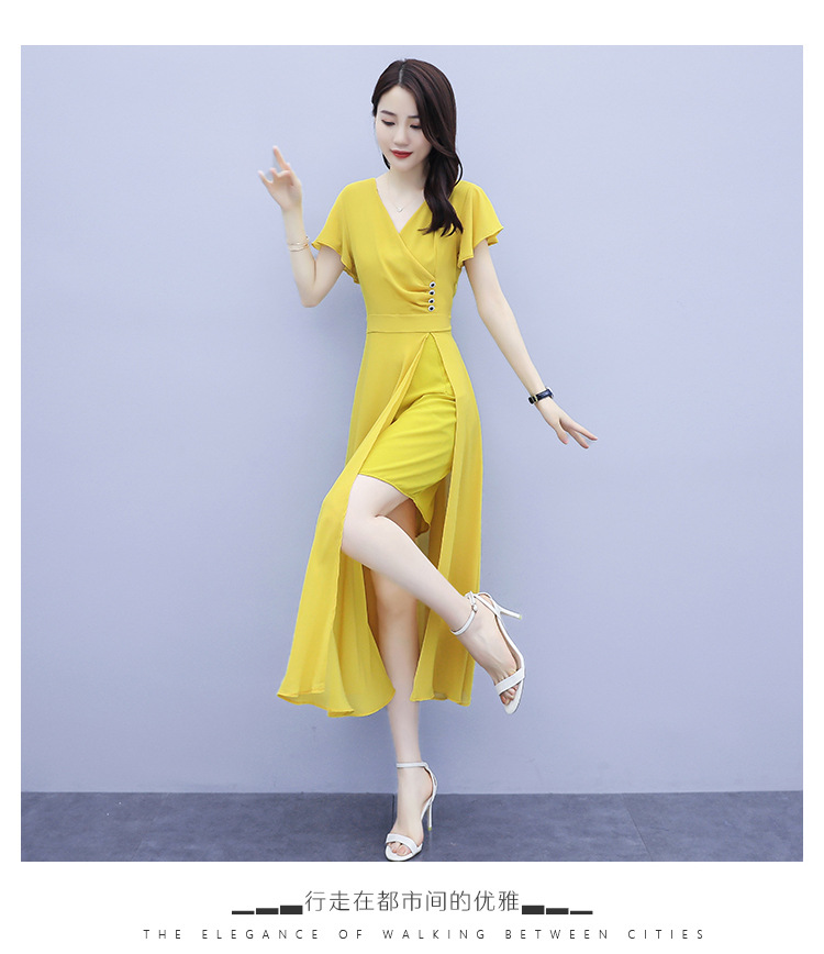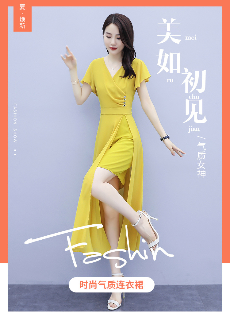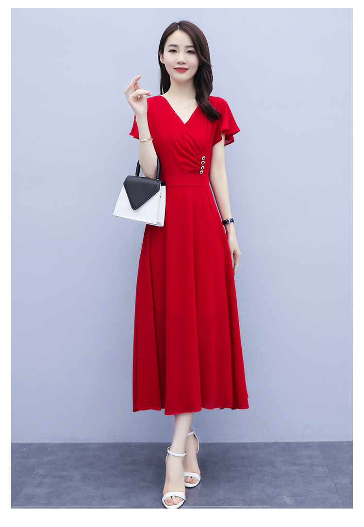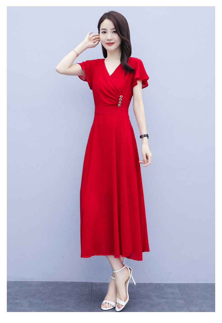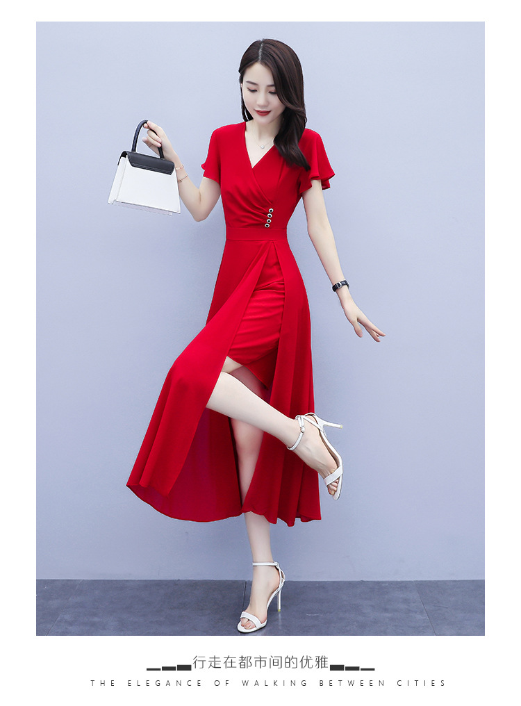 YBY-6158夏季连衣裙 春夏新款胖mm大码雪纺韩版修身显瘦开叉气质长裙