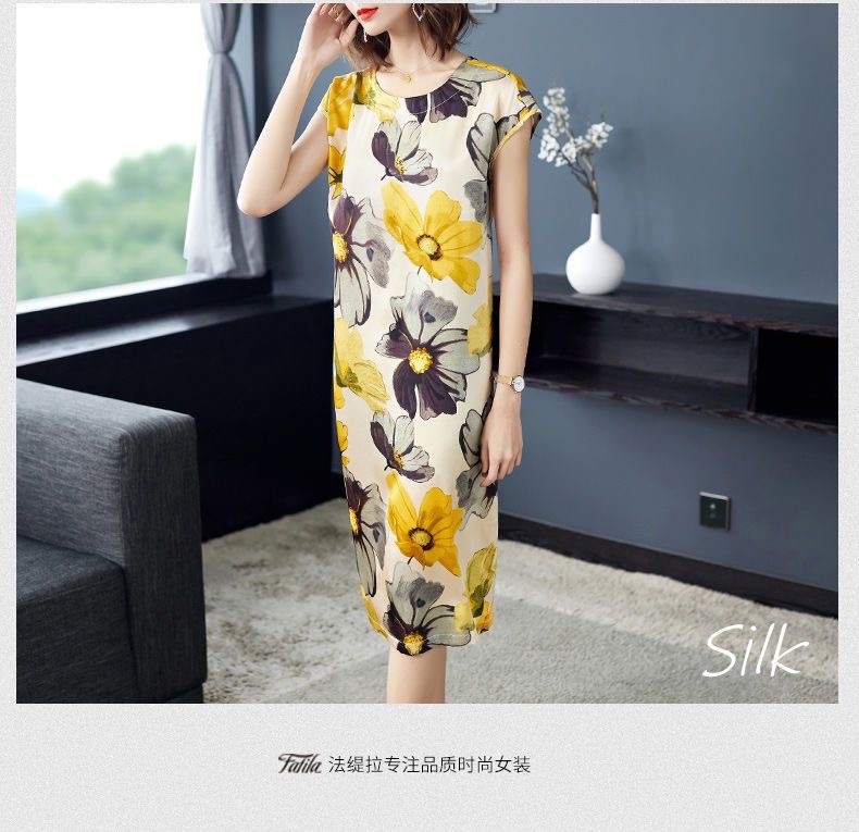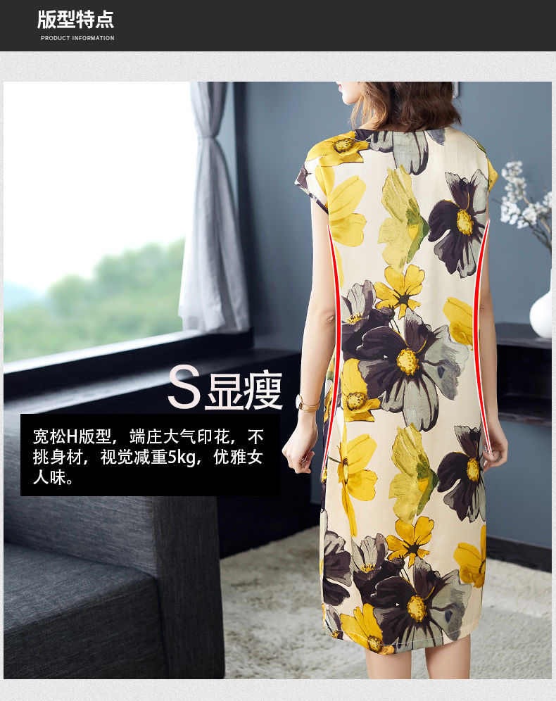 丁摩 真丝裙子桑蚕丝衬衫宽松印花裙子20-153HS-DS399