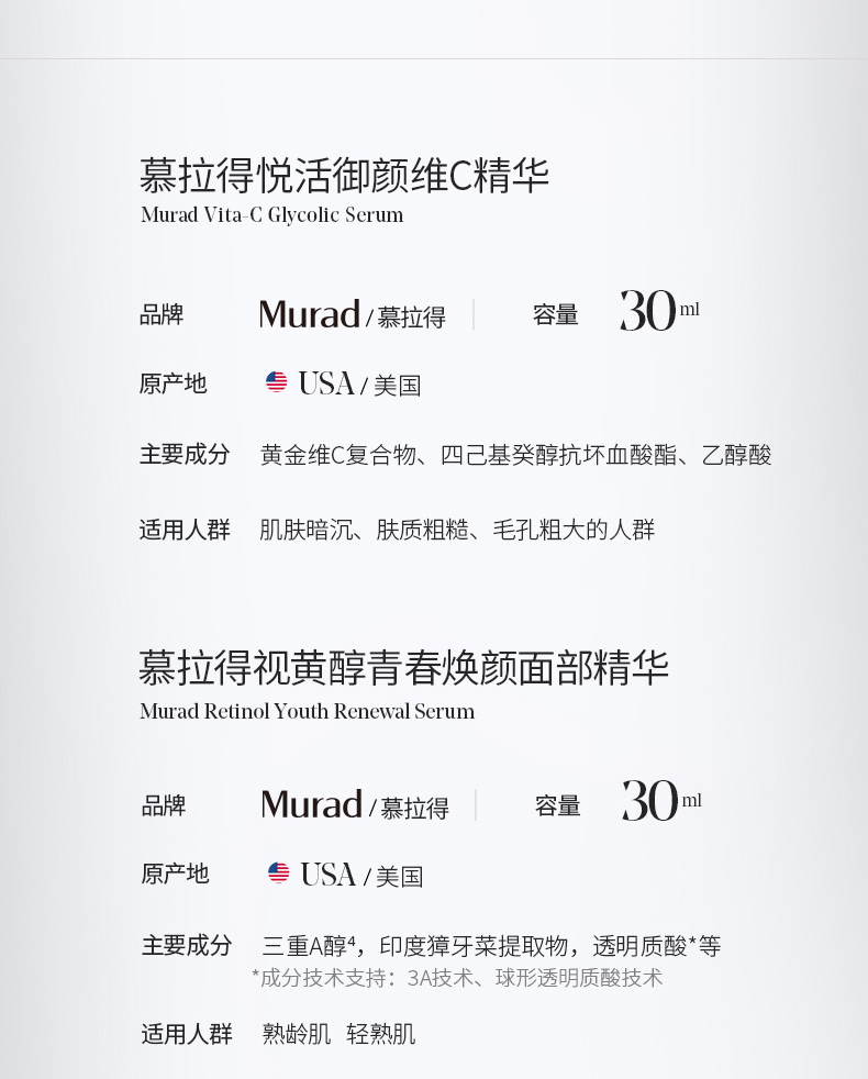 精华进阶套组 A醇精华30ml+VC精华30ml Murad慕拉得