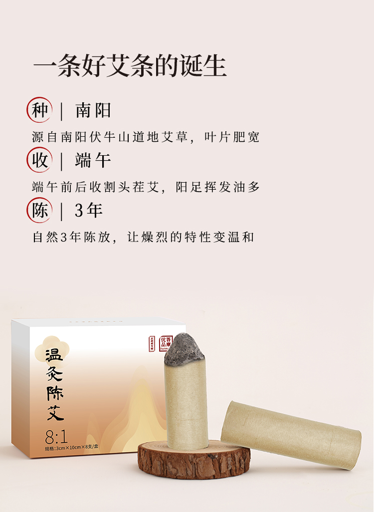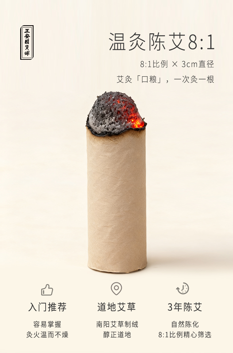 正安·艾火有力 温而不燥的温灸陈年艾条(8:1) 3.0cm*10cm*8支(升级版)
