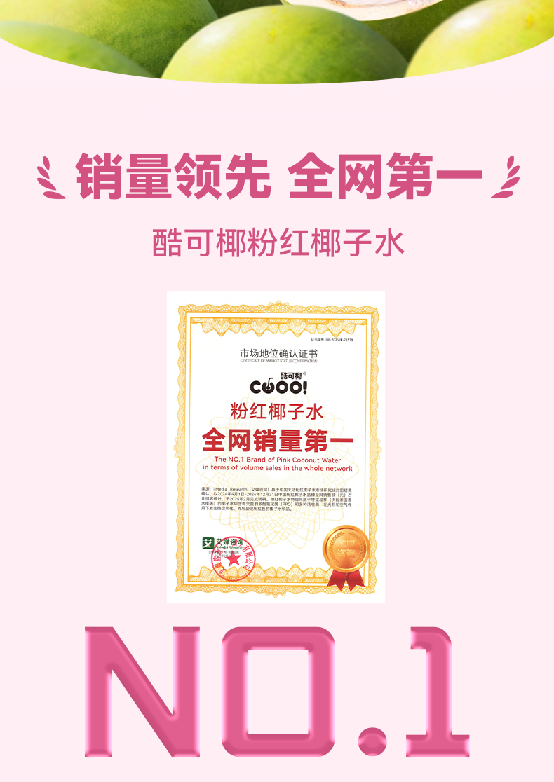 100%鲜萃粉红椰子水 纯天然 不加糖 无调味 精选泰国NamHom香水椰 0香精0色素 富含电解质 酷可椰