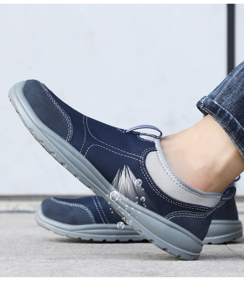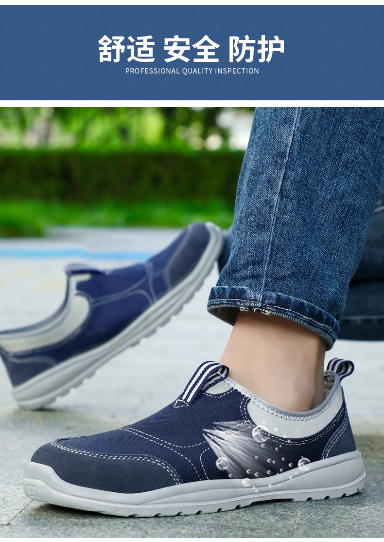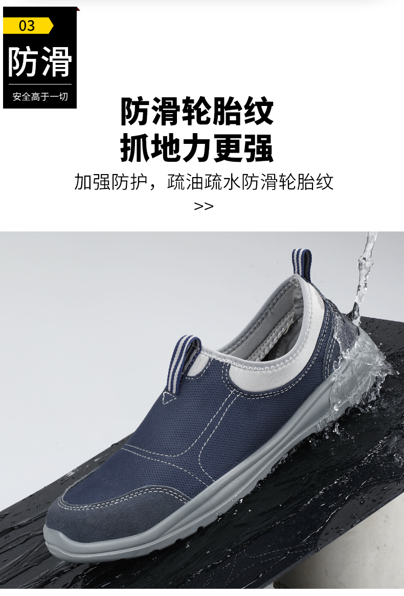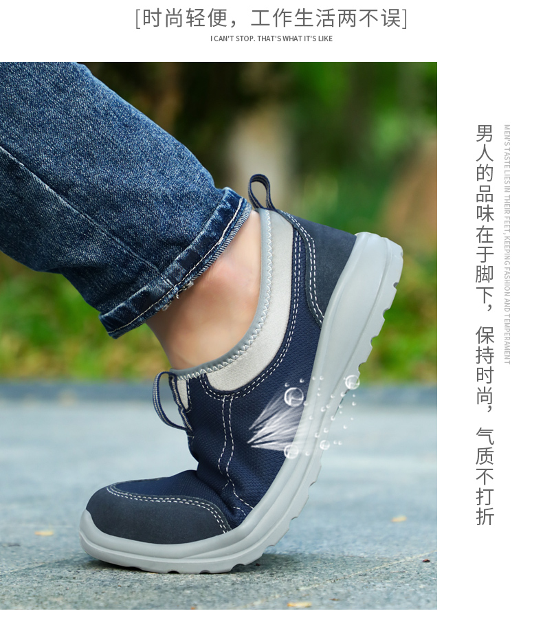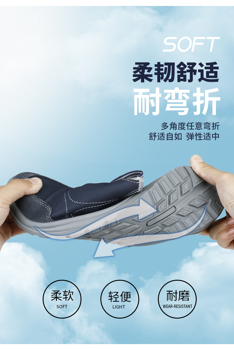 夏季四季款低帮蓝色透气劳保鞋耐磨实心底反绒皮网布拼接透气