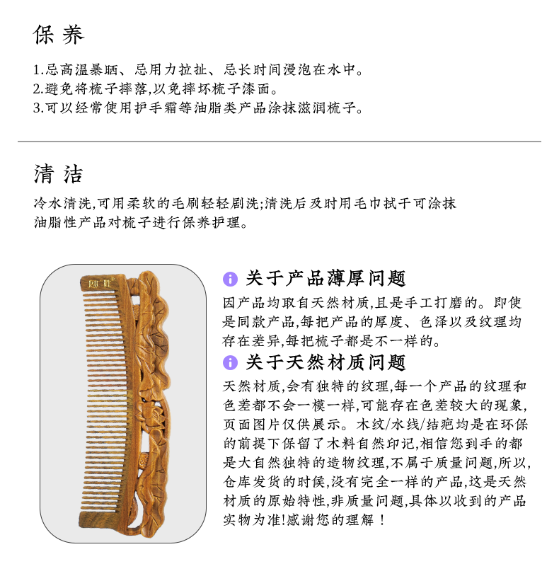 周广胜正品南美酸枝绶带鸟合木梳防静电个人清洁护理送女士长发家用便携