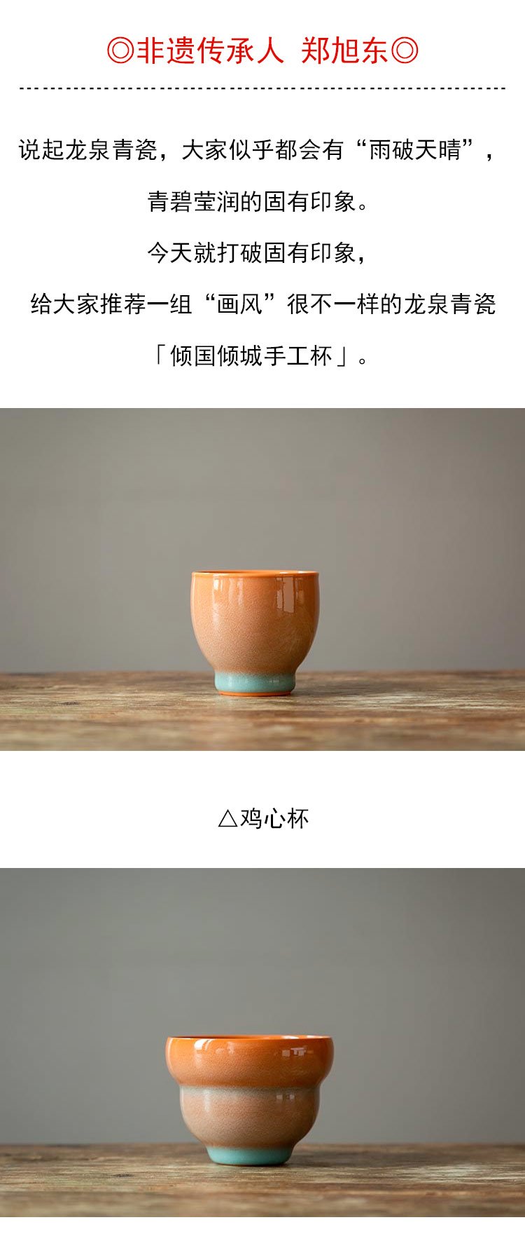 茶香记 龙泉青瓷郑旭东手工杯倾国倾城福禄杯100ml非遗传承人茶杯