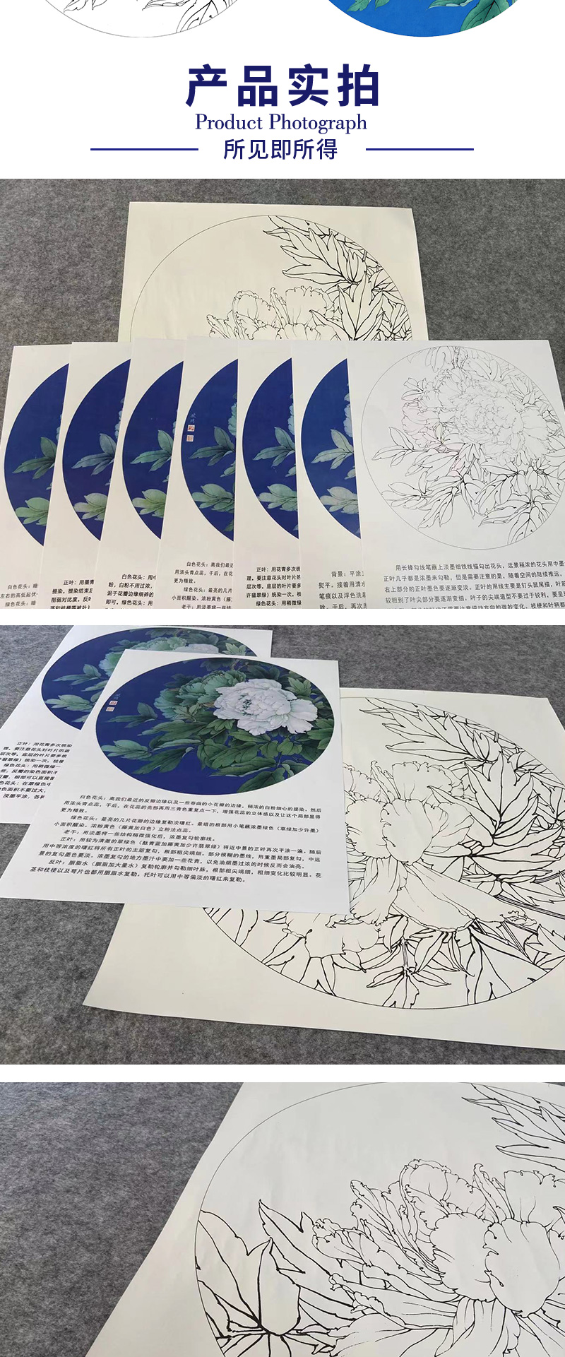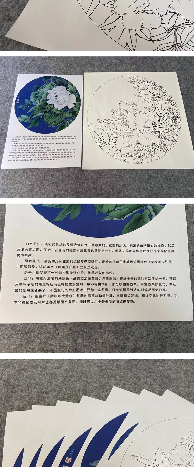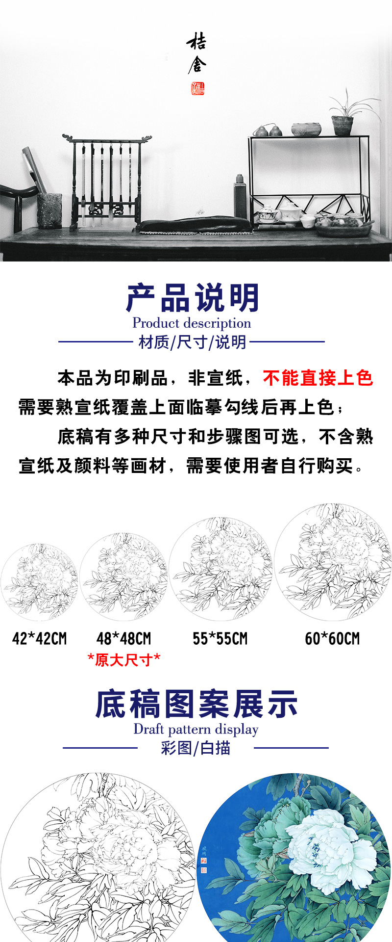 【有步骤、大彩图】工笔画白描底稿《国色双辉》牡丹花鸟线稿KG08