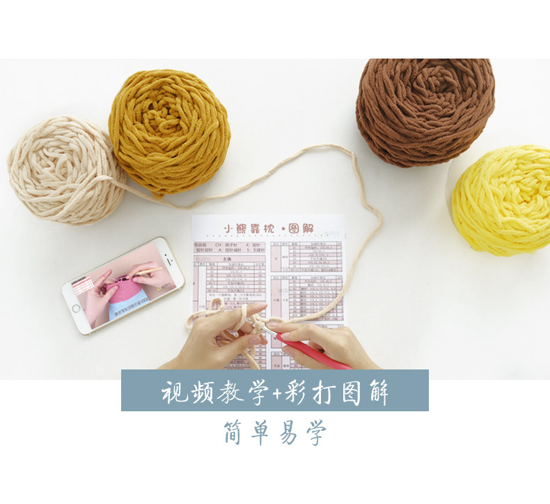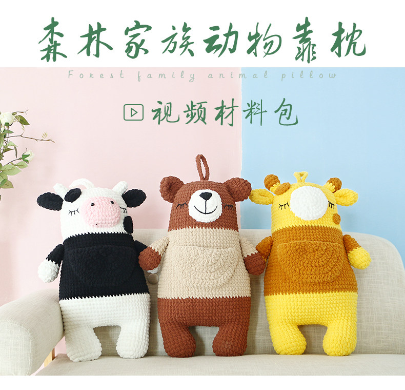 如意鸟 动物靠枕抱枕纯色冰条手工编织diy视频教程材料包