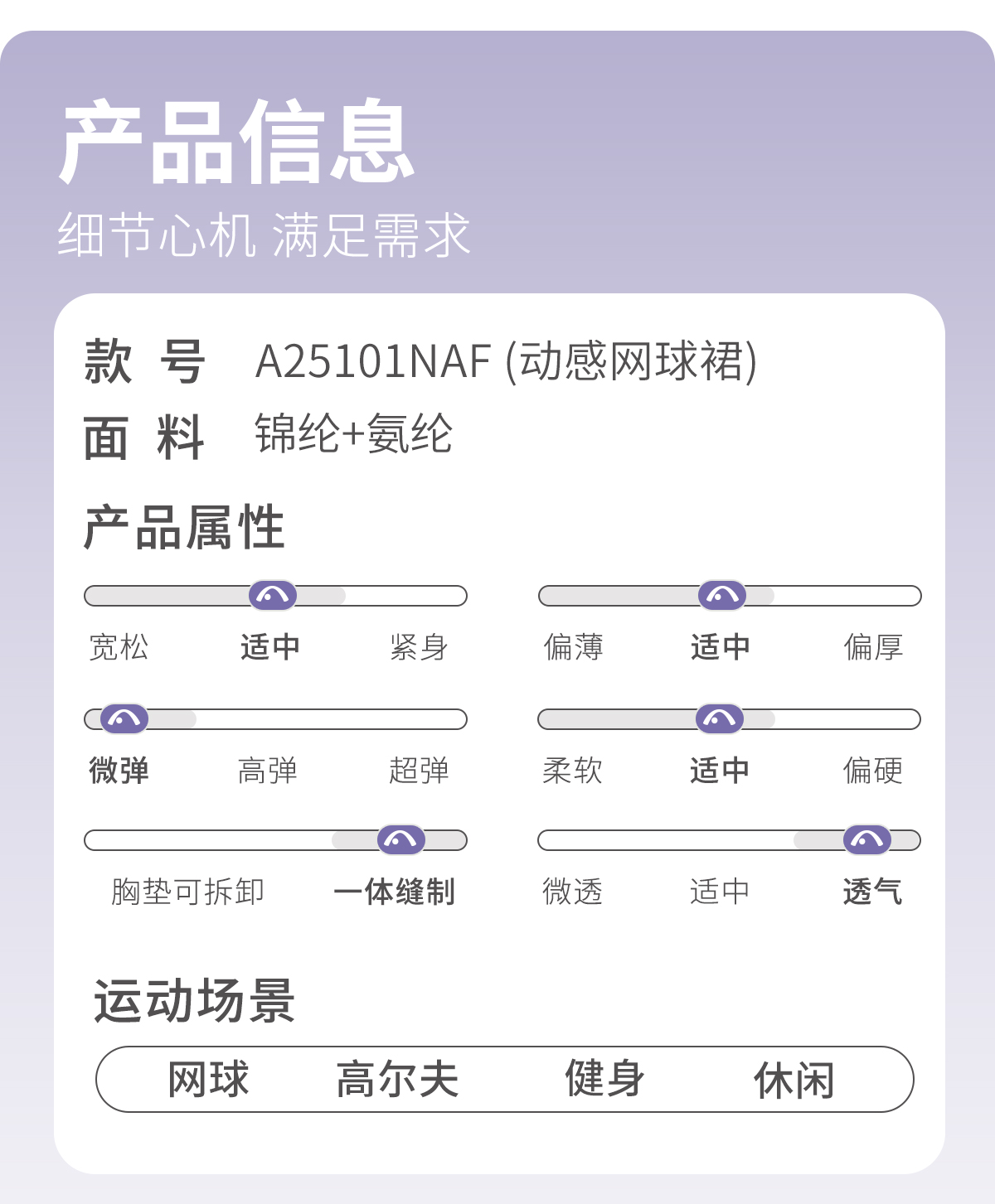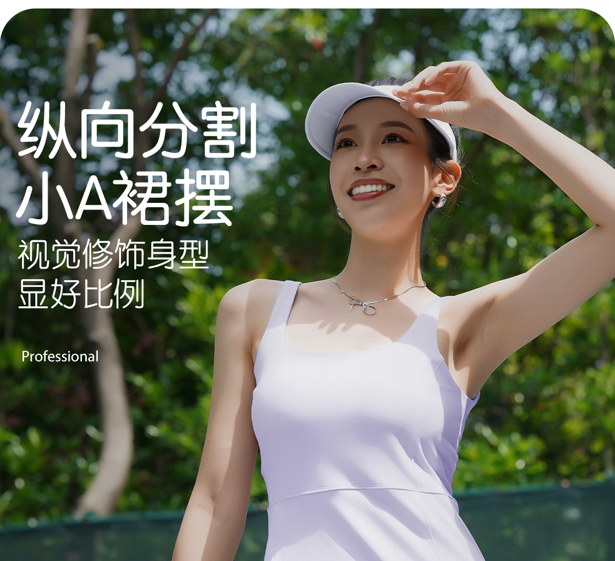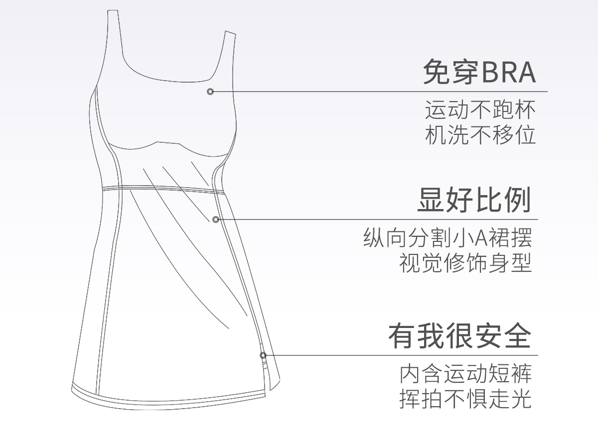 爱暇步网球裙连衣裙女带胸垫运动健身防走光瑜伽服连体羽毛球裙A25101NA