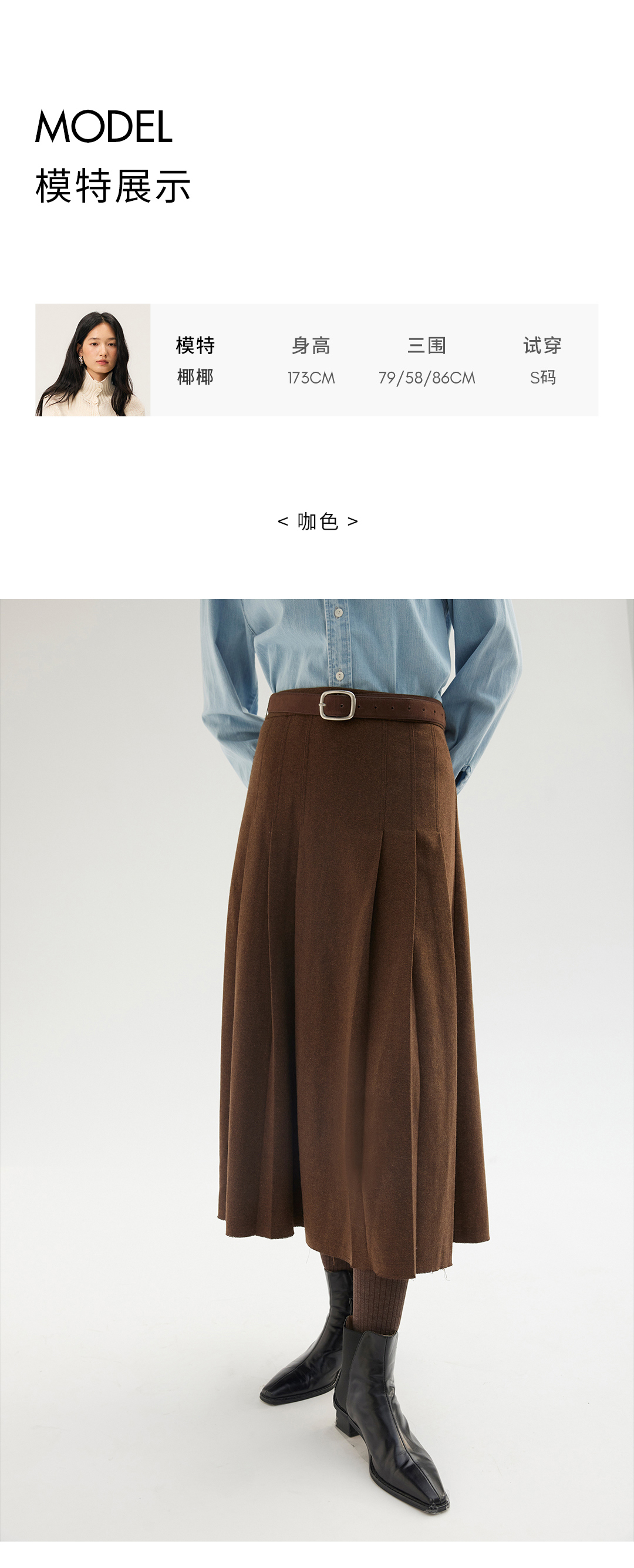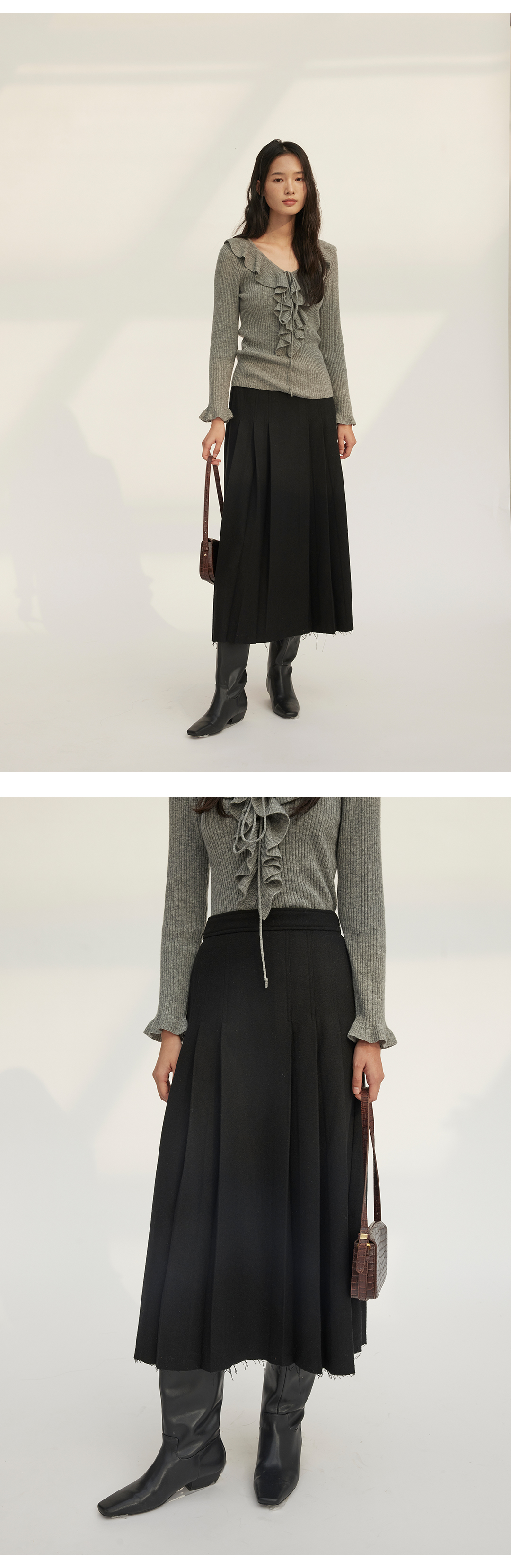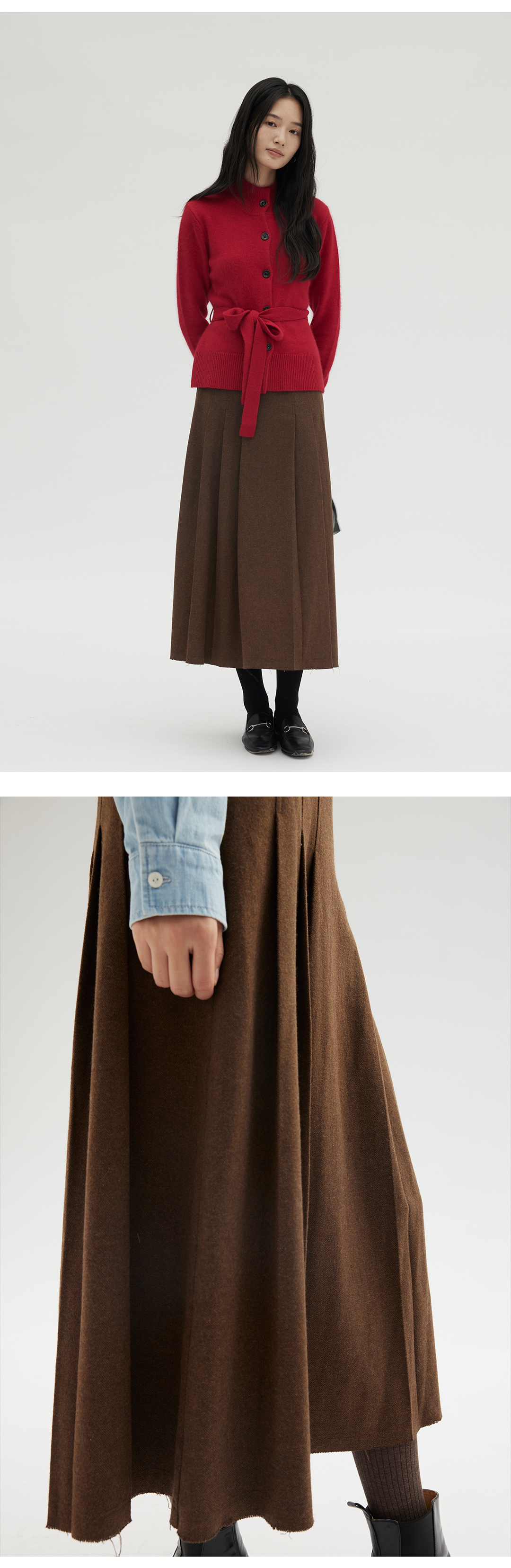HeyDress羊毛毛呢叠褶半裙