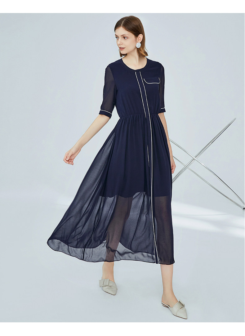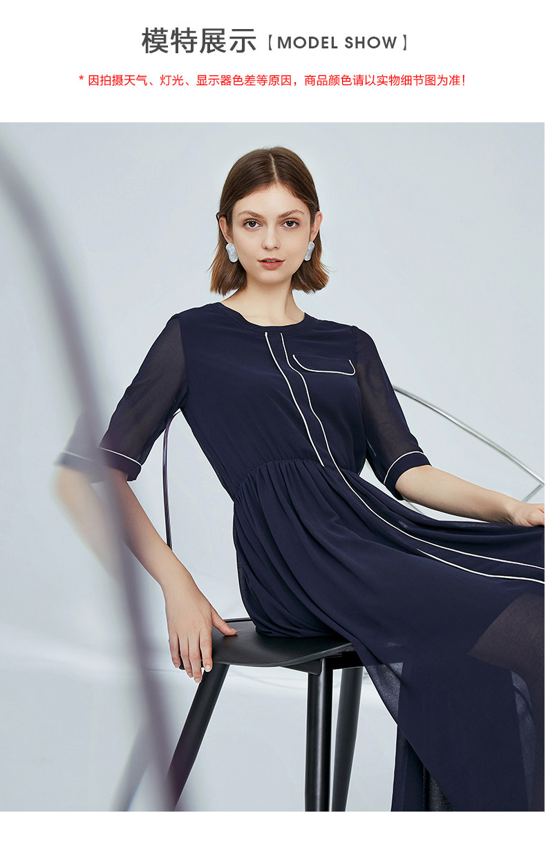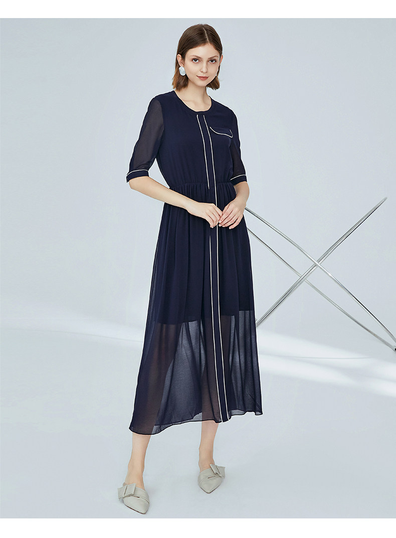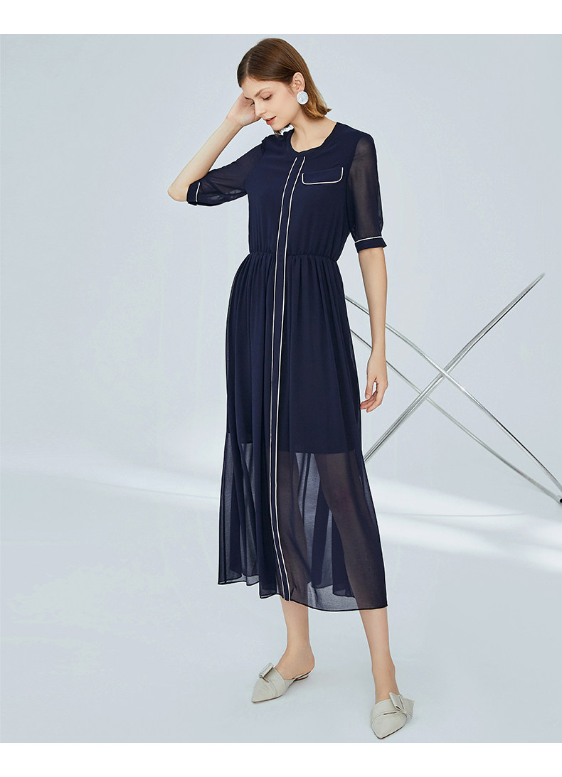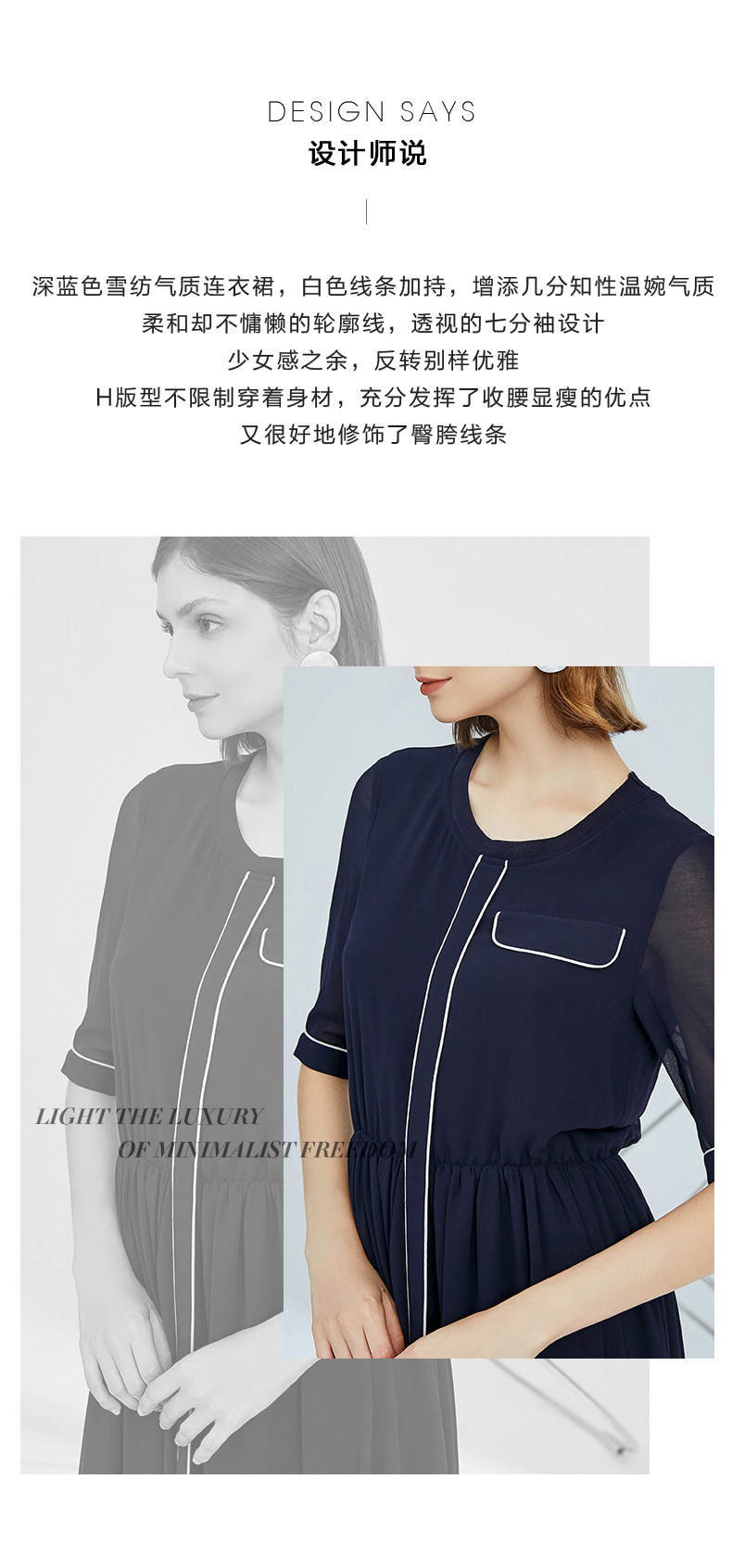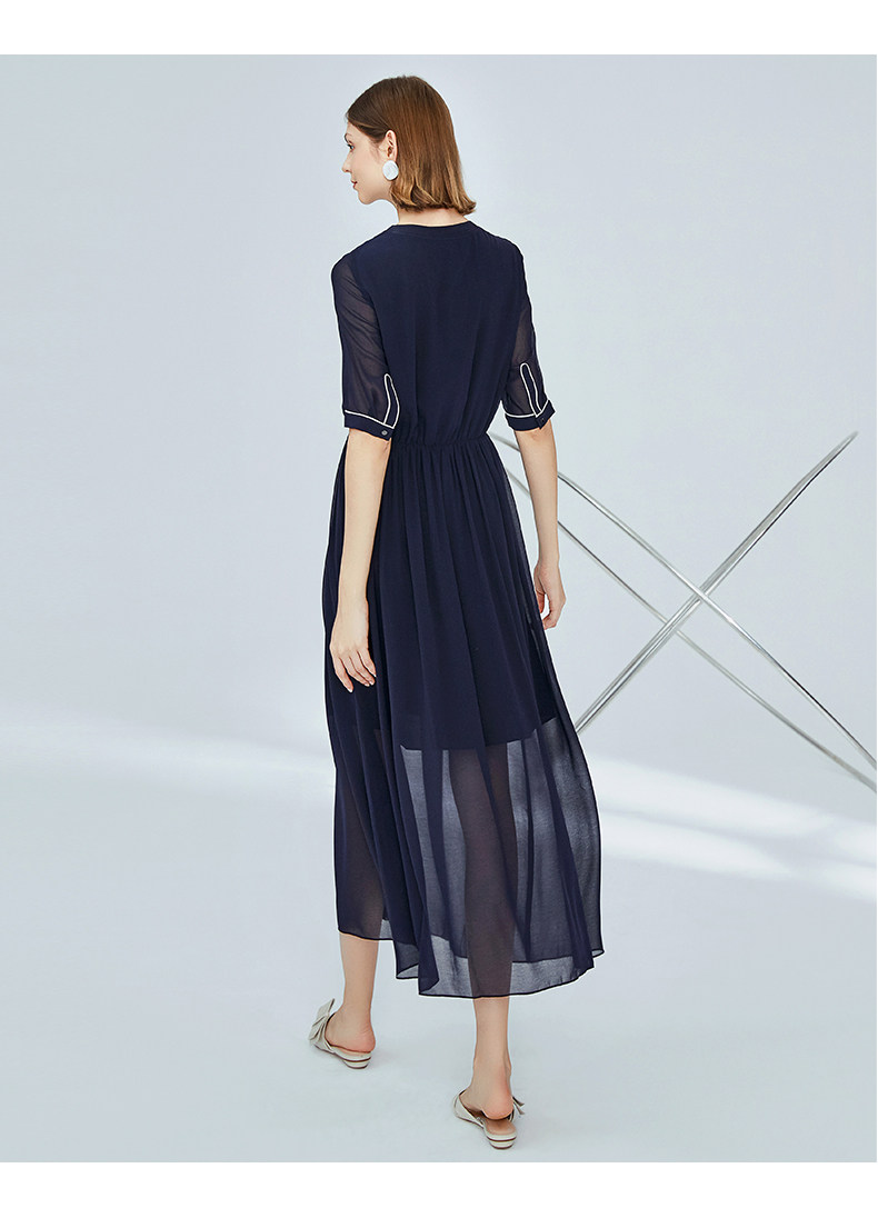 VIMAGE纬漫纪女装夏季深色雪纺高腰显瘦气质连衣裙长款薄V1107762