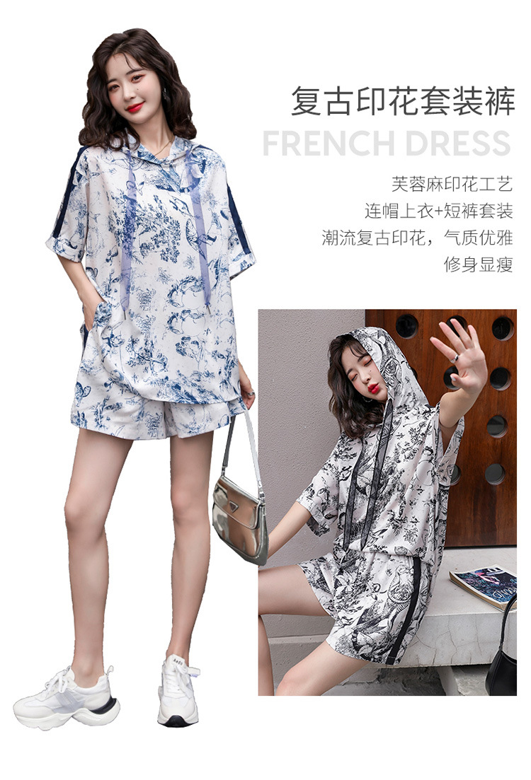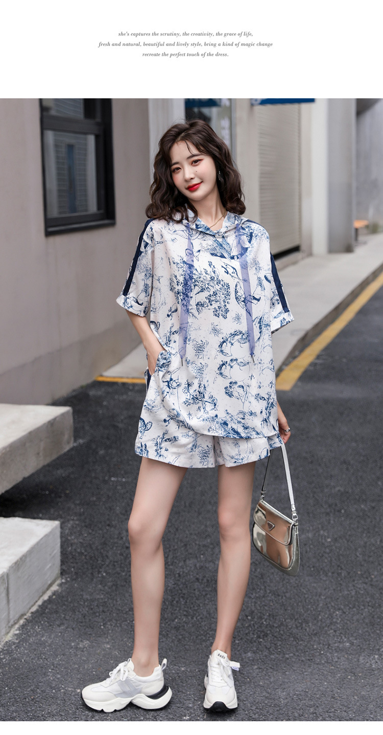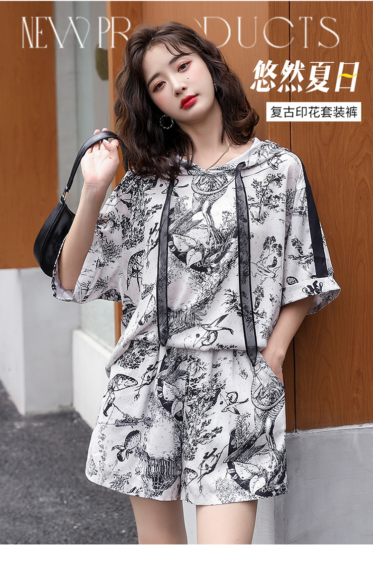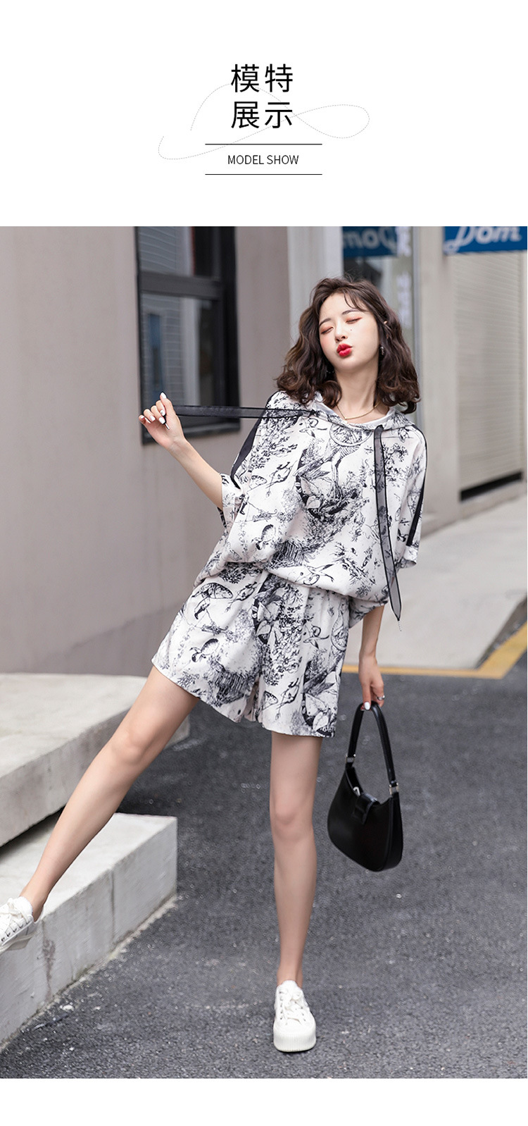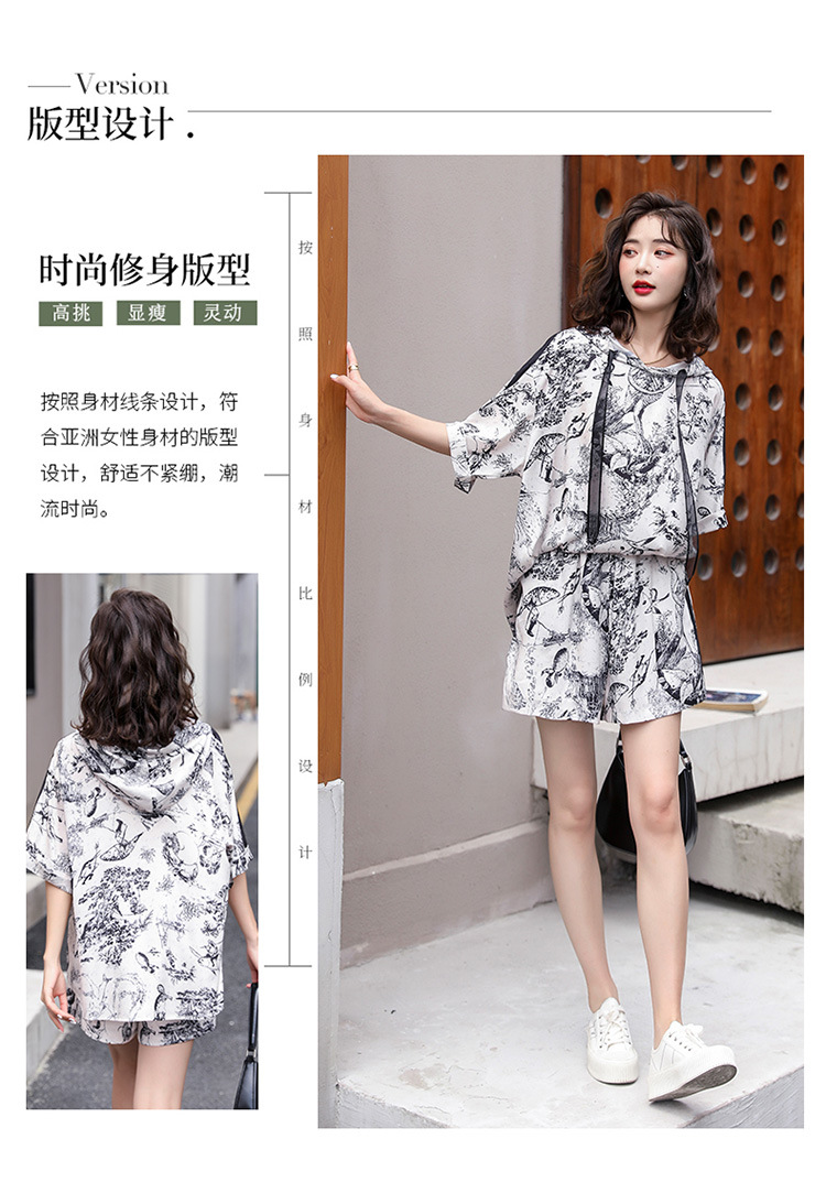 休闲时尚,水墨画短裤套装女夏新款洋气时髦减龄运动两件套HR-HMG575