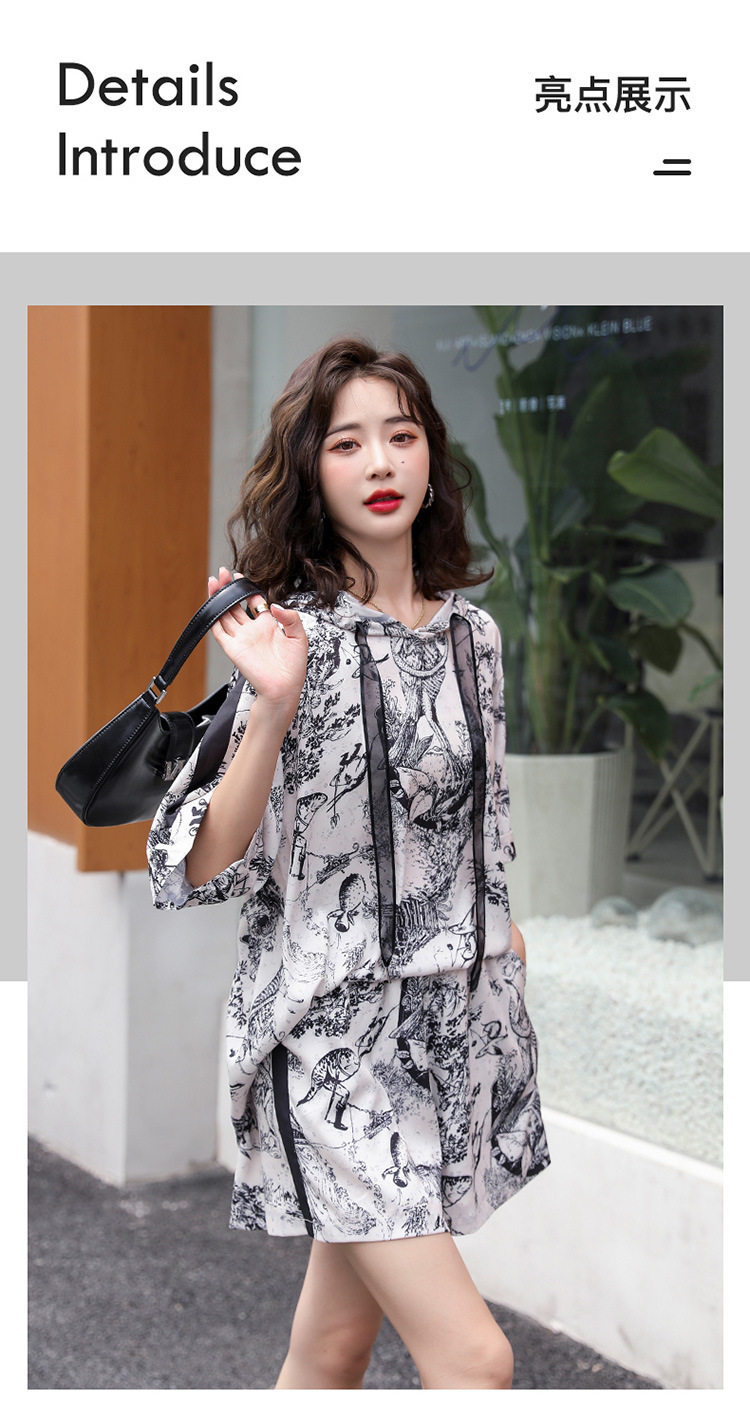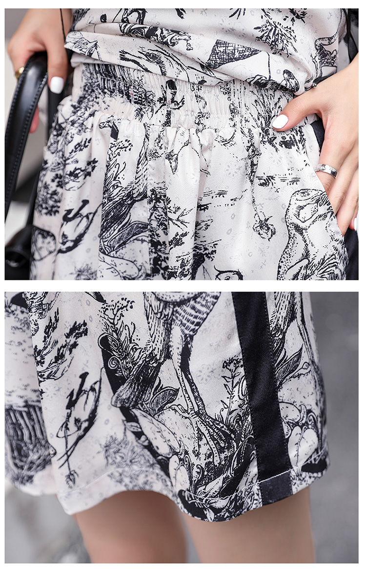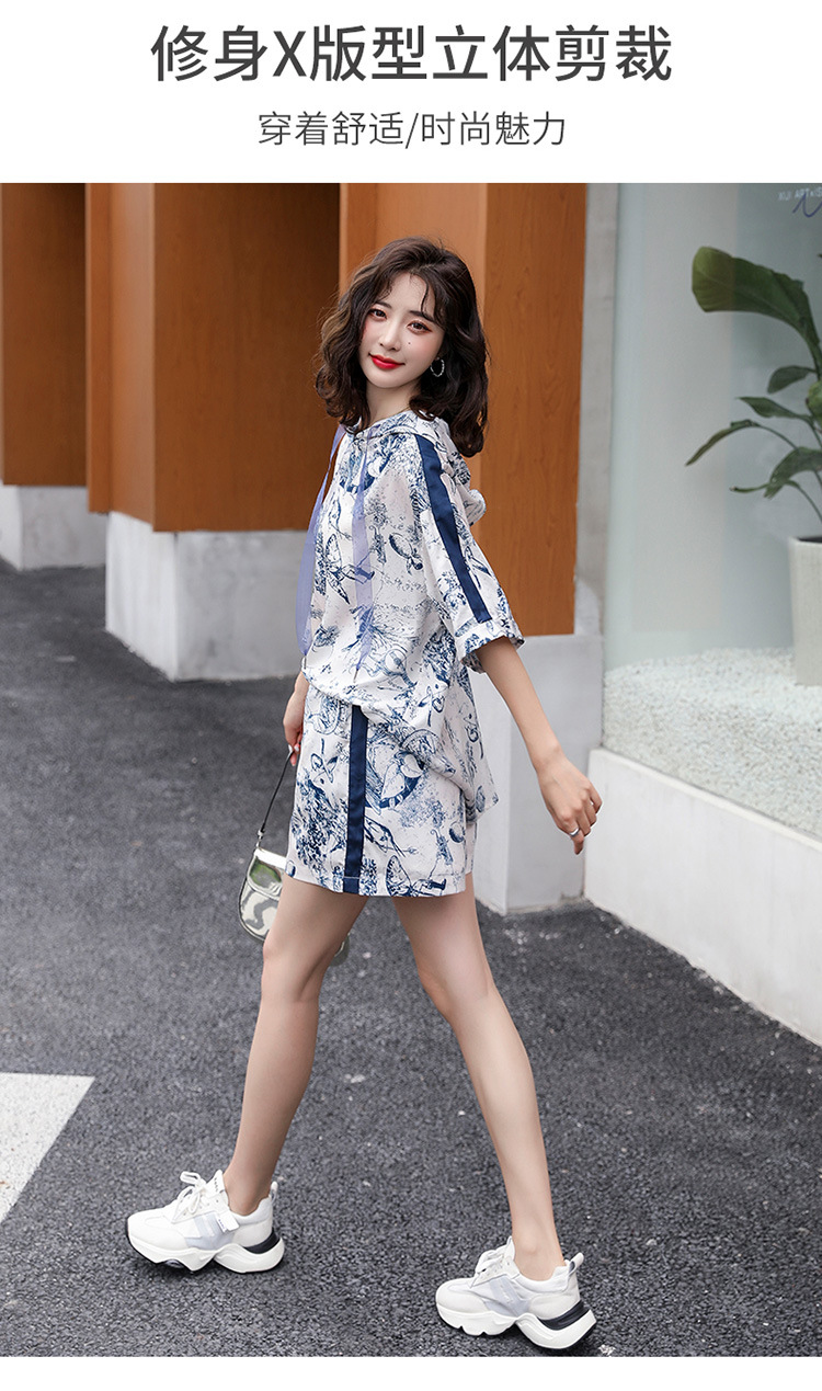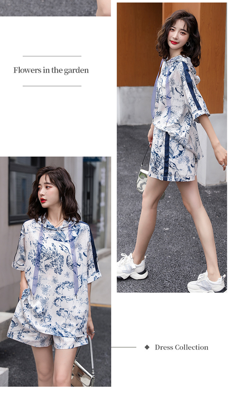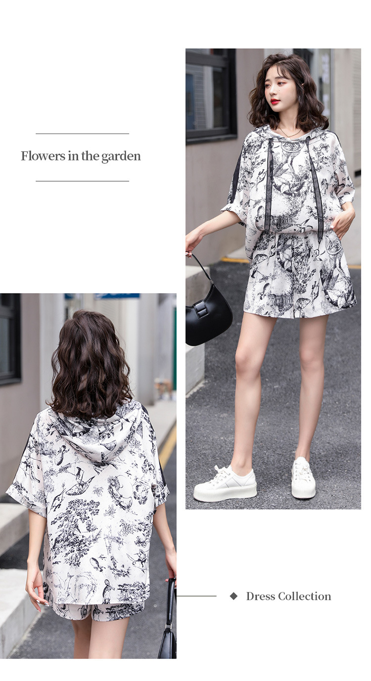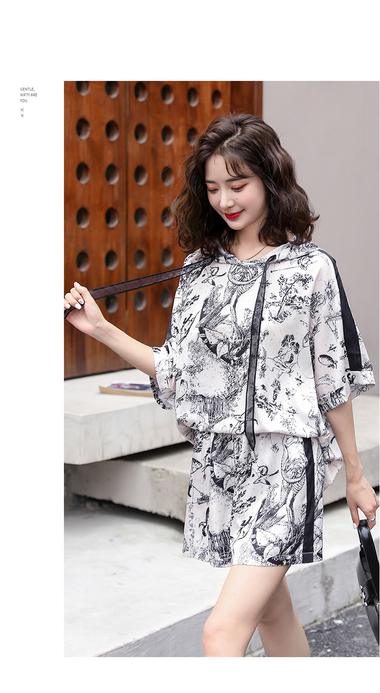 休闲时尚,水墨画短裤套装女夏新款洋气时髦减龄运动两件套HR-HMG575
