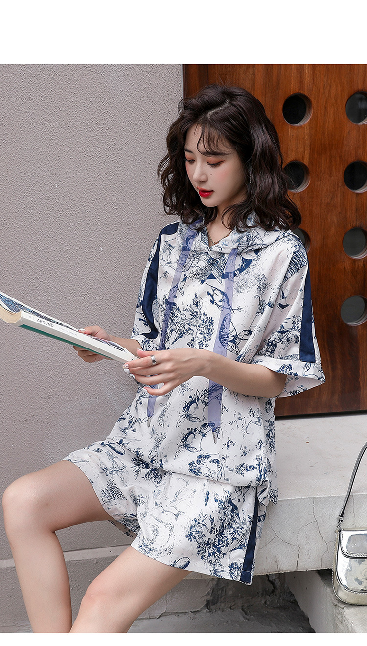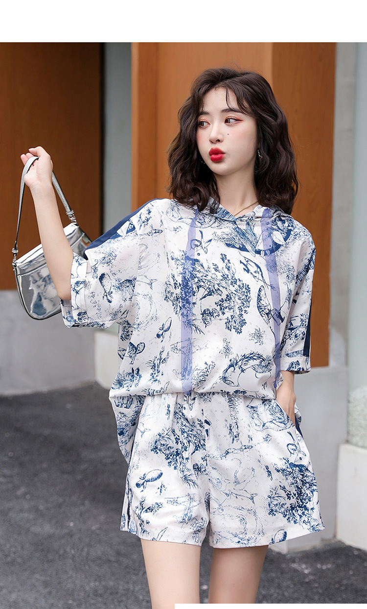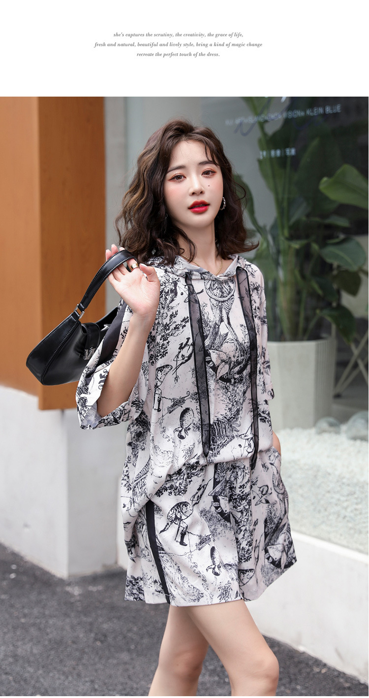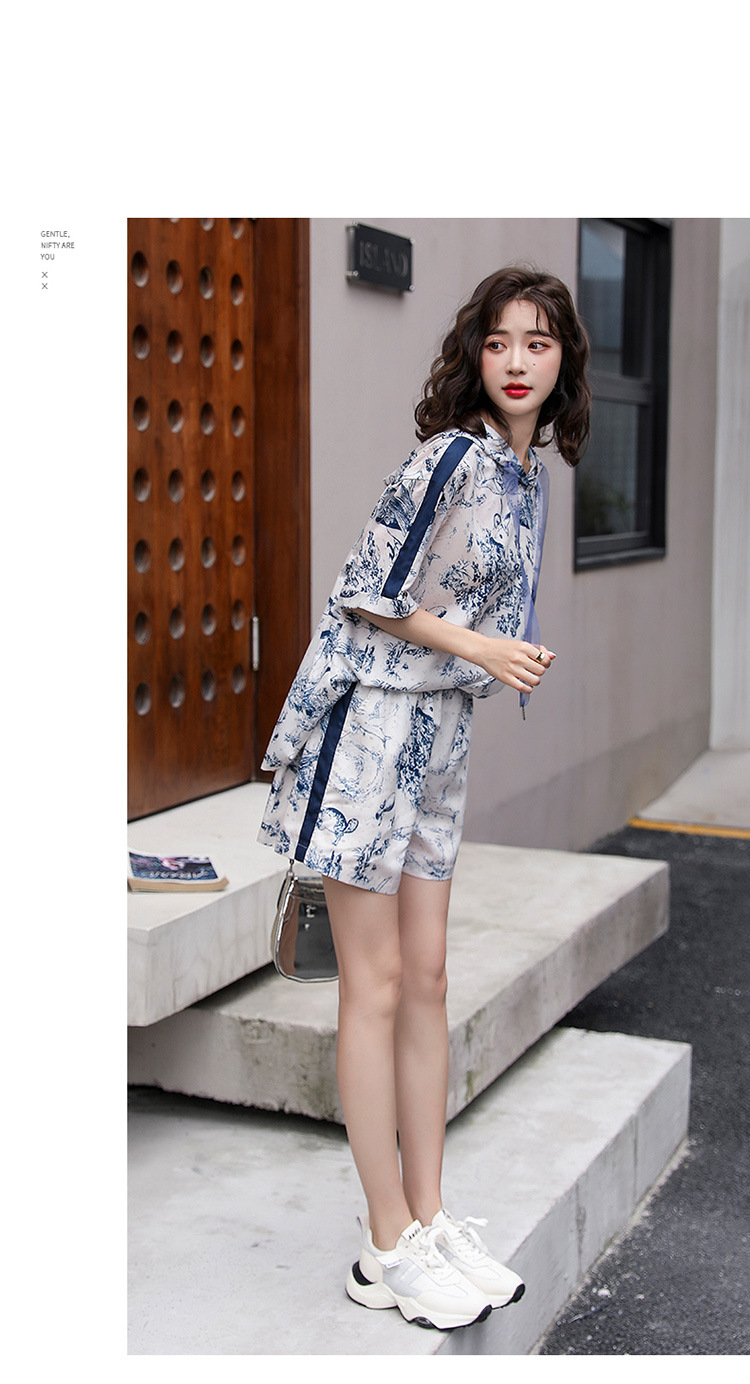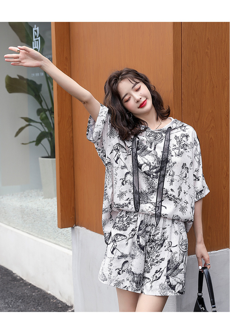 休闲时尚,水墨画短裤套装女夏新款洋气时髦减龄运动两件套HR-HMG575