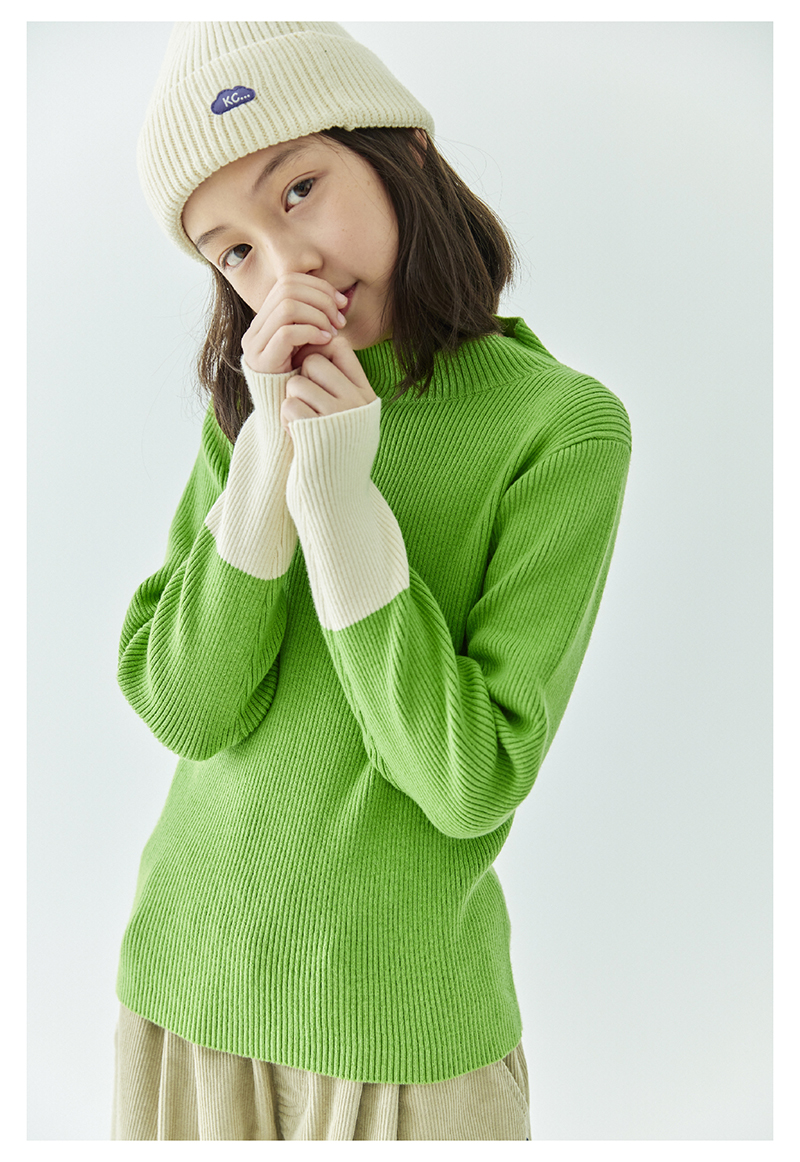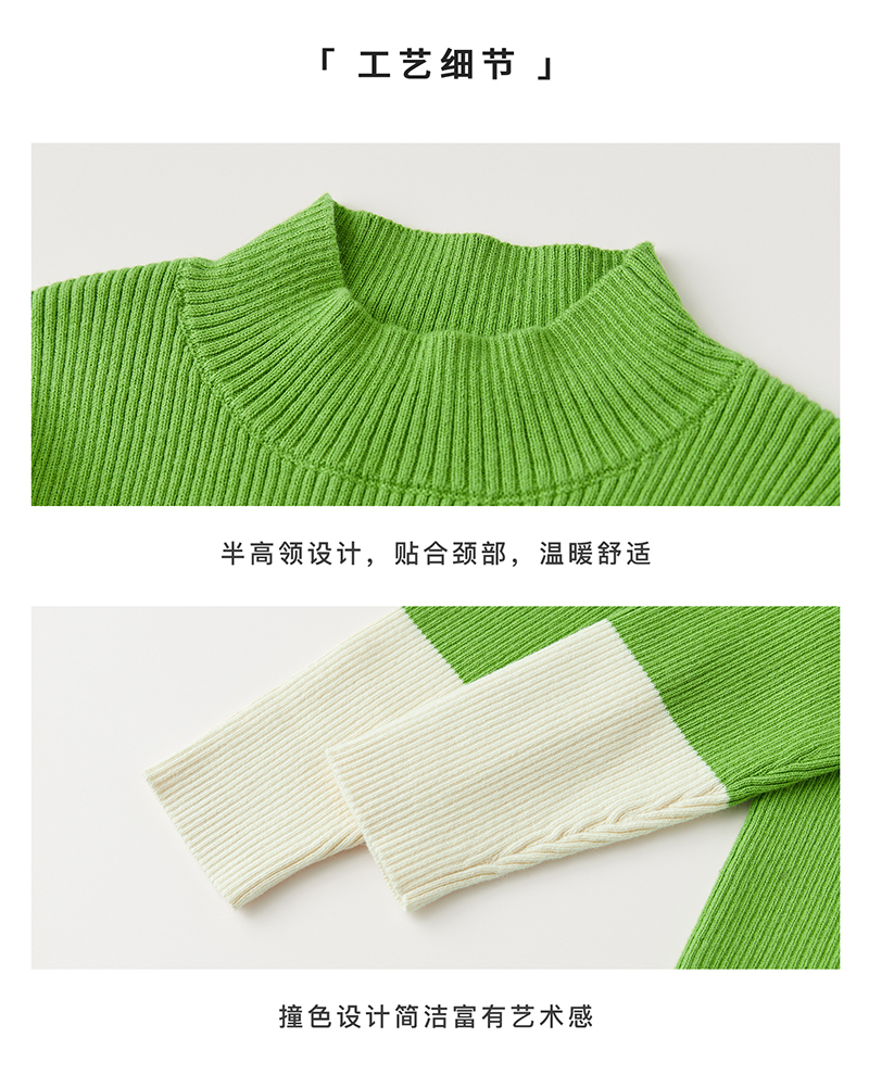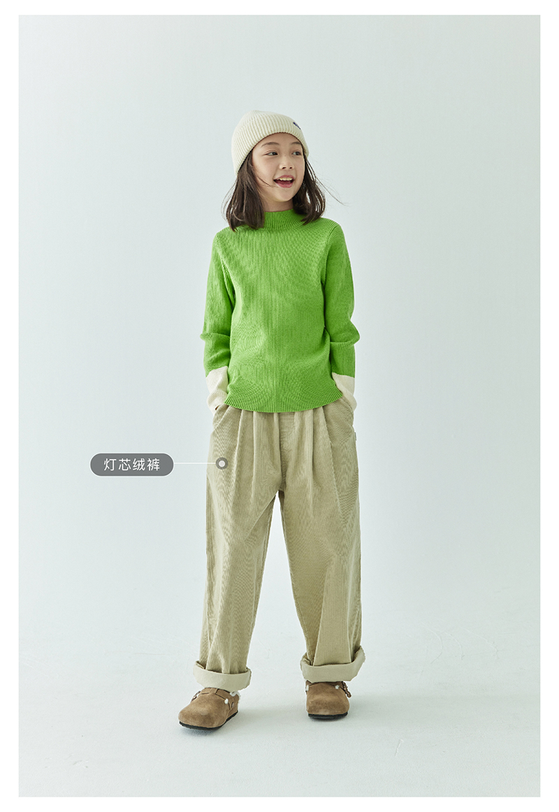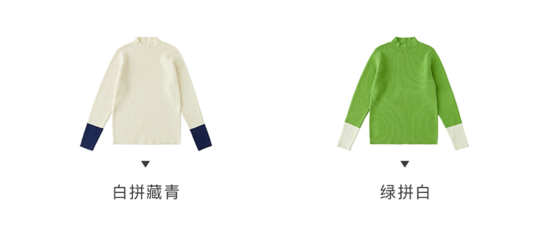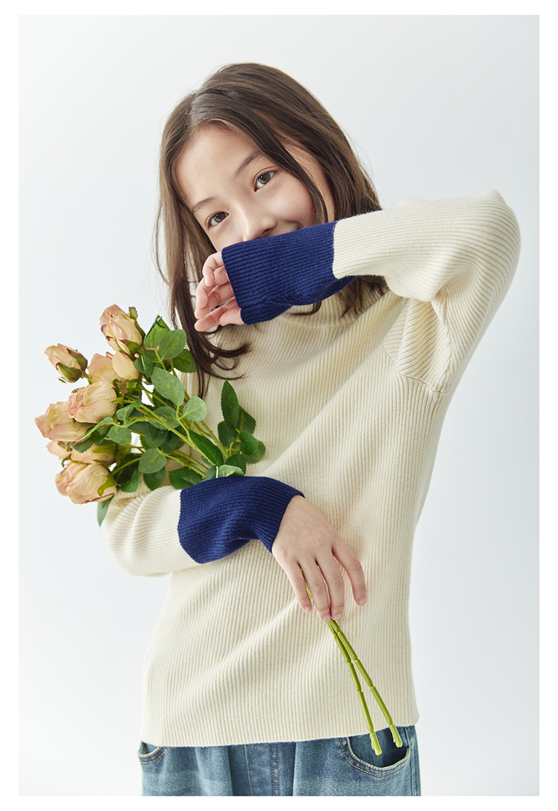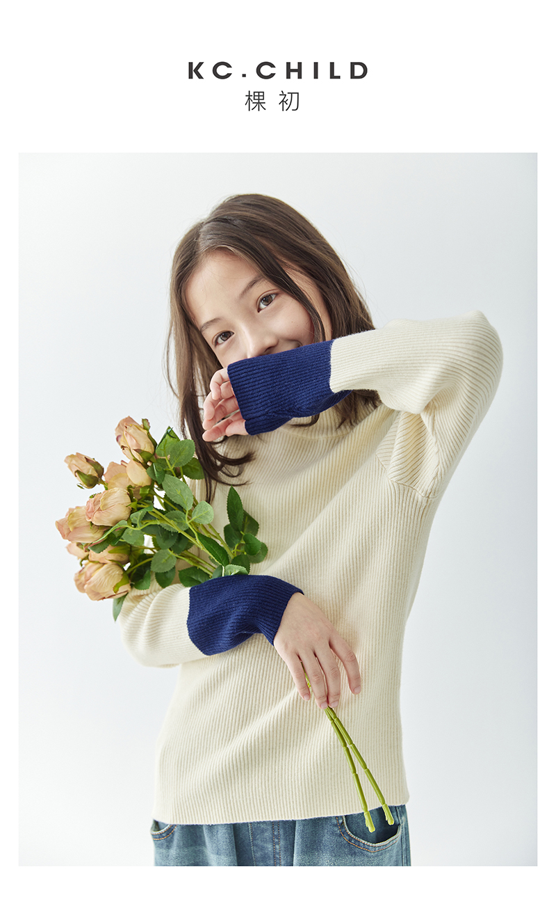 棵初秋冬新品女童袖口拼色长袖打底衫棉羊绒中高领修身毛衣