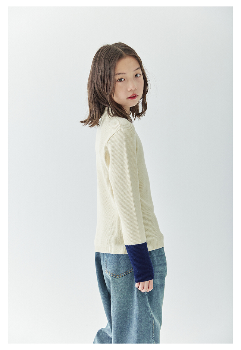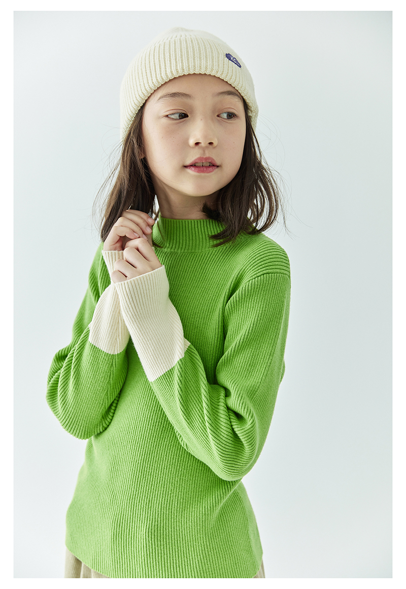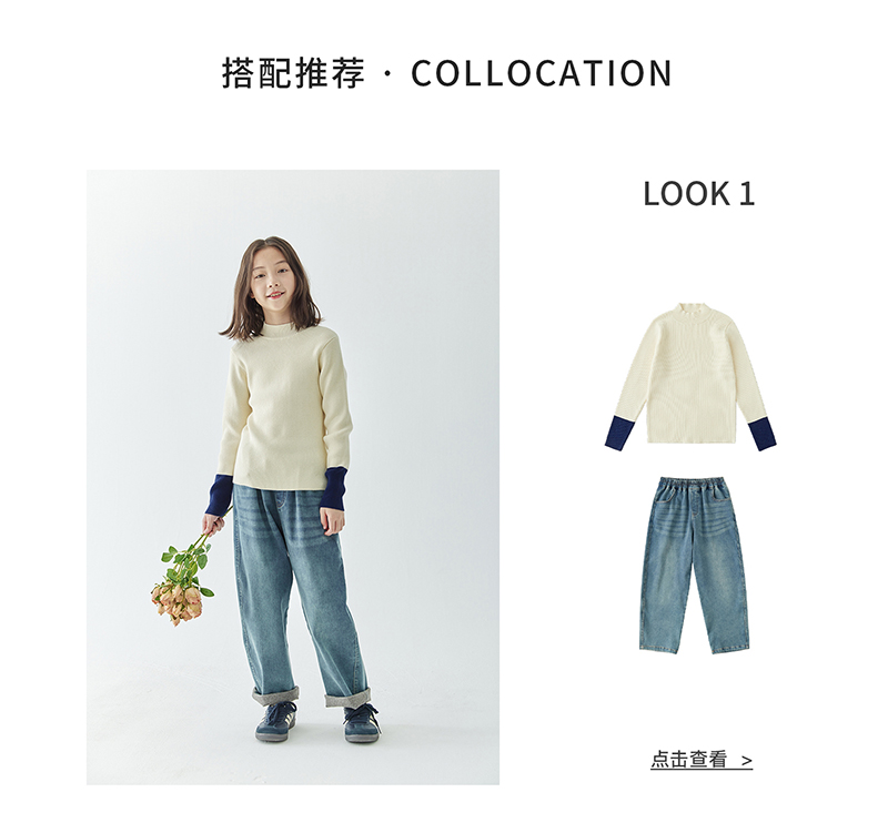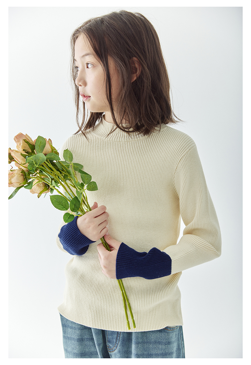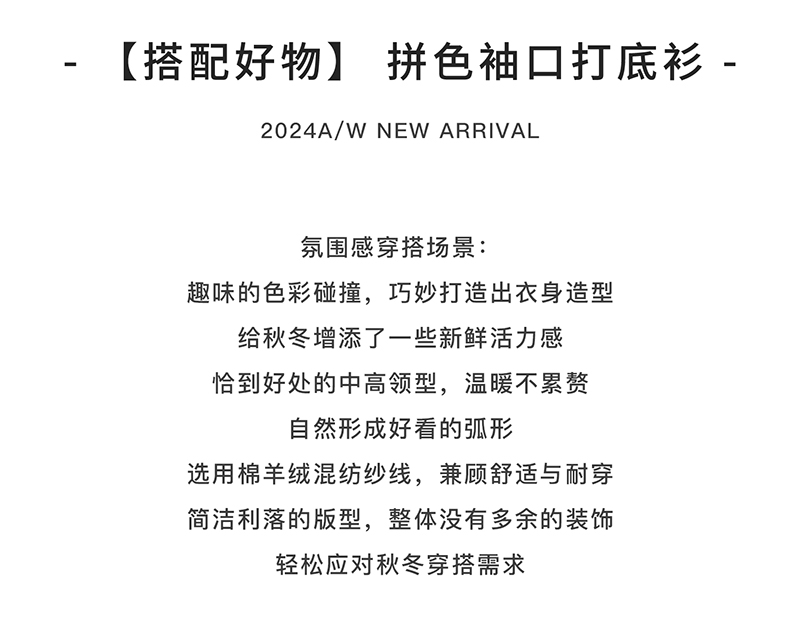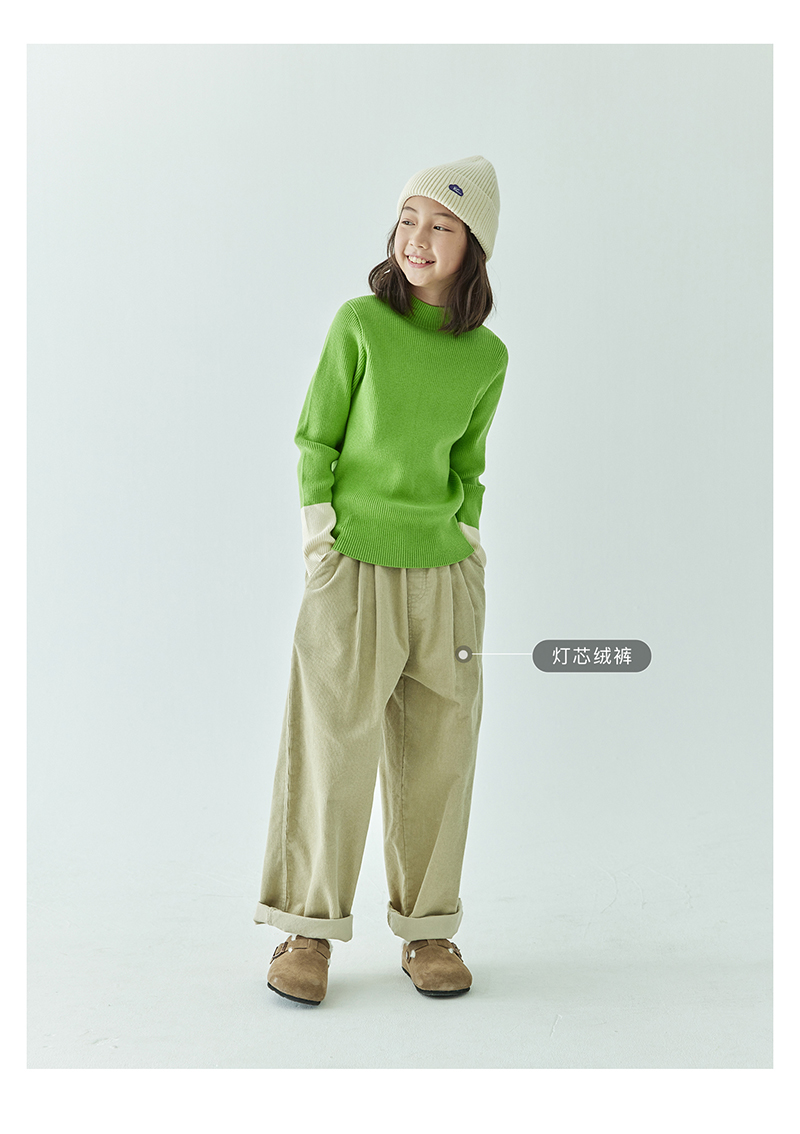 棵初秋冬新品女童袖口拼色长袖打底衫棉羊绒中高领修身毛衣