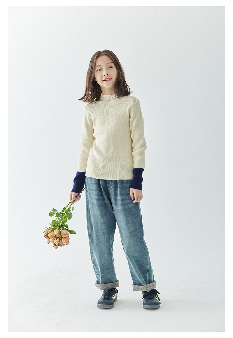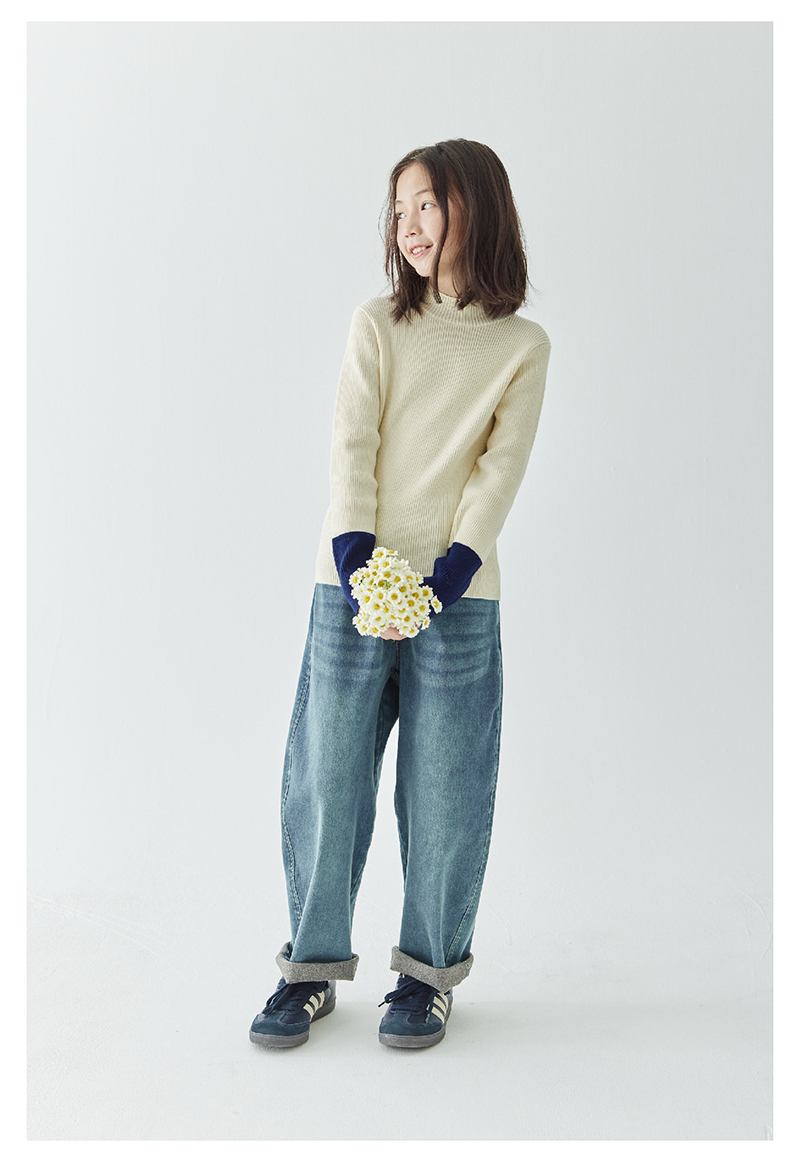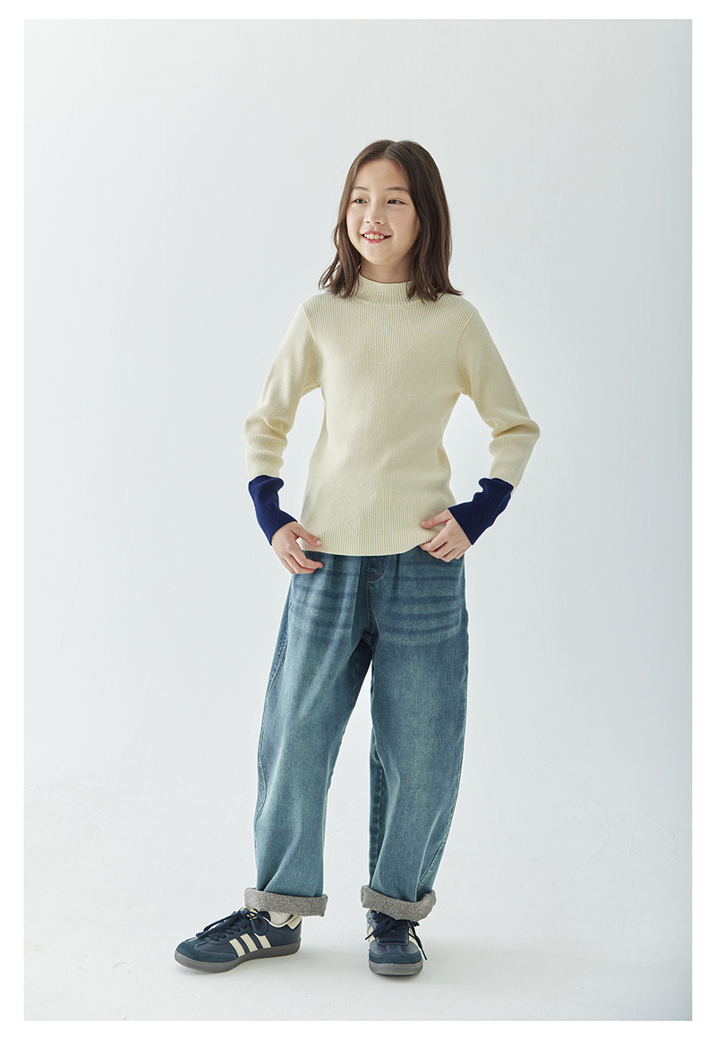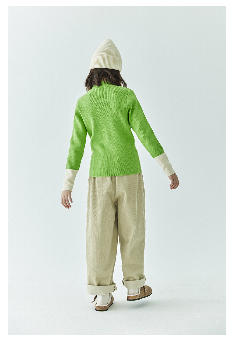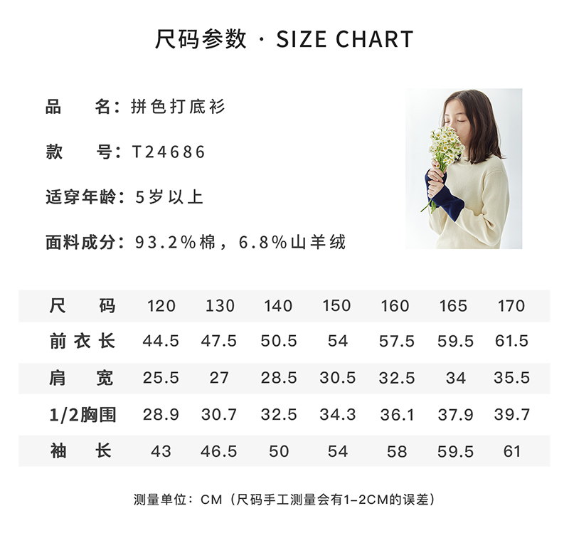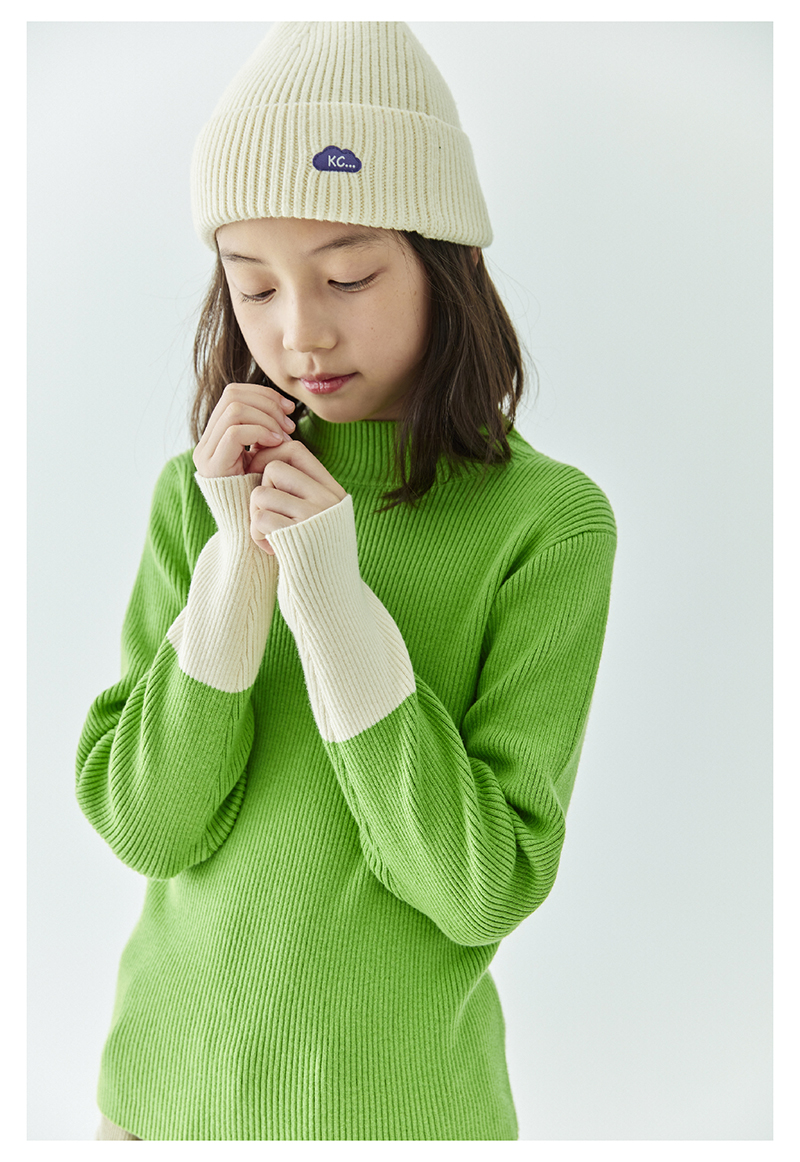 棵初秋冬新品女童袖口拼色长袖打底衫棉羊绒中高领修身毛衣