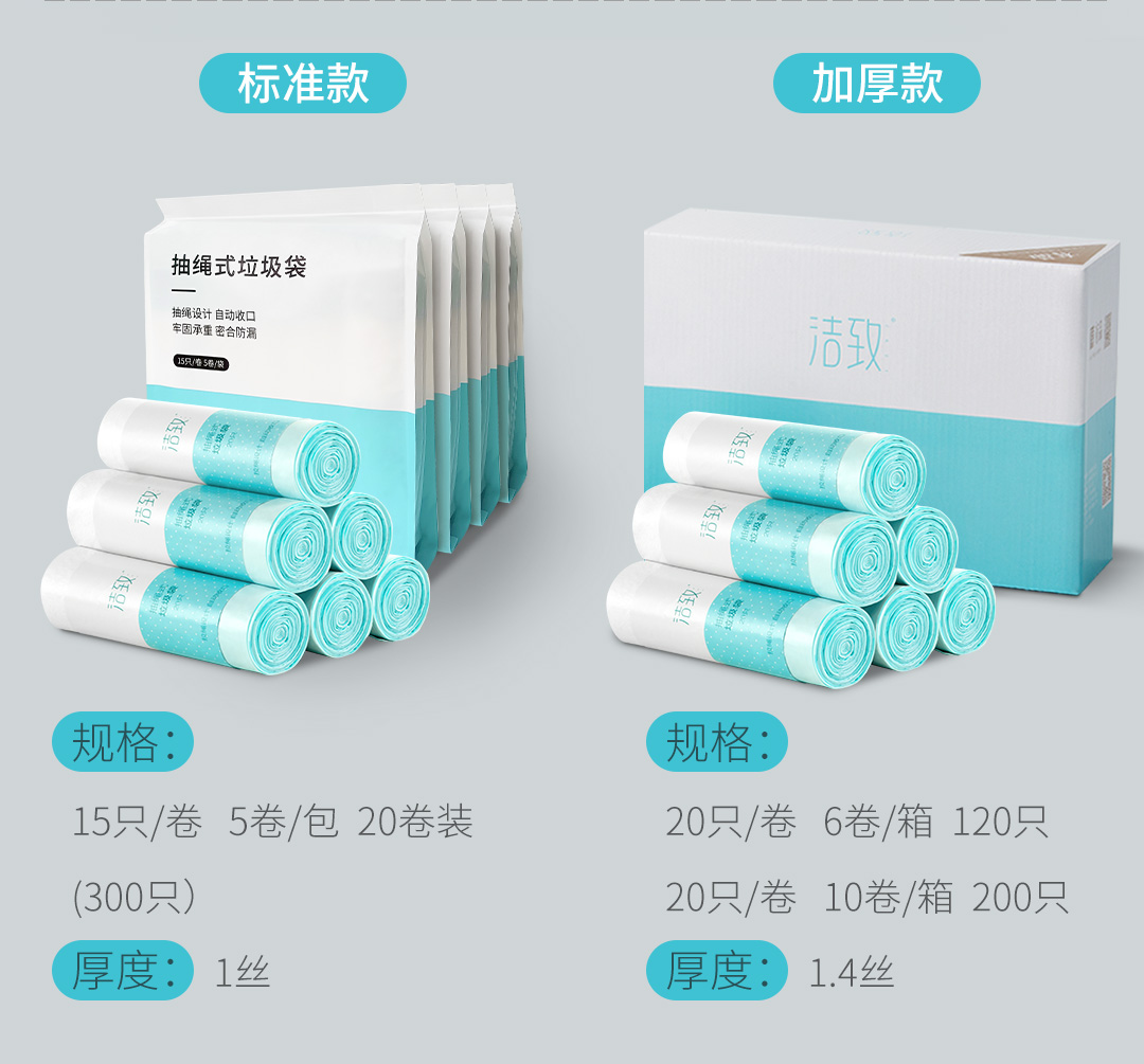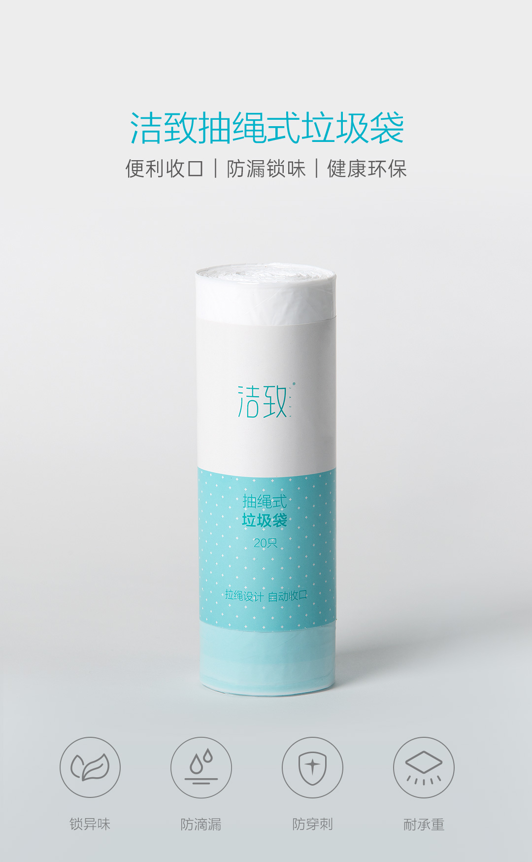【秒杀专享】洁致抽绳式垃圾袋5卷装