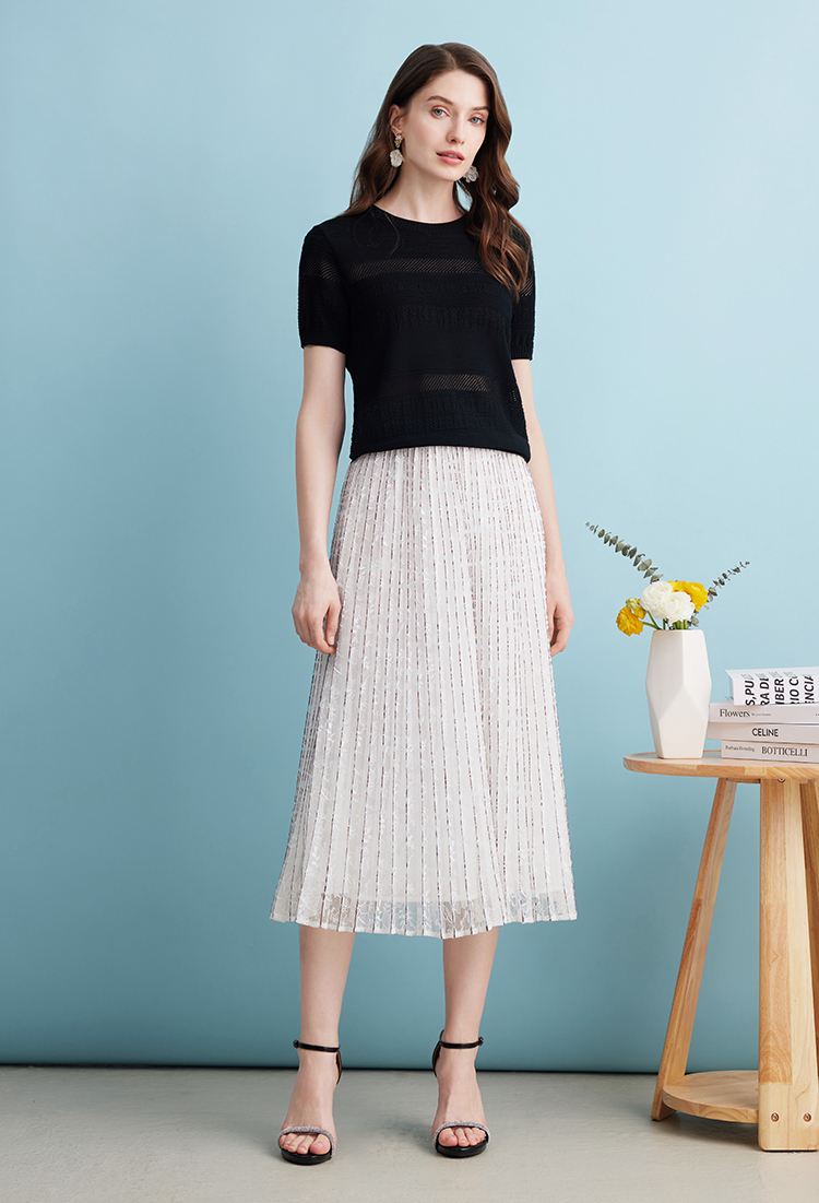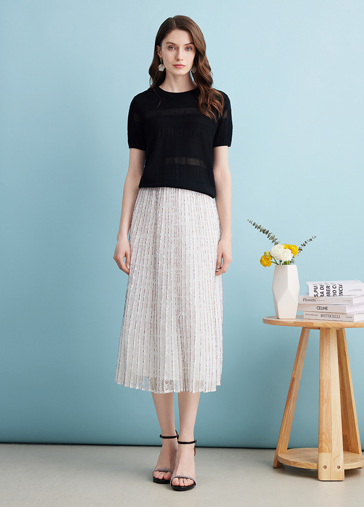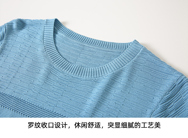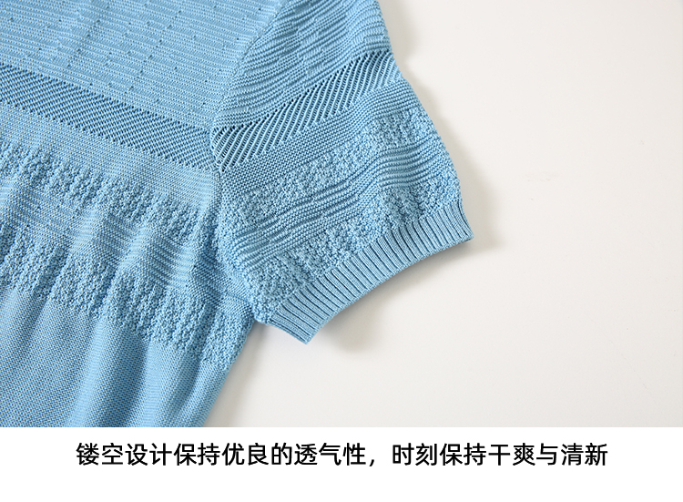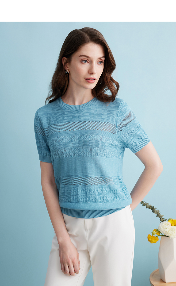EITIE爱特爱夏季新款舒适弹力修身短袖薄款镂空针织衫上衣B2401320