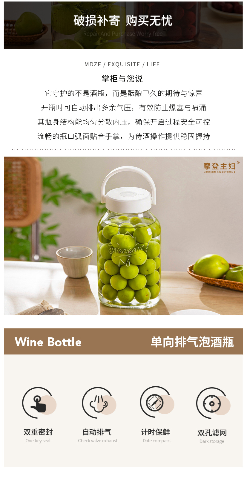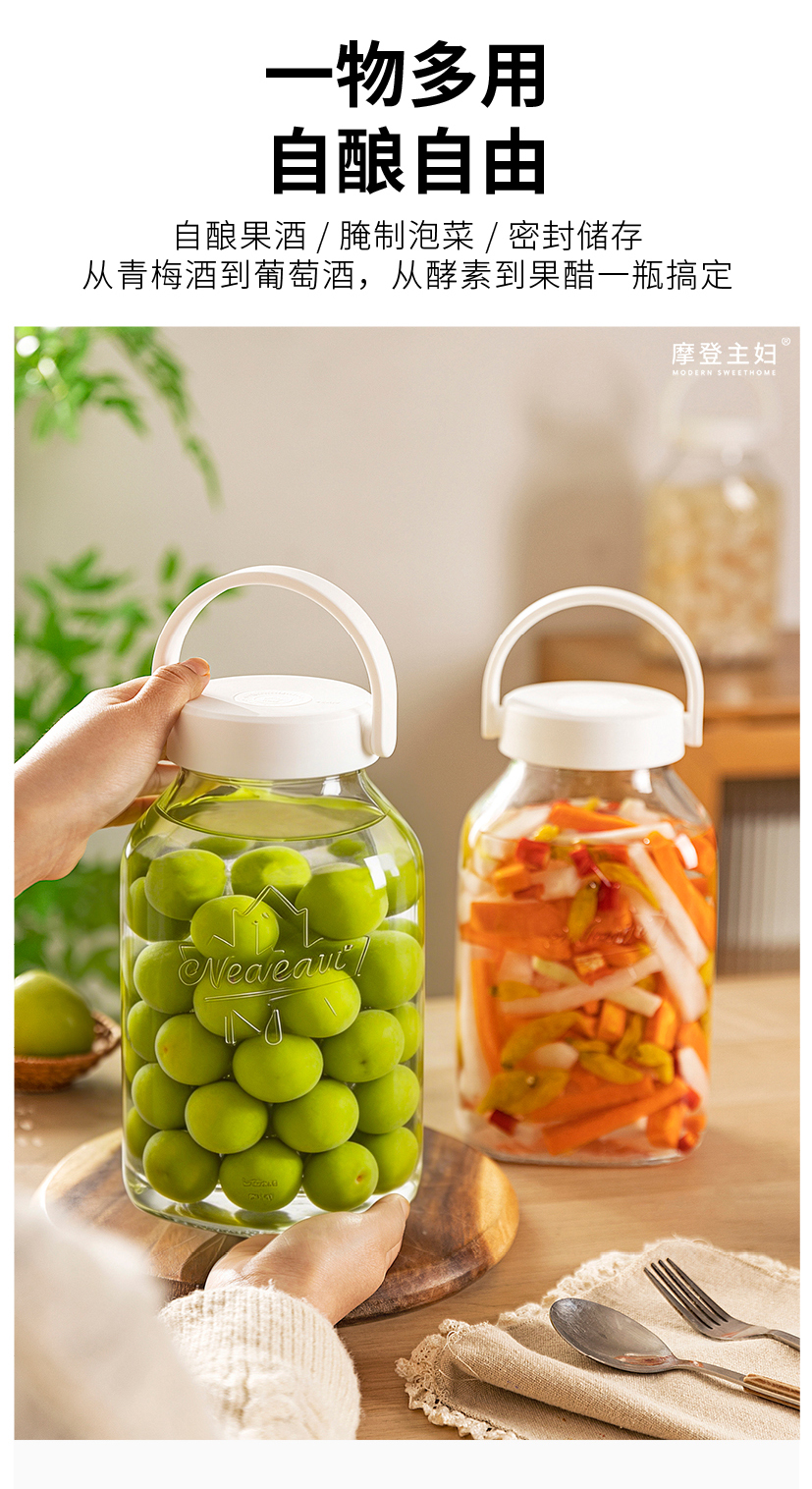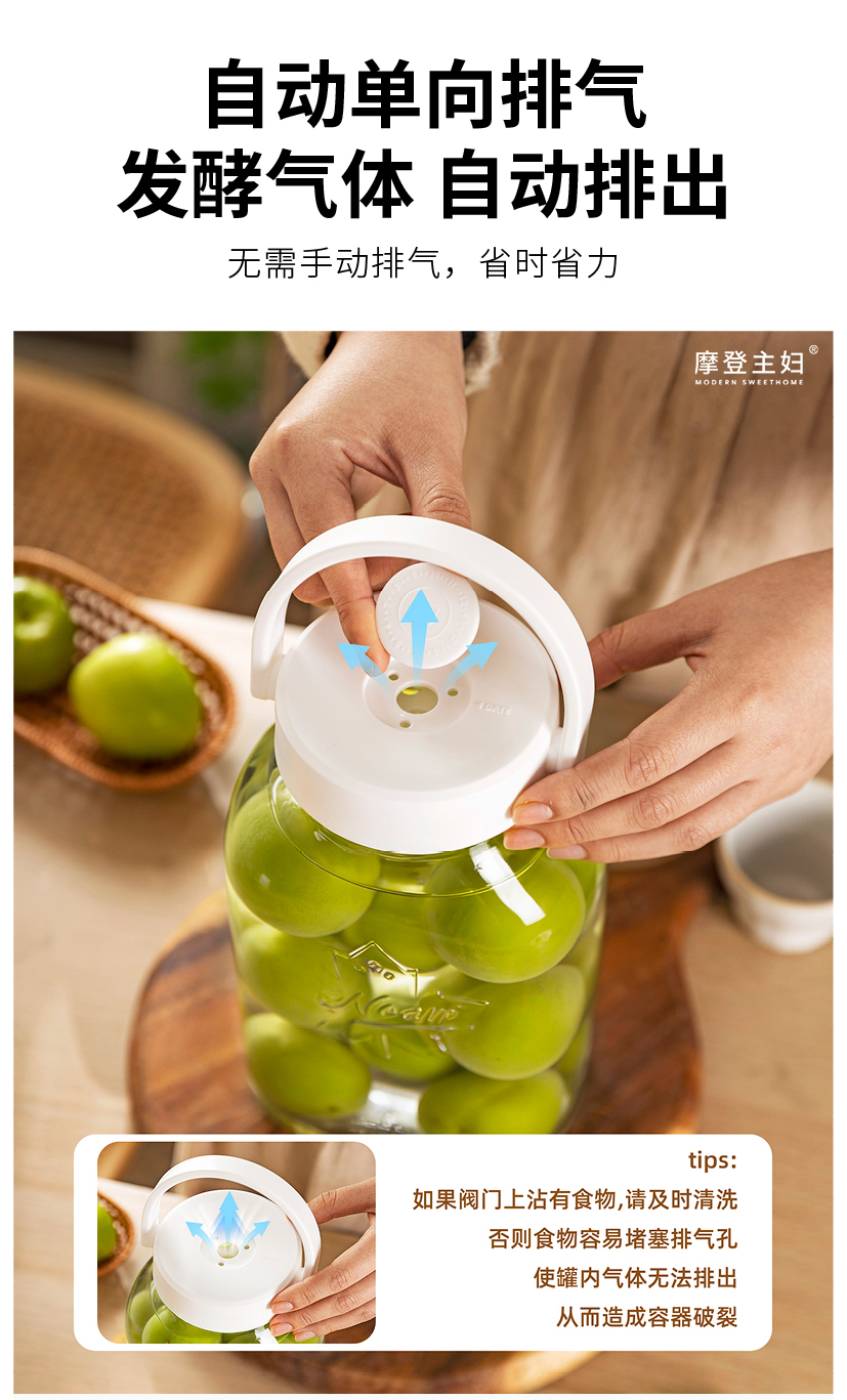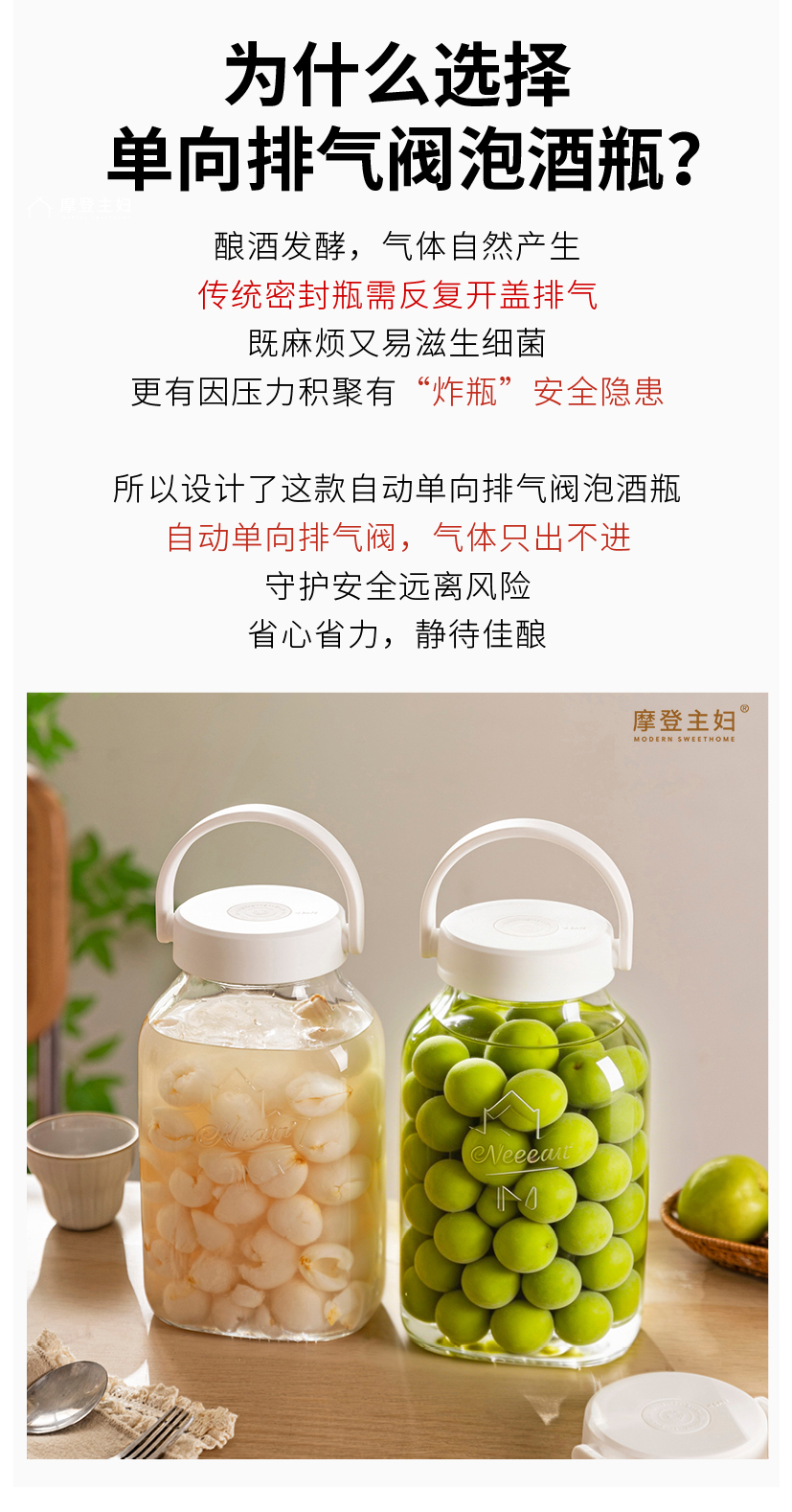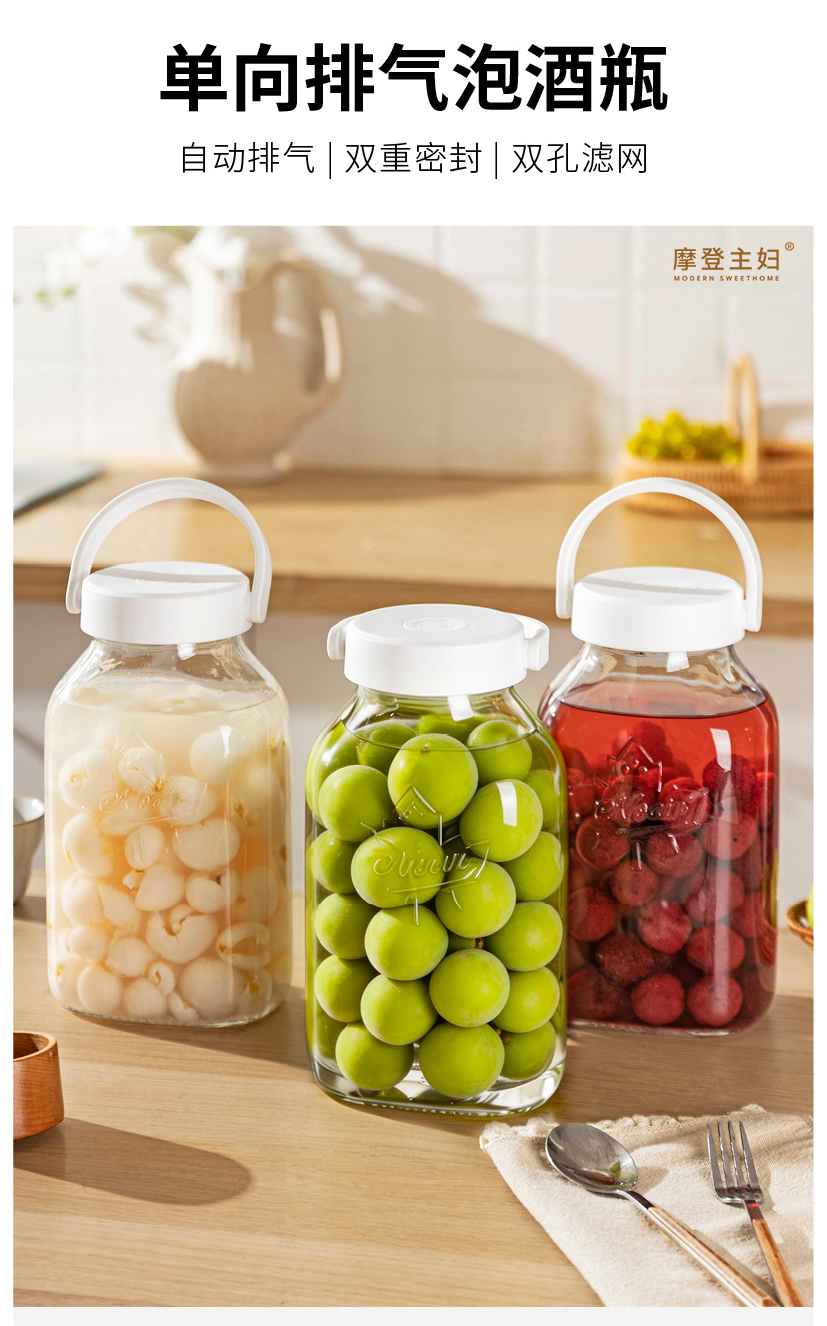 摩登主妇泡酒瓶单向排气青梅杨梅酒专用储存罐子食品级玻璃密封罐