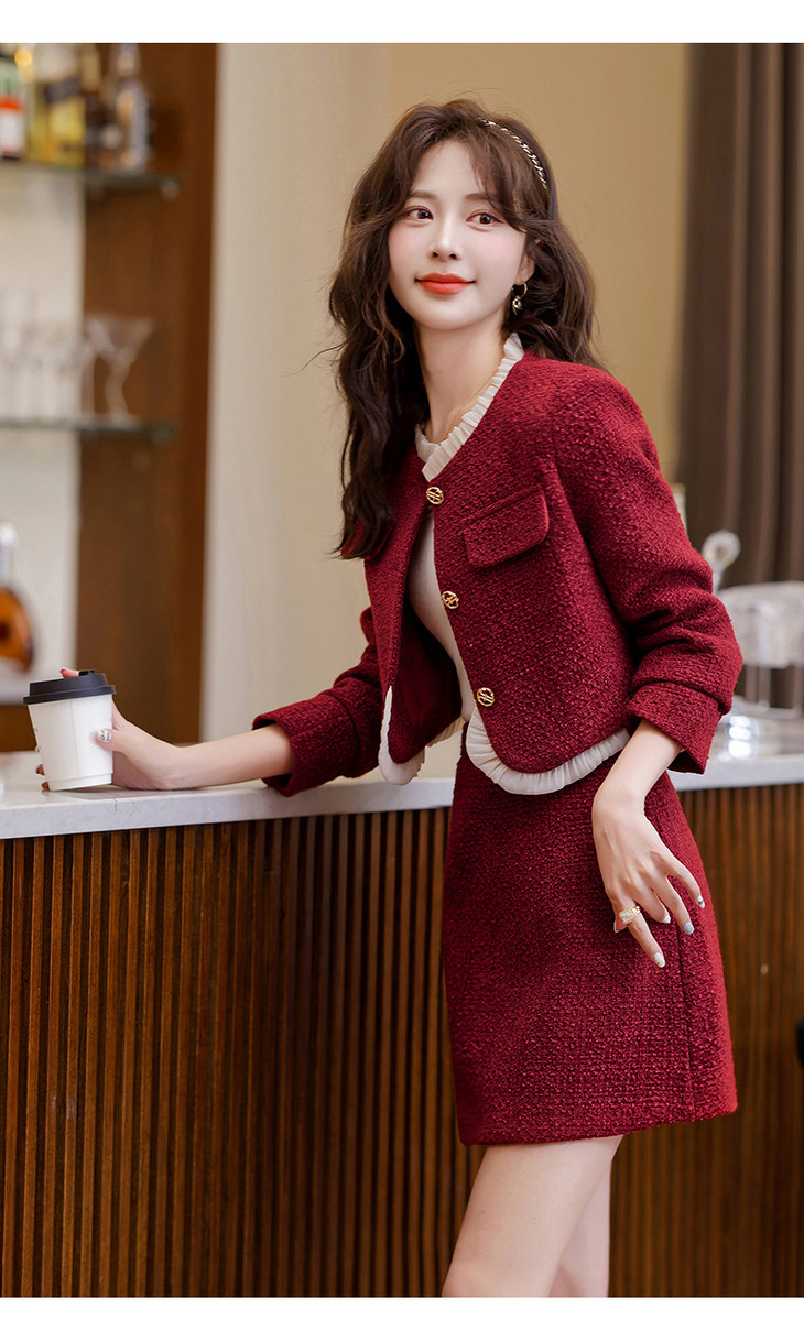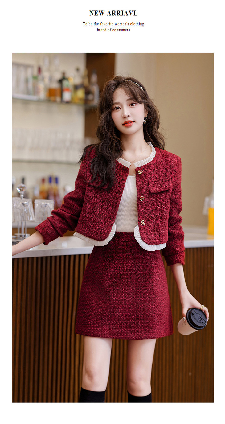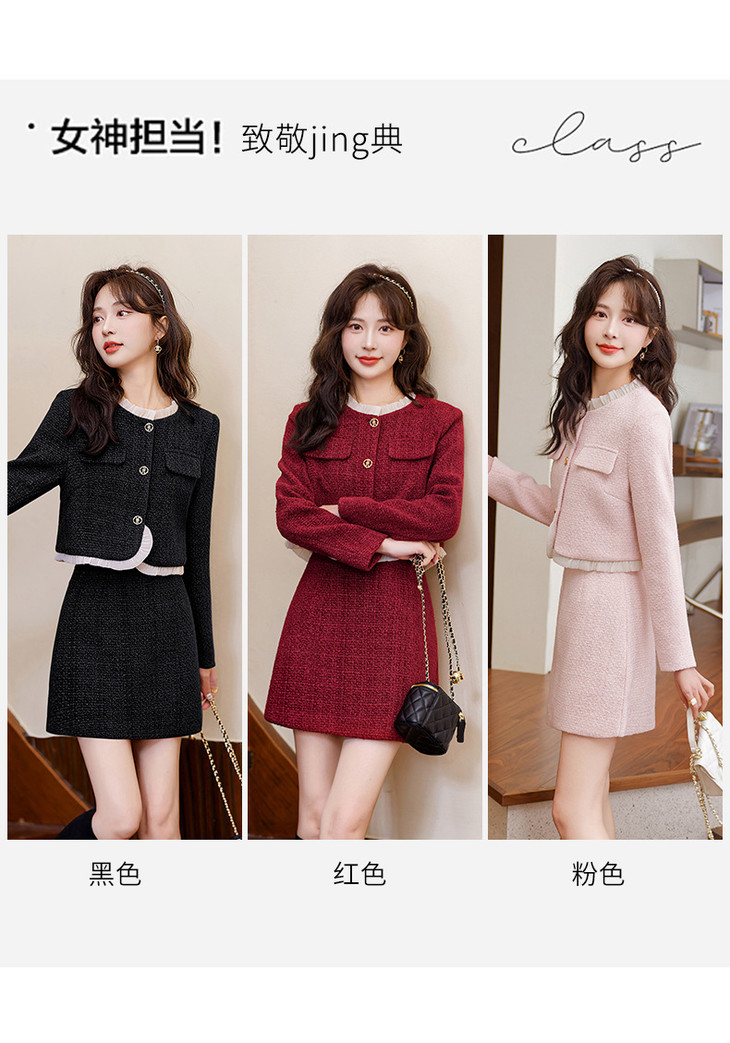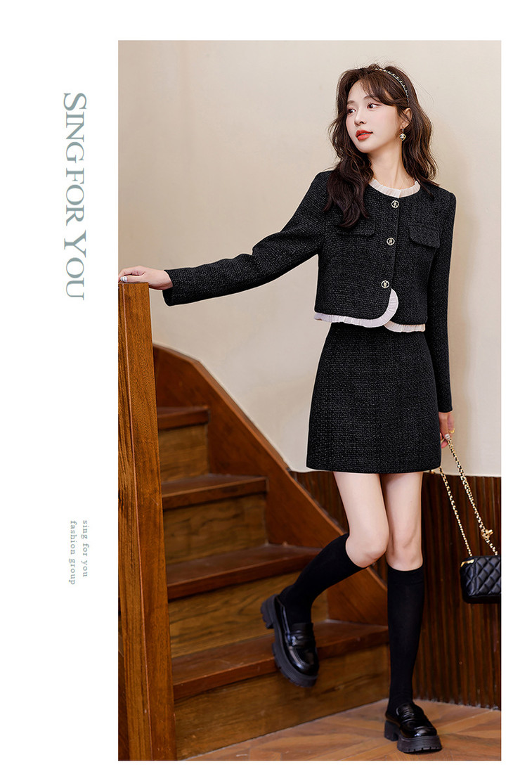 时尚套装秋季新品韩版小香风短外套半裙两件套裙YJLY83818