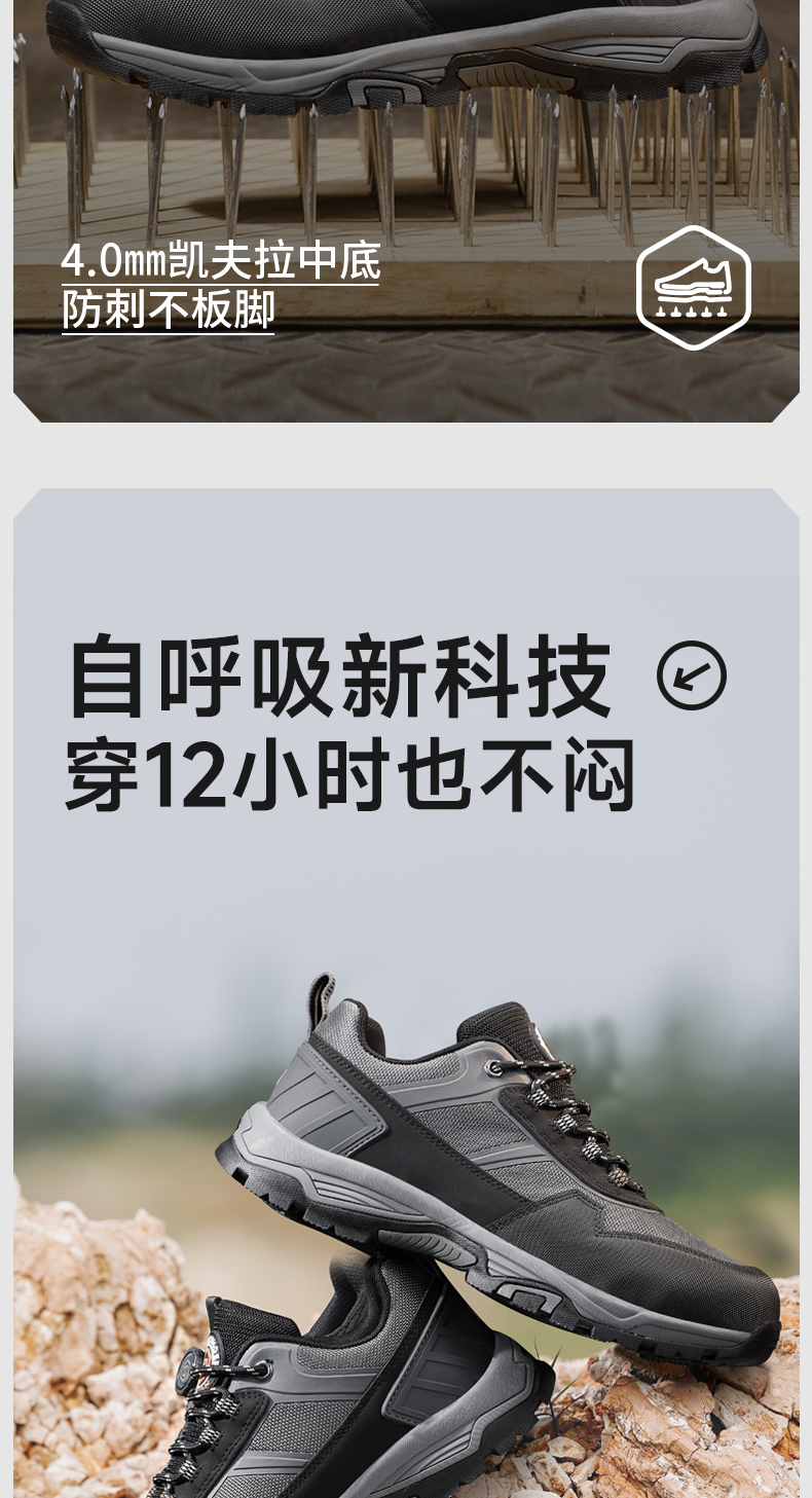 狼探新品透气劳保鞋男防砸防刺网布工地安全鞋实心底耐磨抗造 商品图3