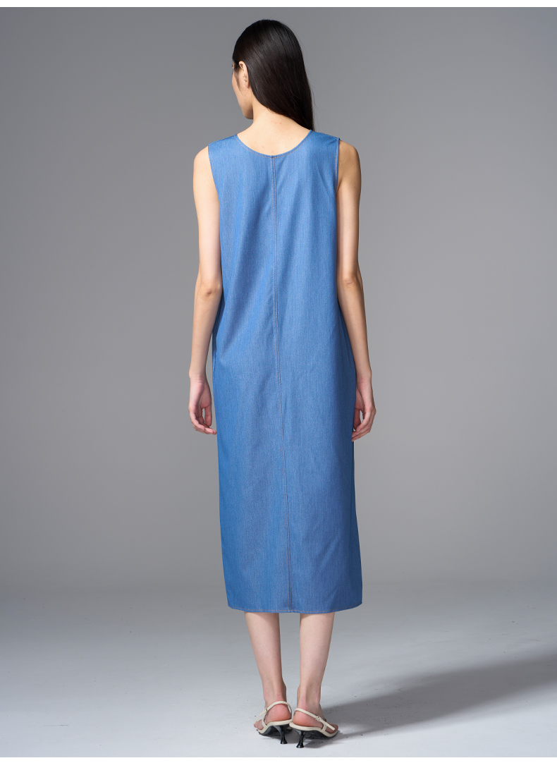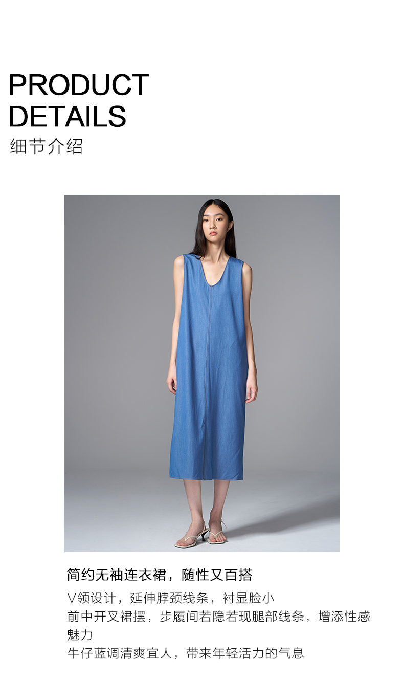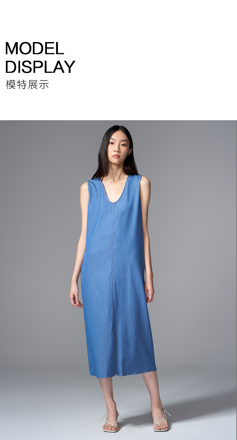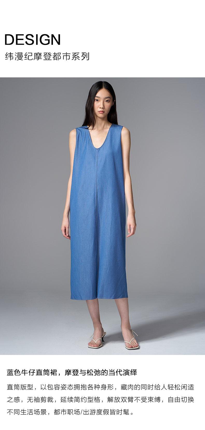 VIMAGE纬漫纪简约直筒宽松圆领休闲遮肉无袖连衣裙2025夏季新款V2307929