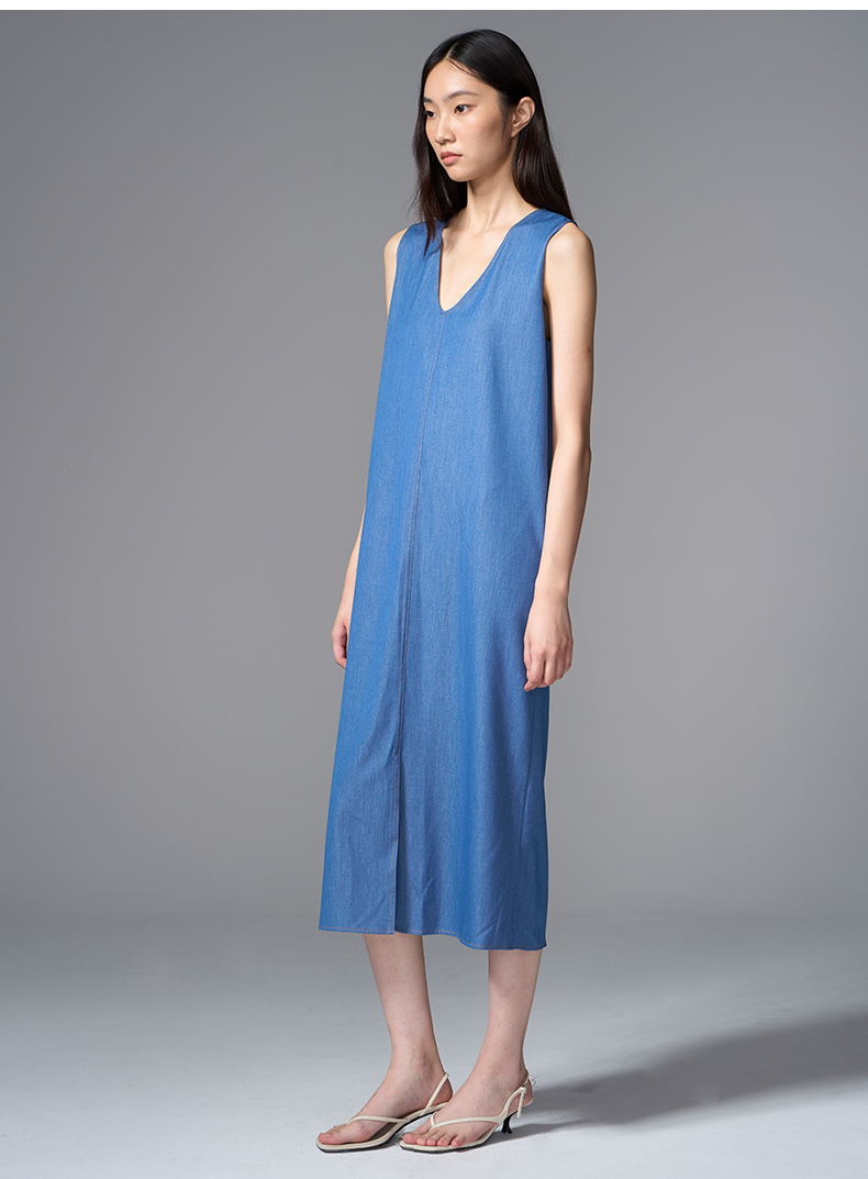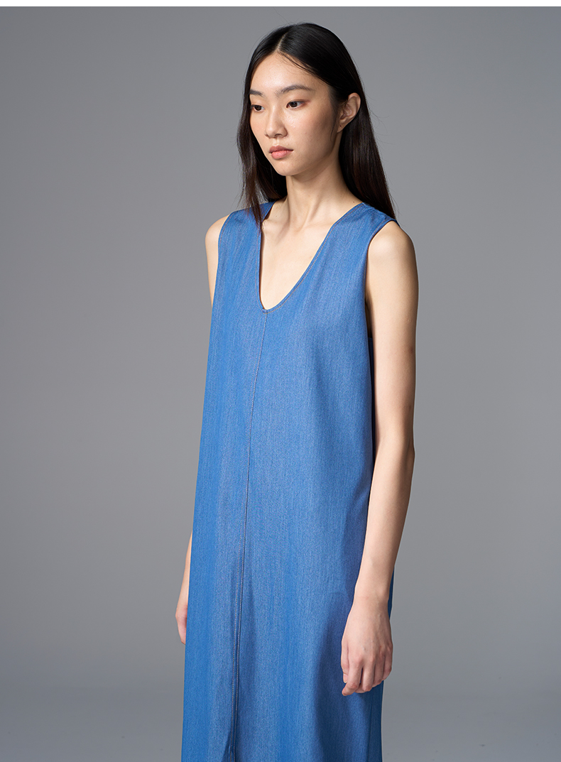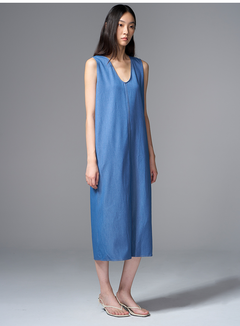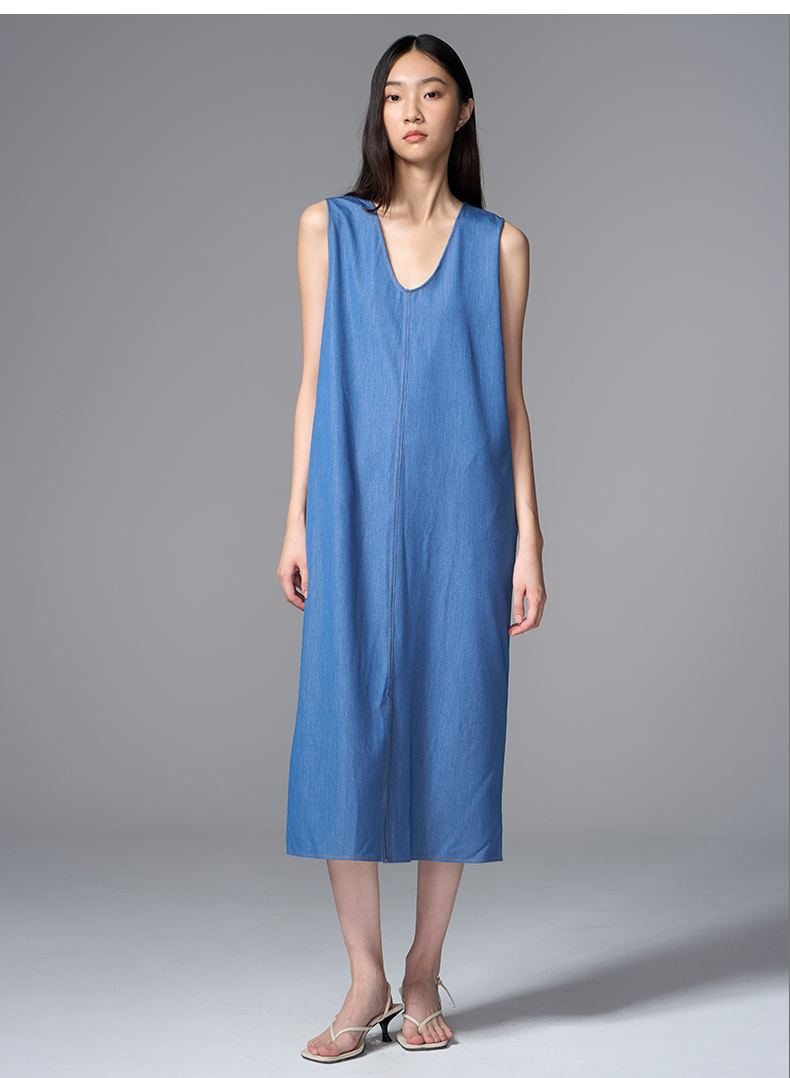VIMAGE纬漫纪简约直筒宽松圆领休闲遮肉无袖连衣裙2025夏季新款V2307929