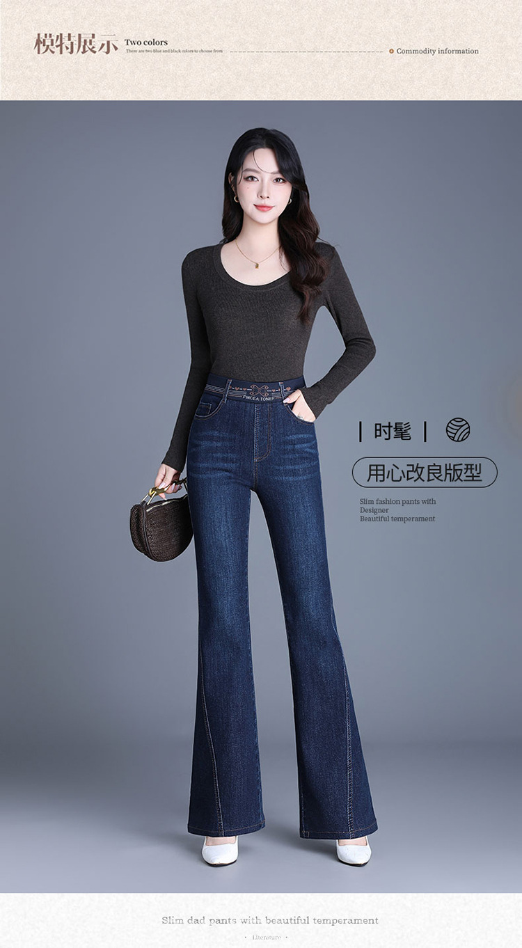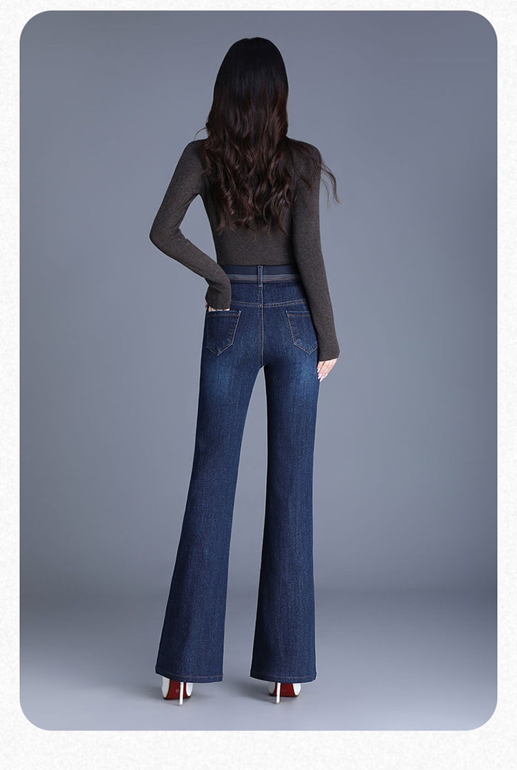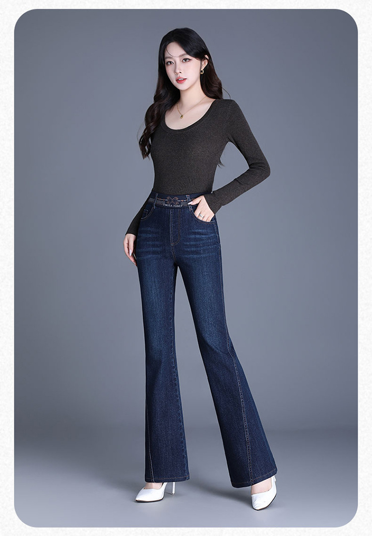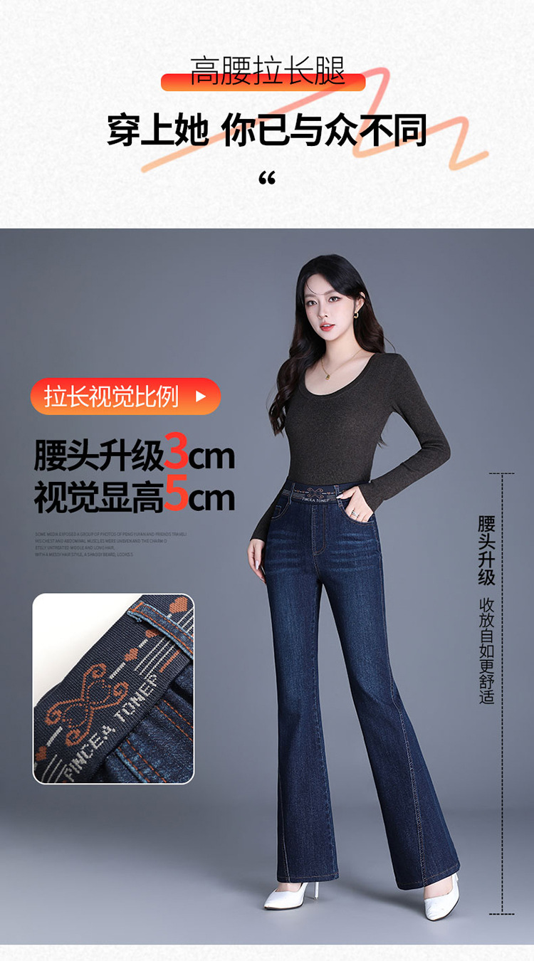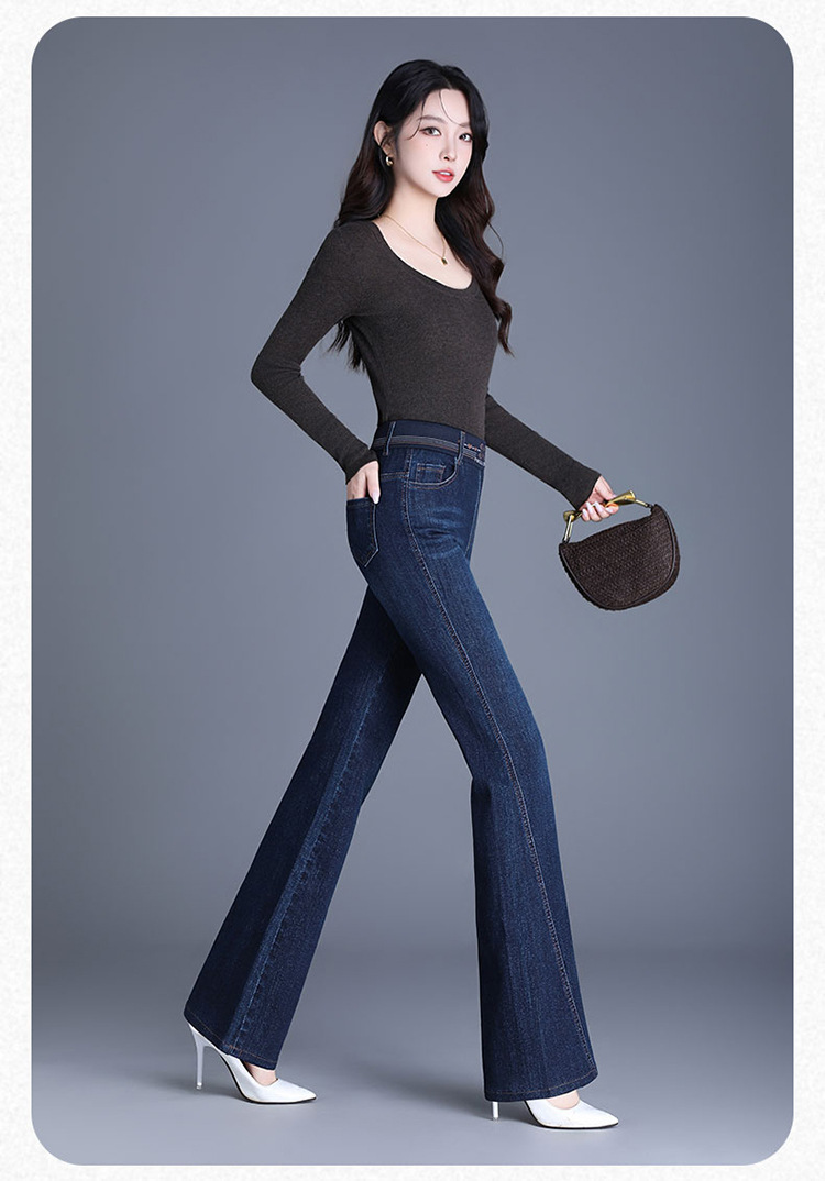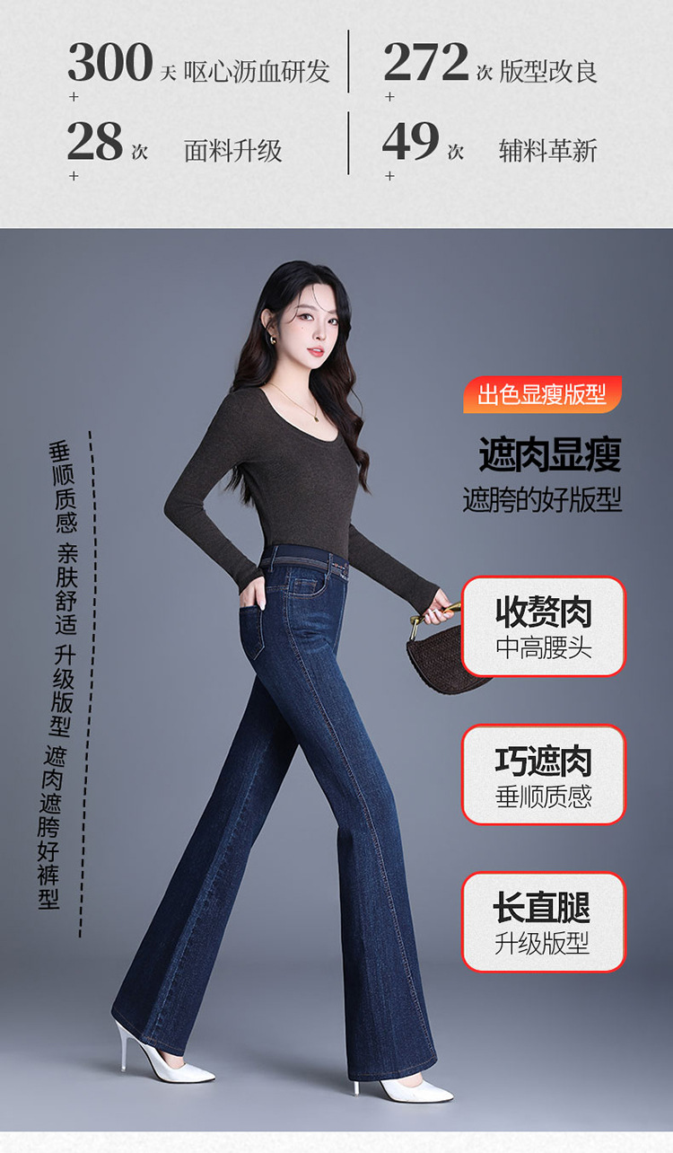 QYM 9857-Y牛仔裤时尚高腰喇叭裤宽松休闲裤