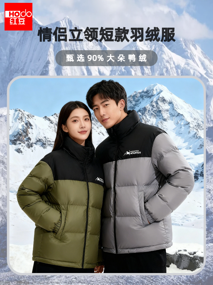 【告别”蒲公英羽绒服” 高充绒量 蓄热内里】Hodo 红豆 90%鸭绒立领短款羽绒服
