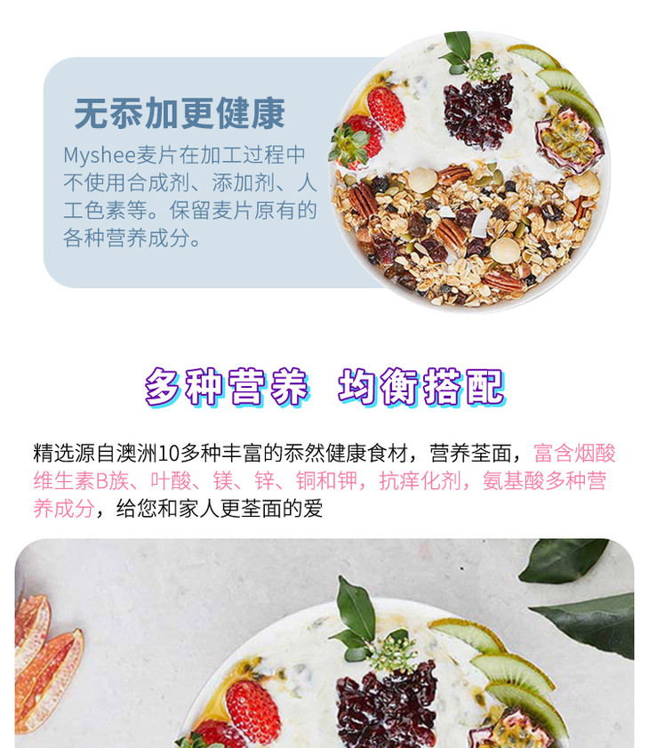 现货 澳洲Myshee水果坚果低糖贵族燕麦片健康低脂代餐即食早餐1.2KG