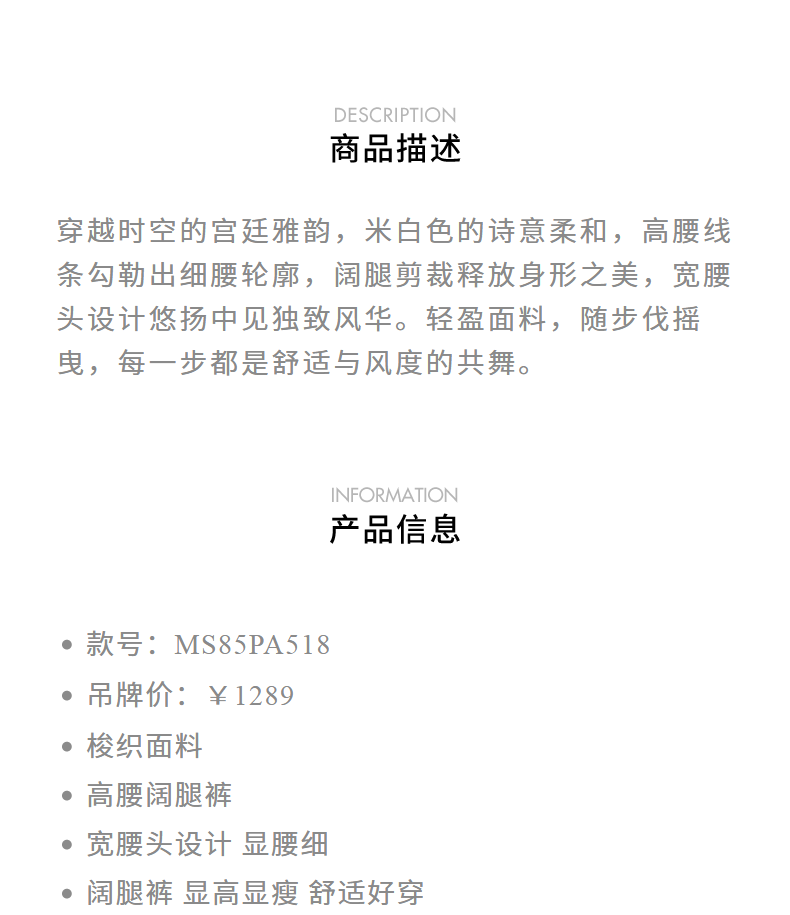 MAXRIENY垂感直筒裤显瘦气质白色高腰时尚外穿休闲裤(货号:MS85PA518)