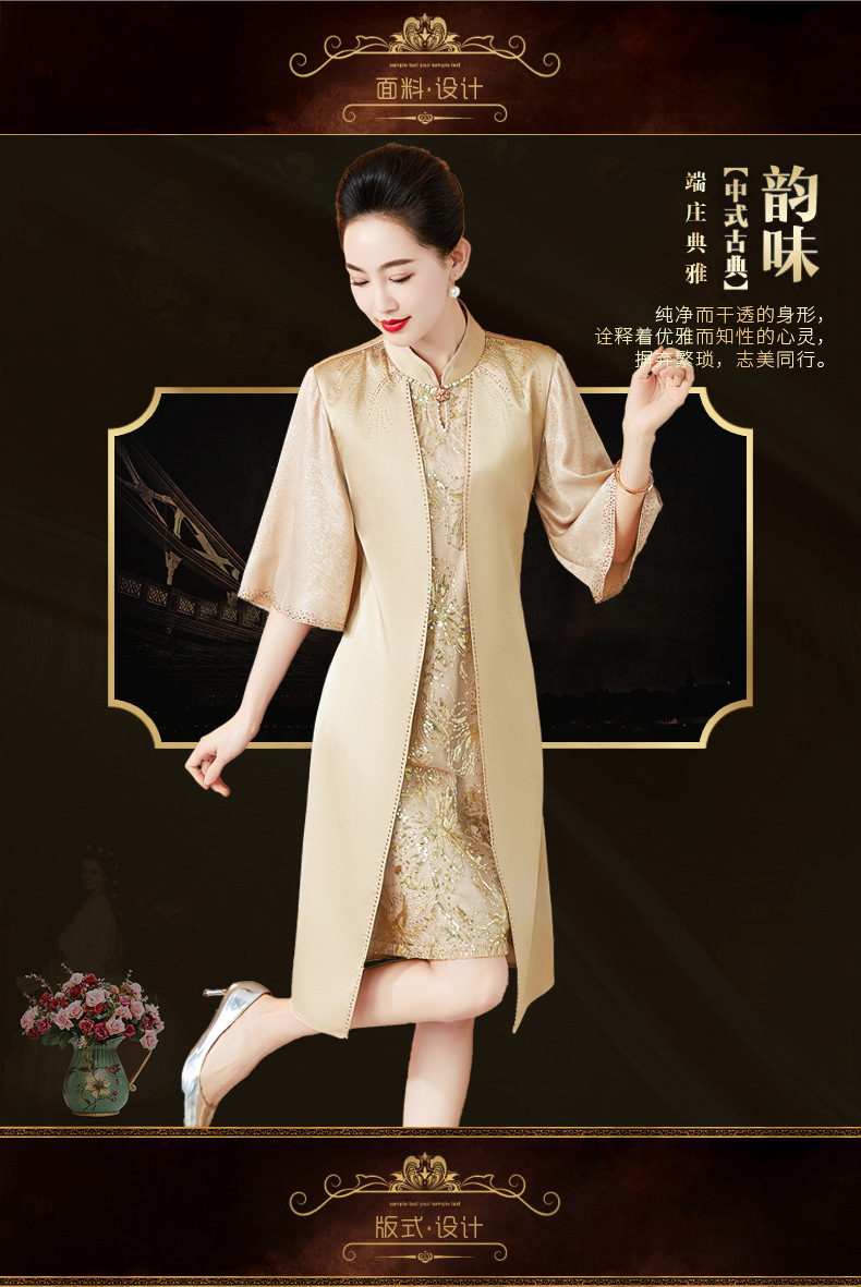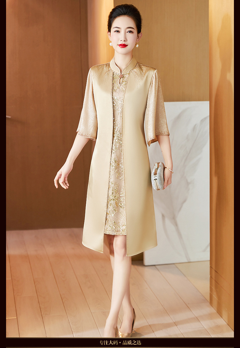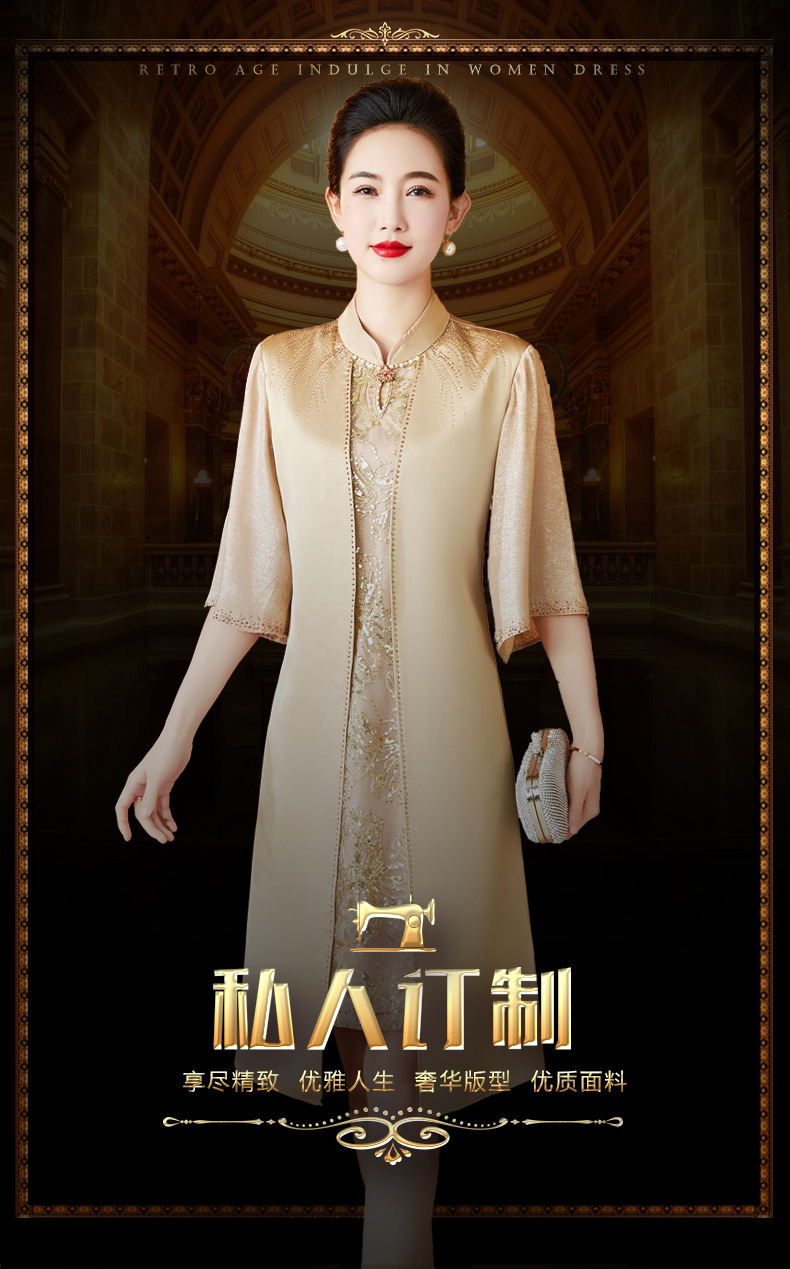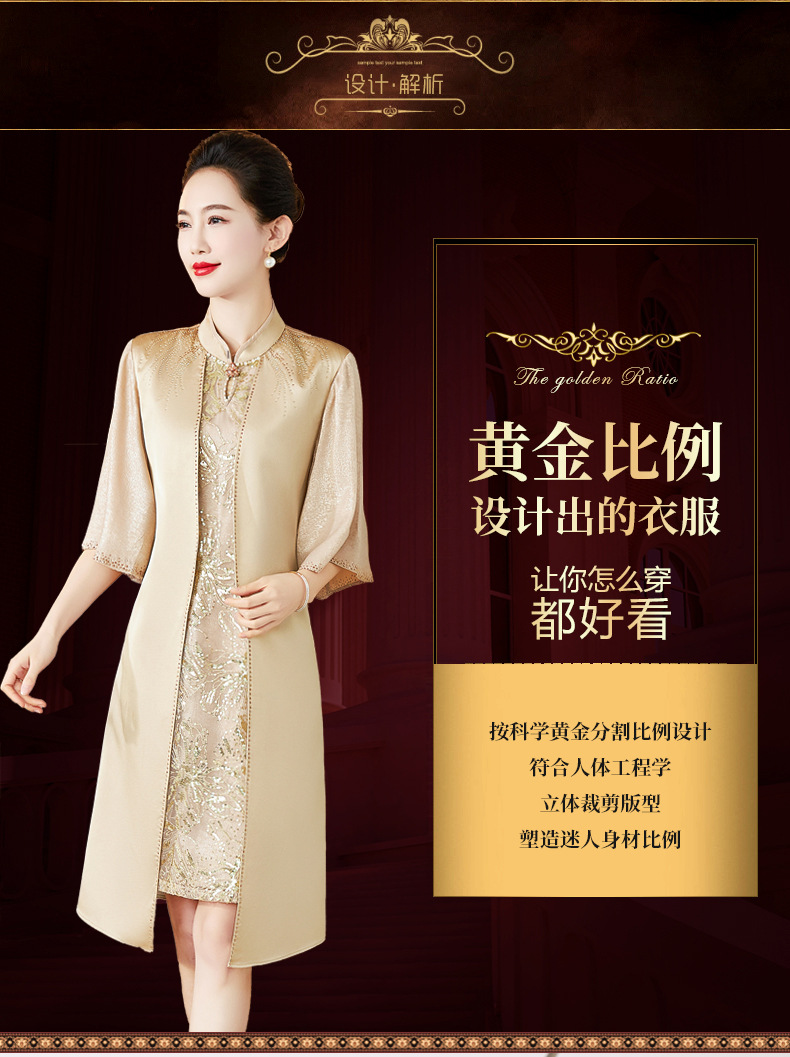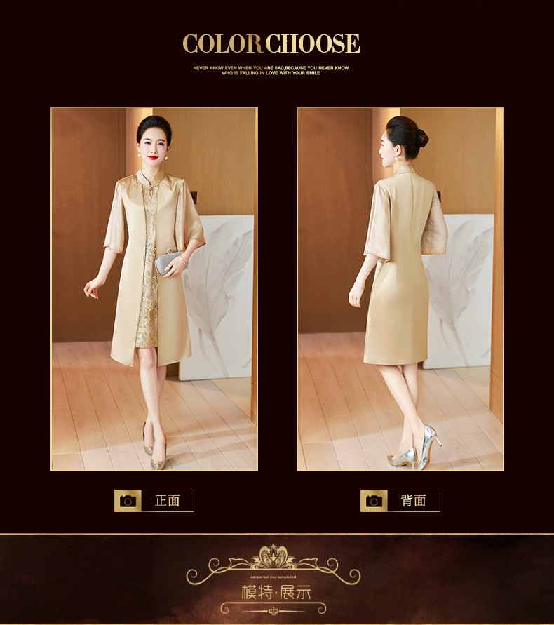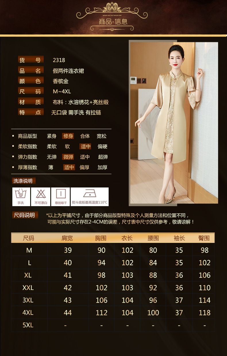 LC-2318春夏妈妈礼服高贵喜优雅婆婆婚宴礼服时尚假两件连衣裙
