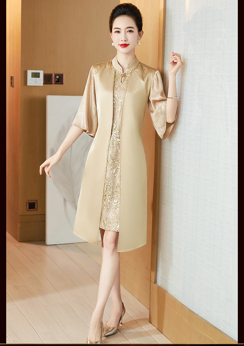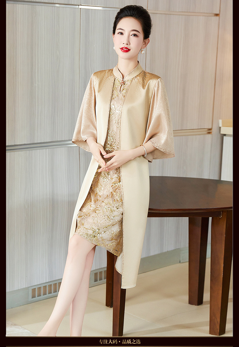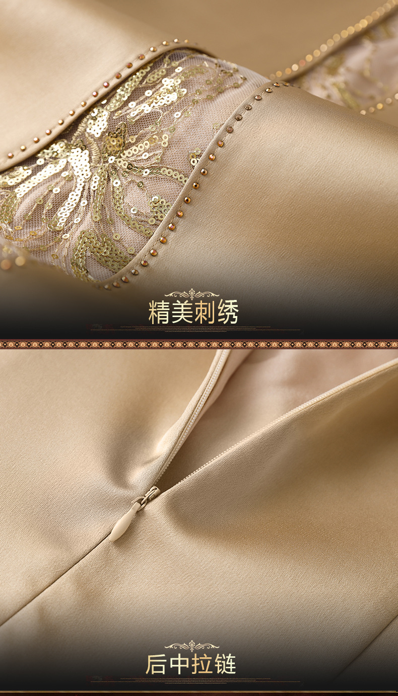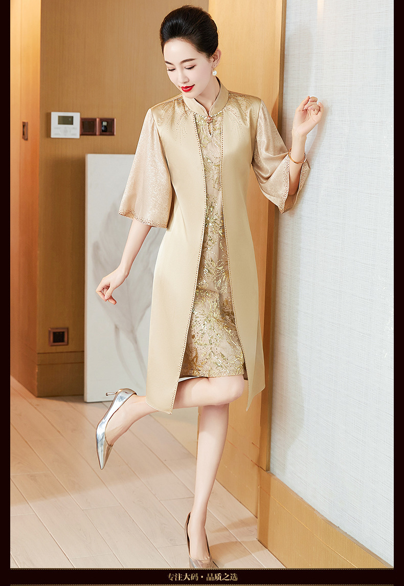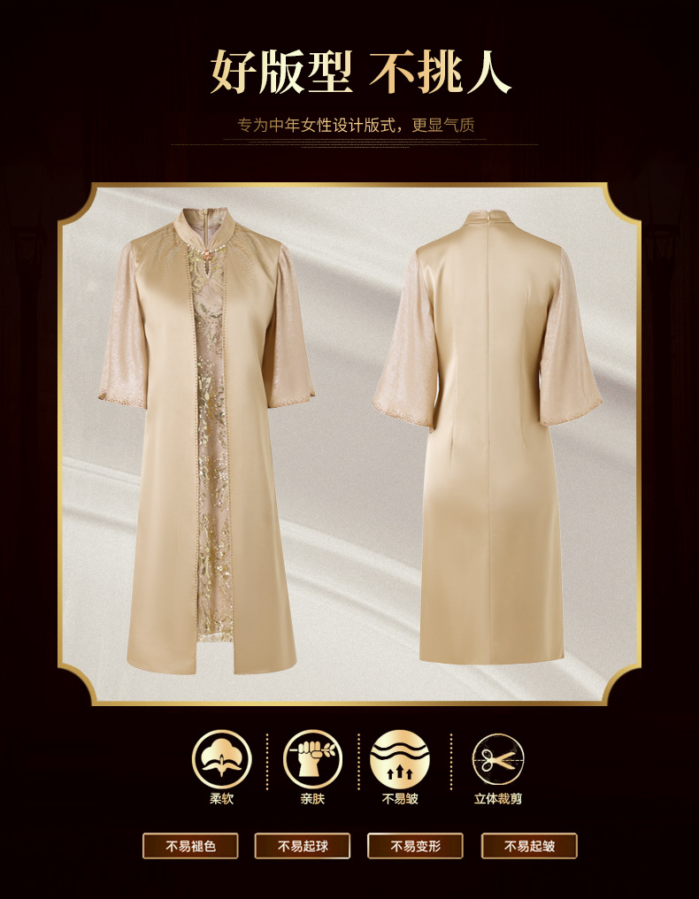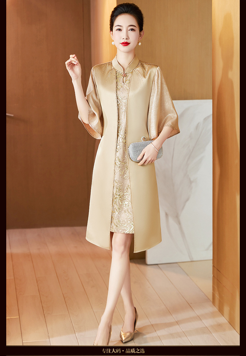 LC-2318春夏妈妈礼服高贵喜优雅婆婆婚宴礼服时尚假两件连衣裙