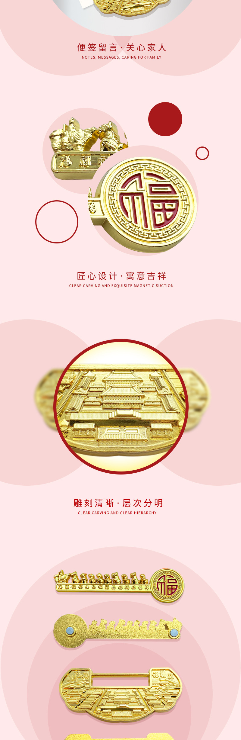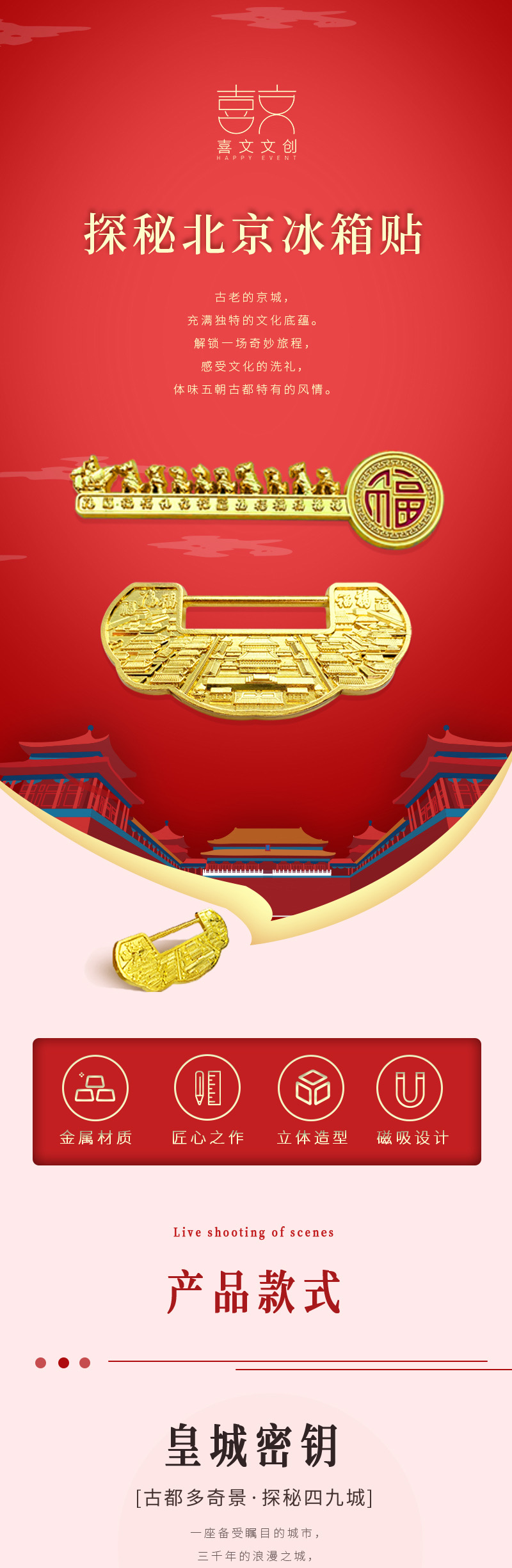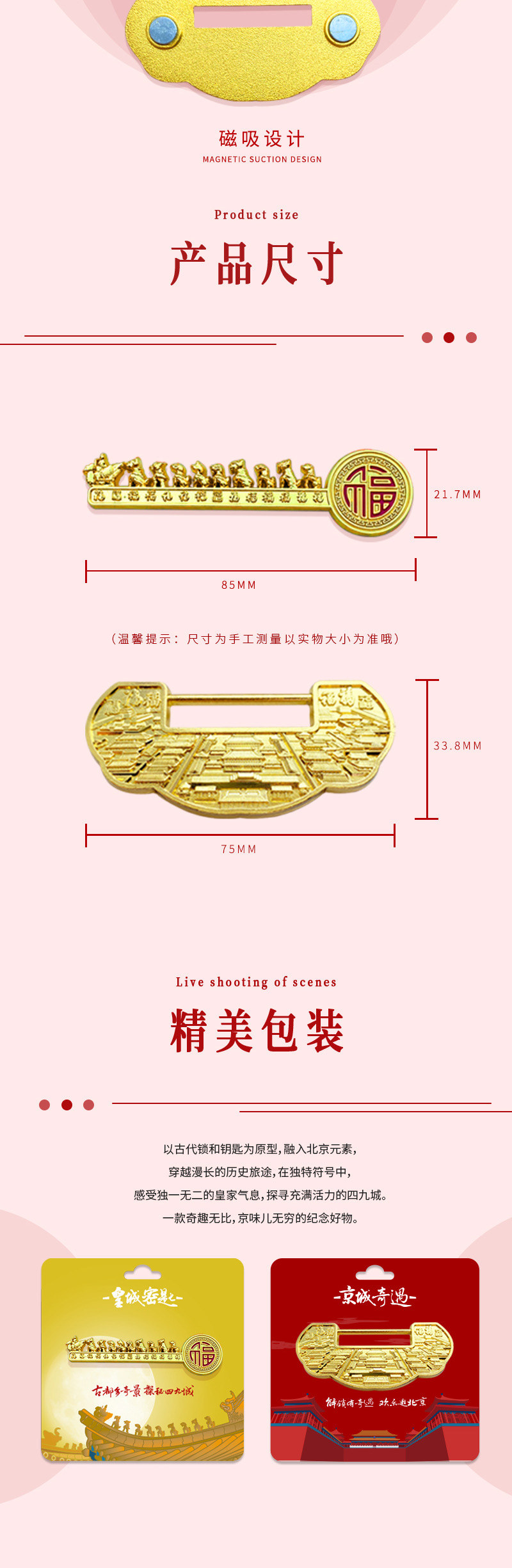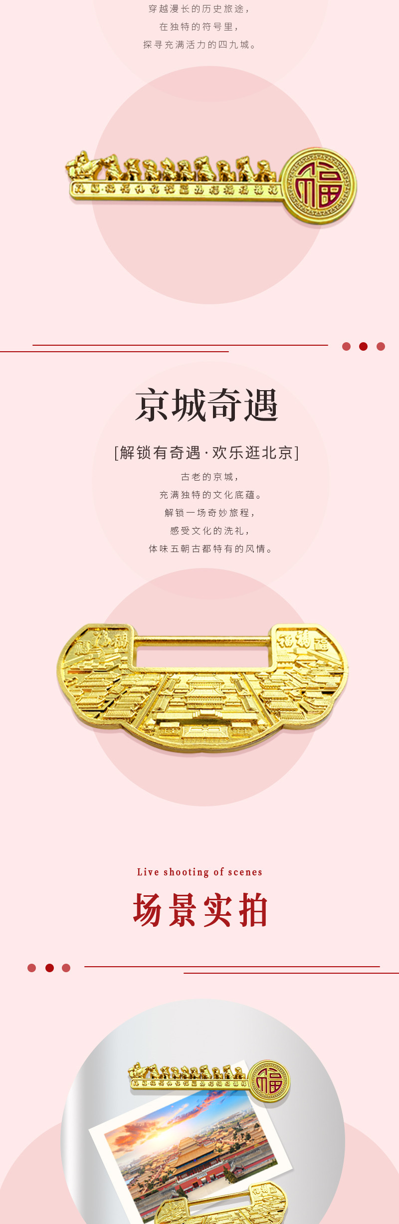京城金锁钥系列冰箱贴 故宫脊兽北京纪念品钥匙锁创意磁铁吸铁冰箱贴金属材质