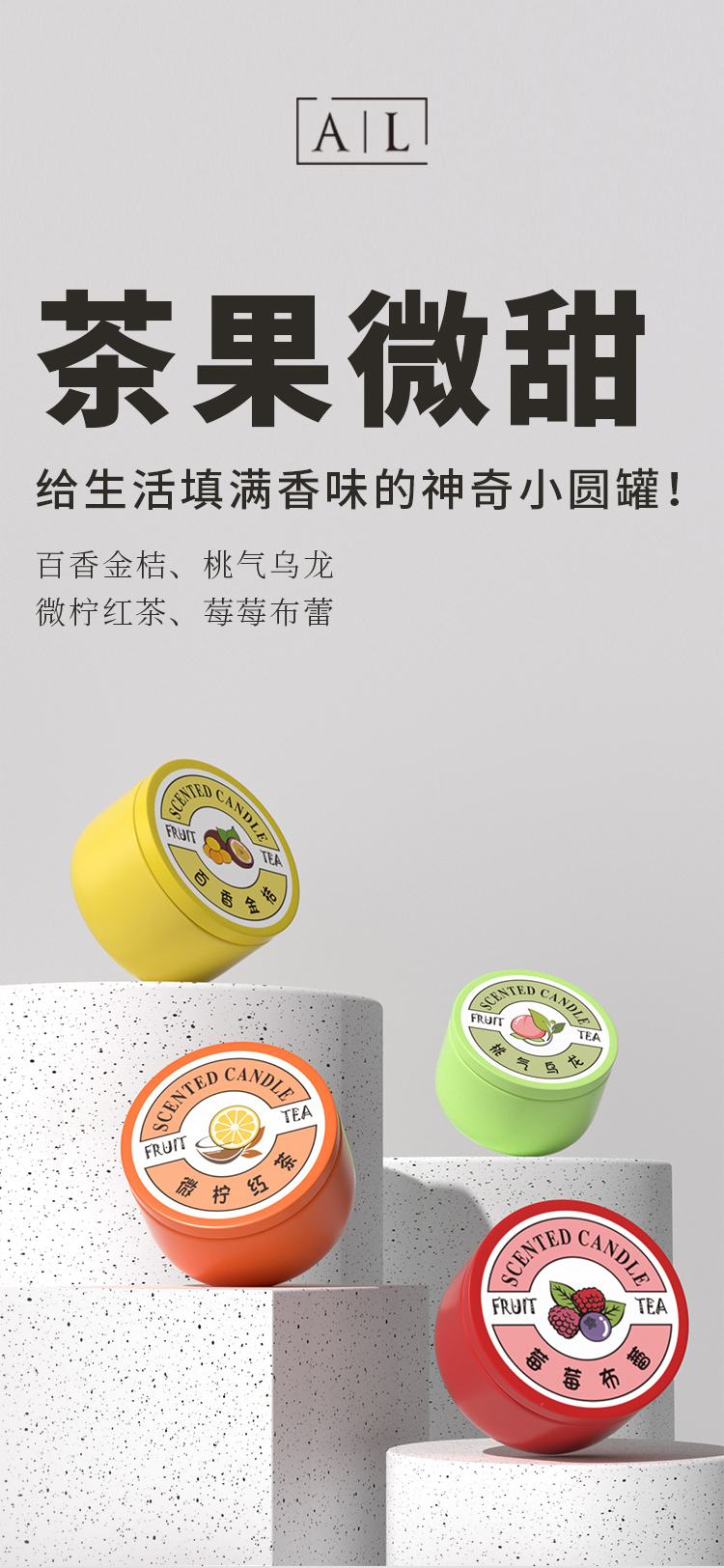 AL美通香薰蜡烛无烟椰蜡室内持久茶果微甜礼盒果茶香味蜡烛香氛