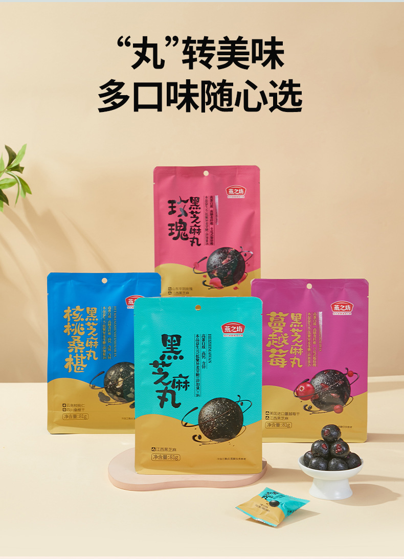 【“丸”转美味,多口味随心选~】黑芝麻丸0糖 独立小袋包装 黑芝麻丸子养生丸小零食 七分柔润 三分绵软 微甜不腻 恰到好处-QQ