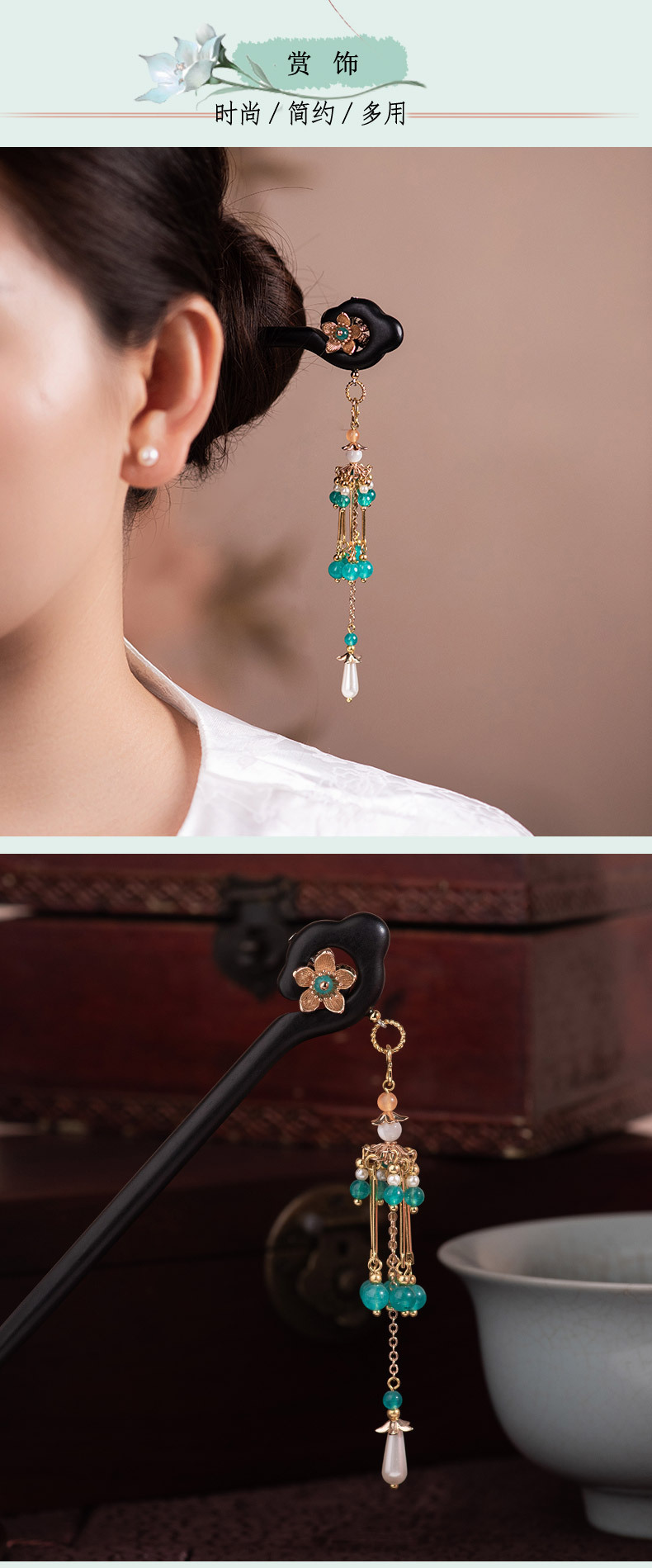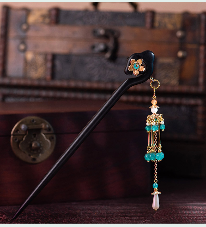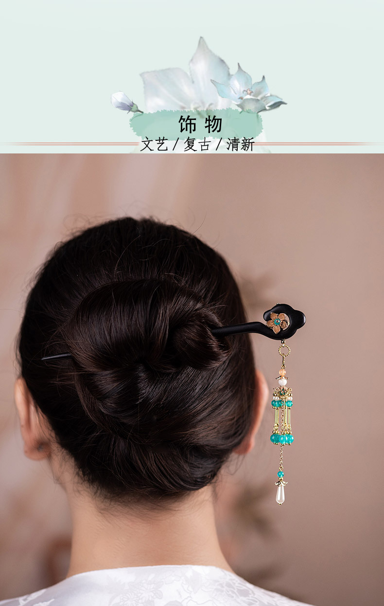JGL【楼兰】黑檀木流苏步摇发簪新中式高级感木簪马面裙搭配头饰批发