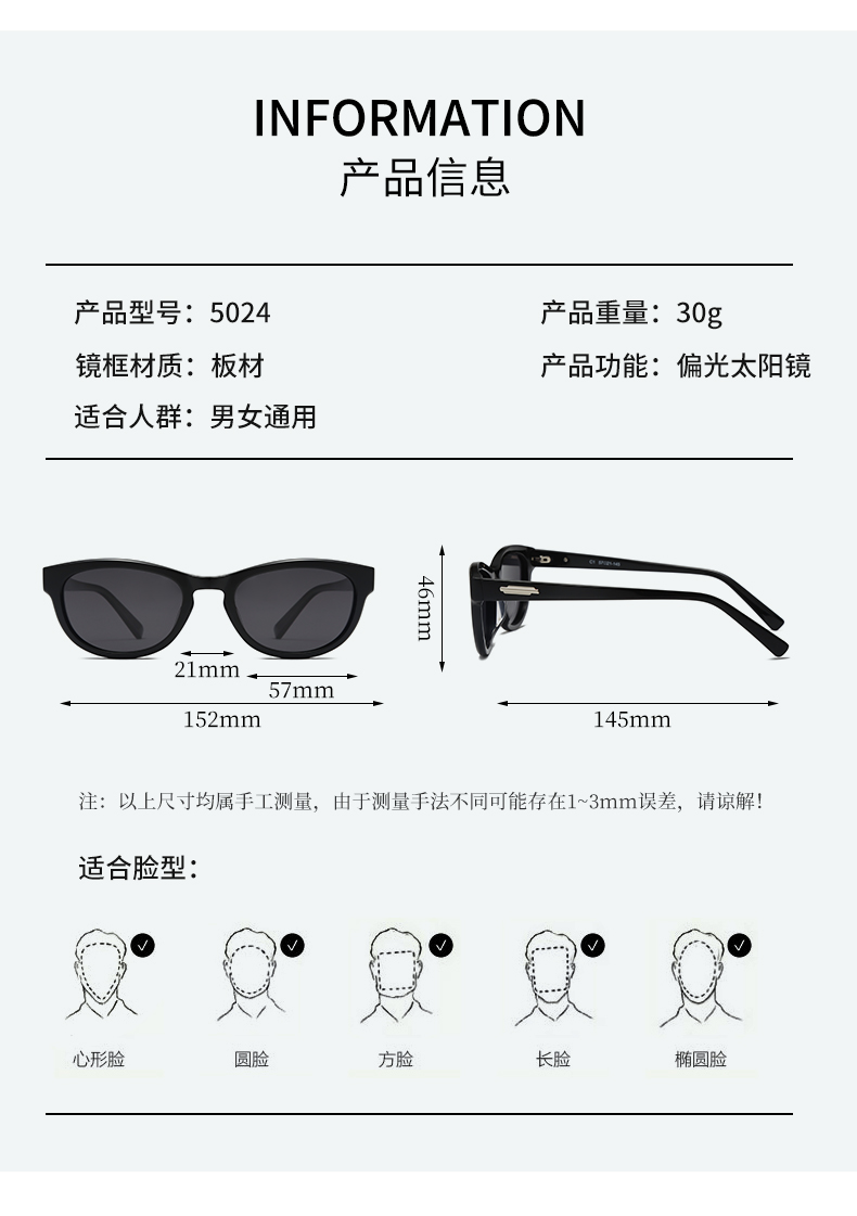 骊佳墨镜时尚椭圆大框偏光镜5024