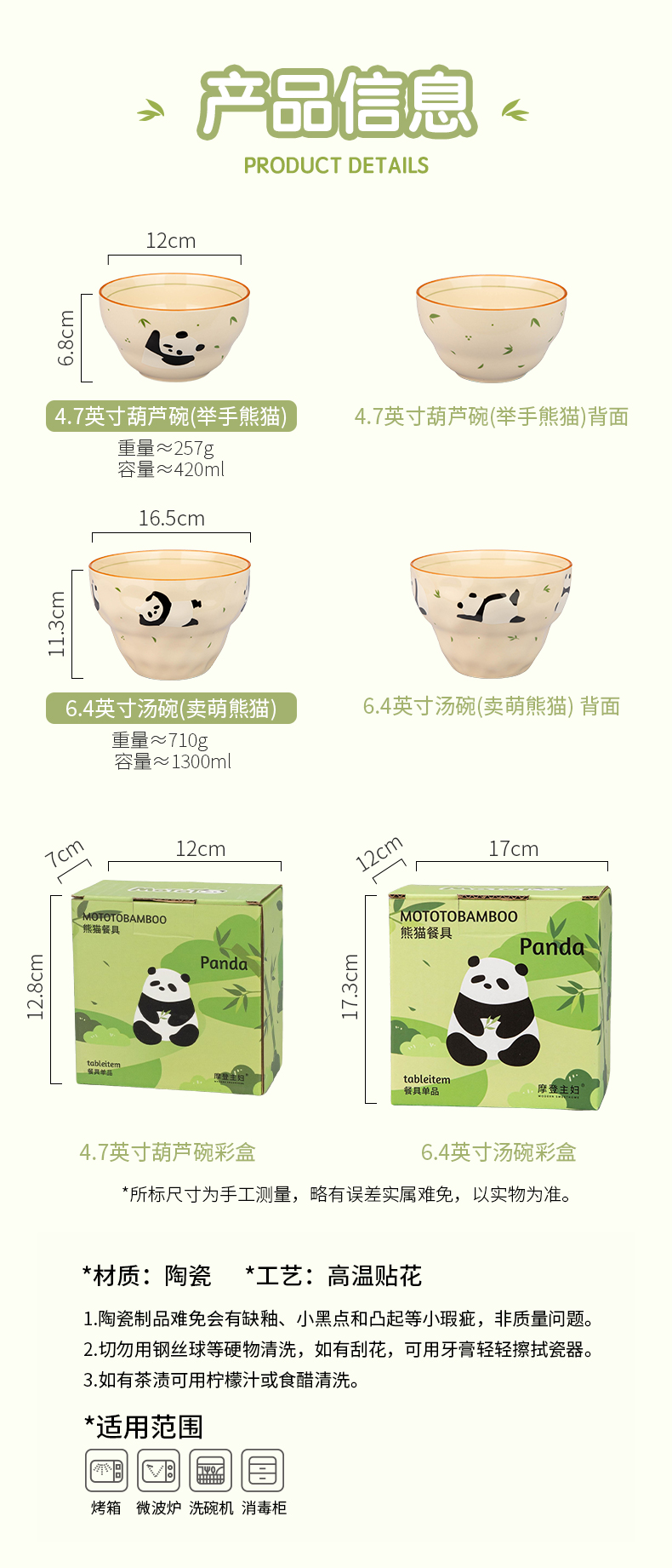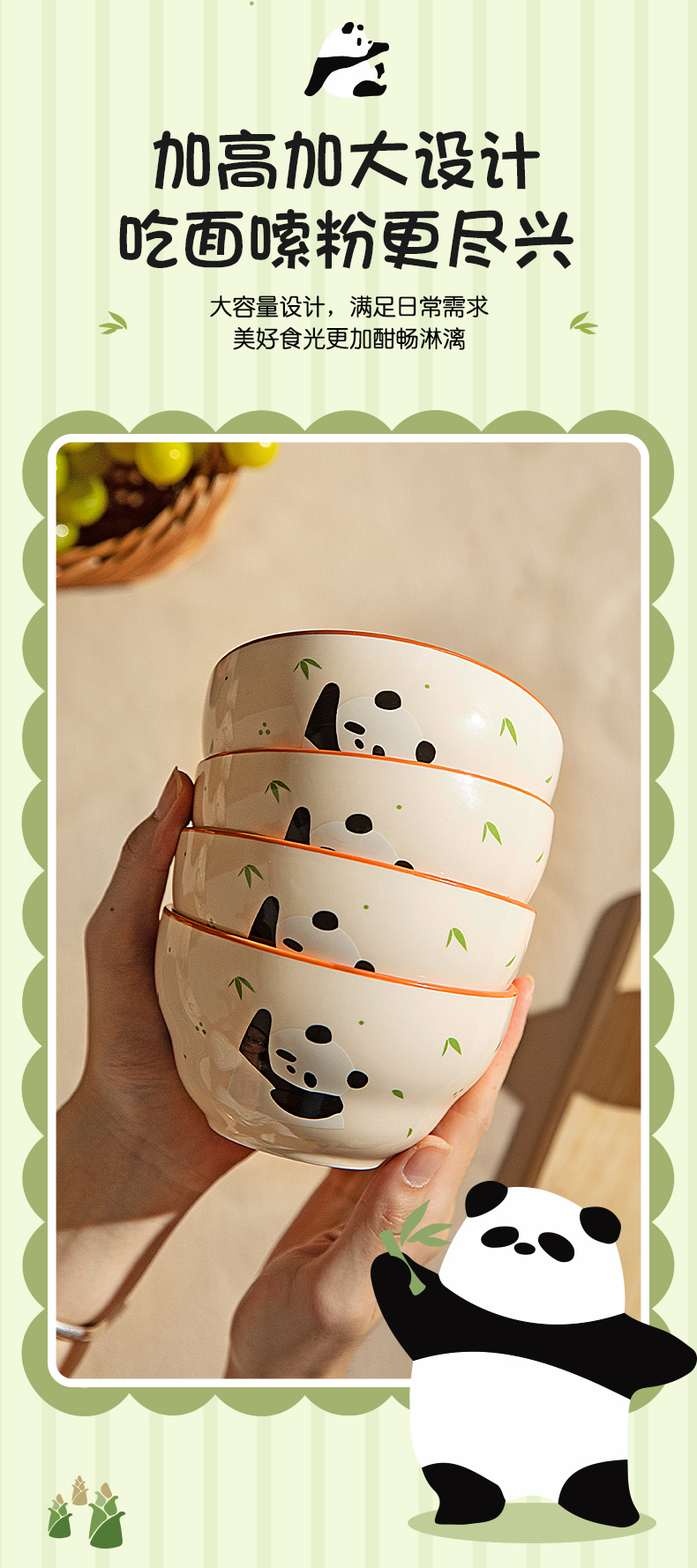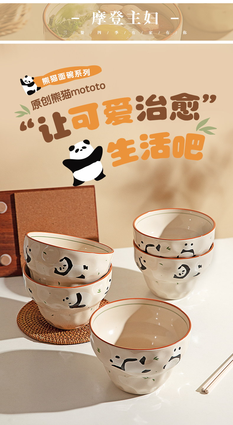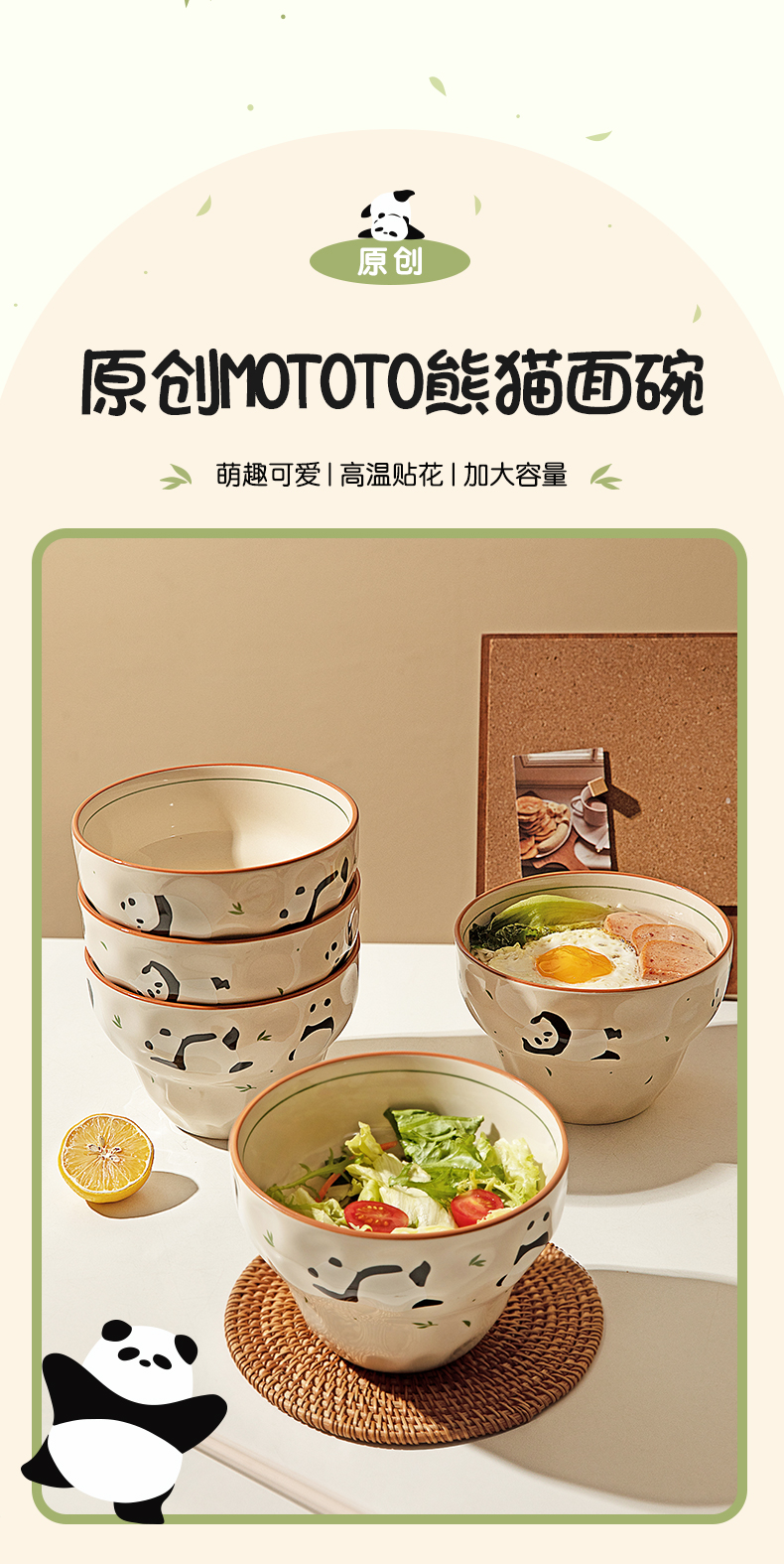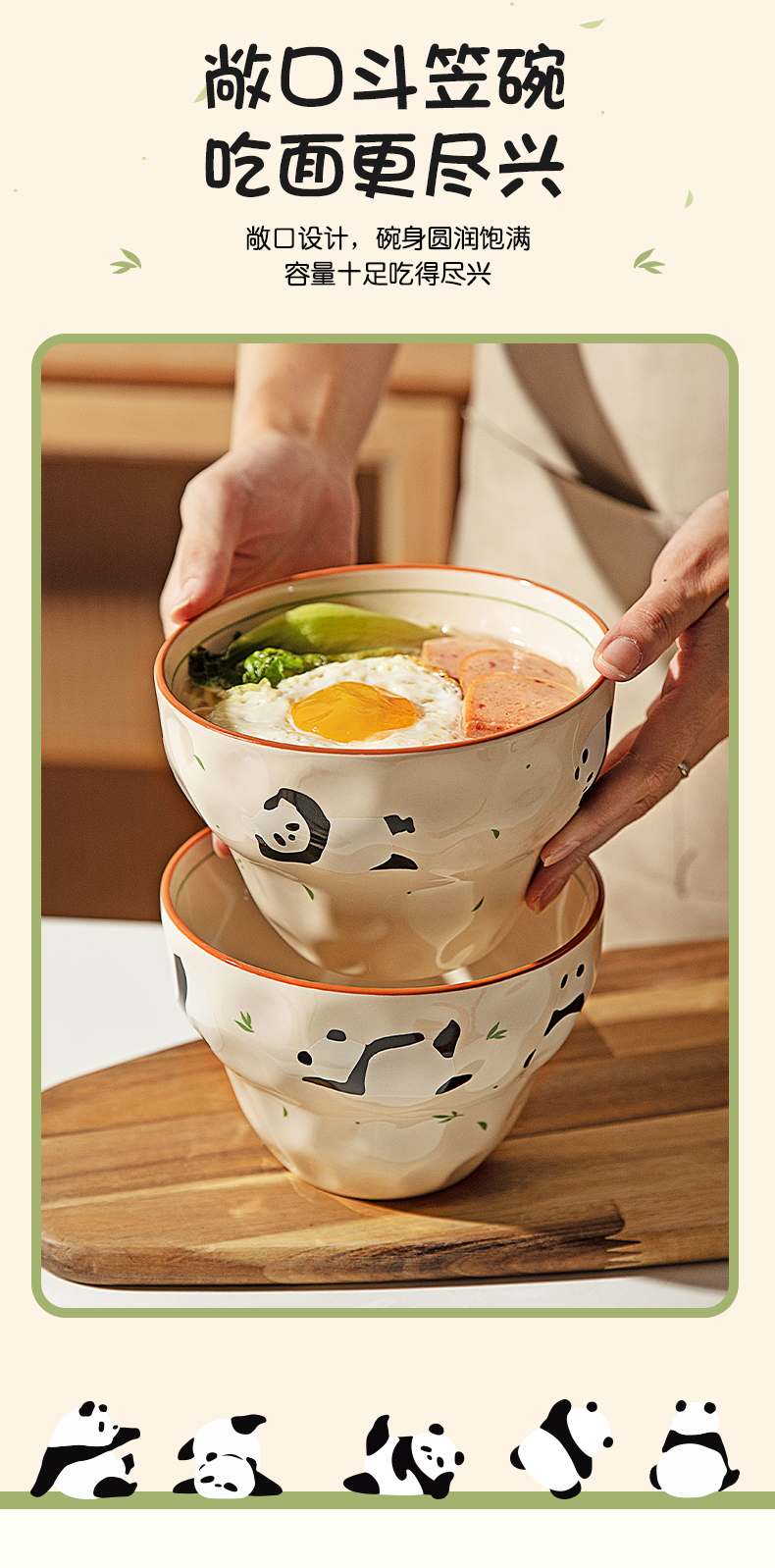 摩登主妇mototo熊猫面碗家用2025新款斗笠泡面碗个人专用拉面汤碗