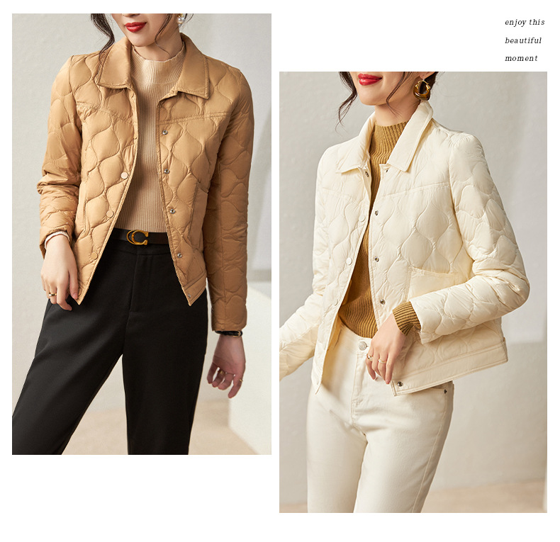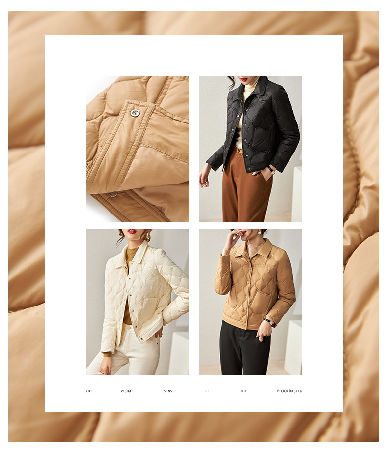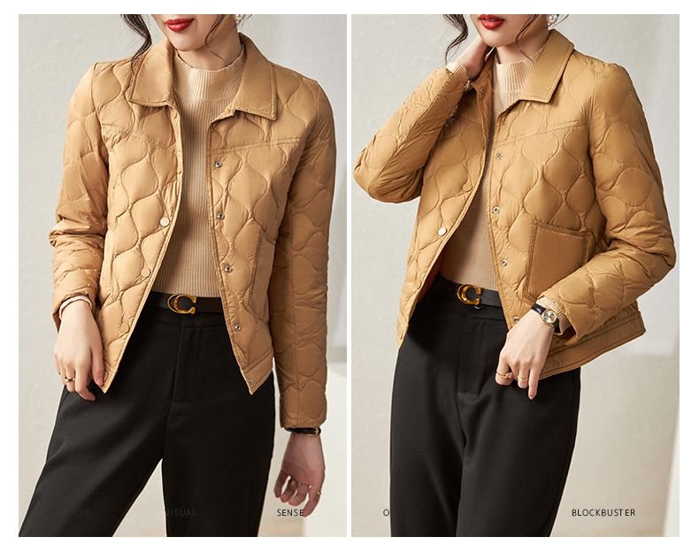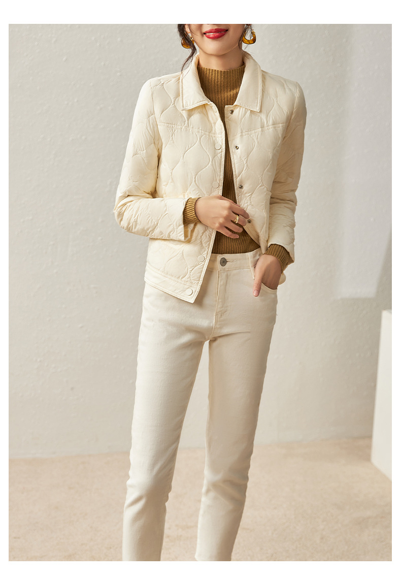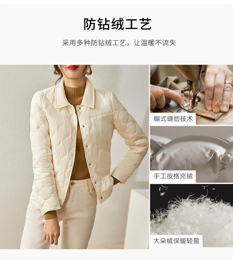 秋冬新款,波浪绗缝防跑绒90白鸭绒短款轻薄羽绒服外套上衣WLZD-2221708