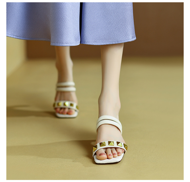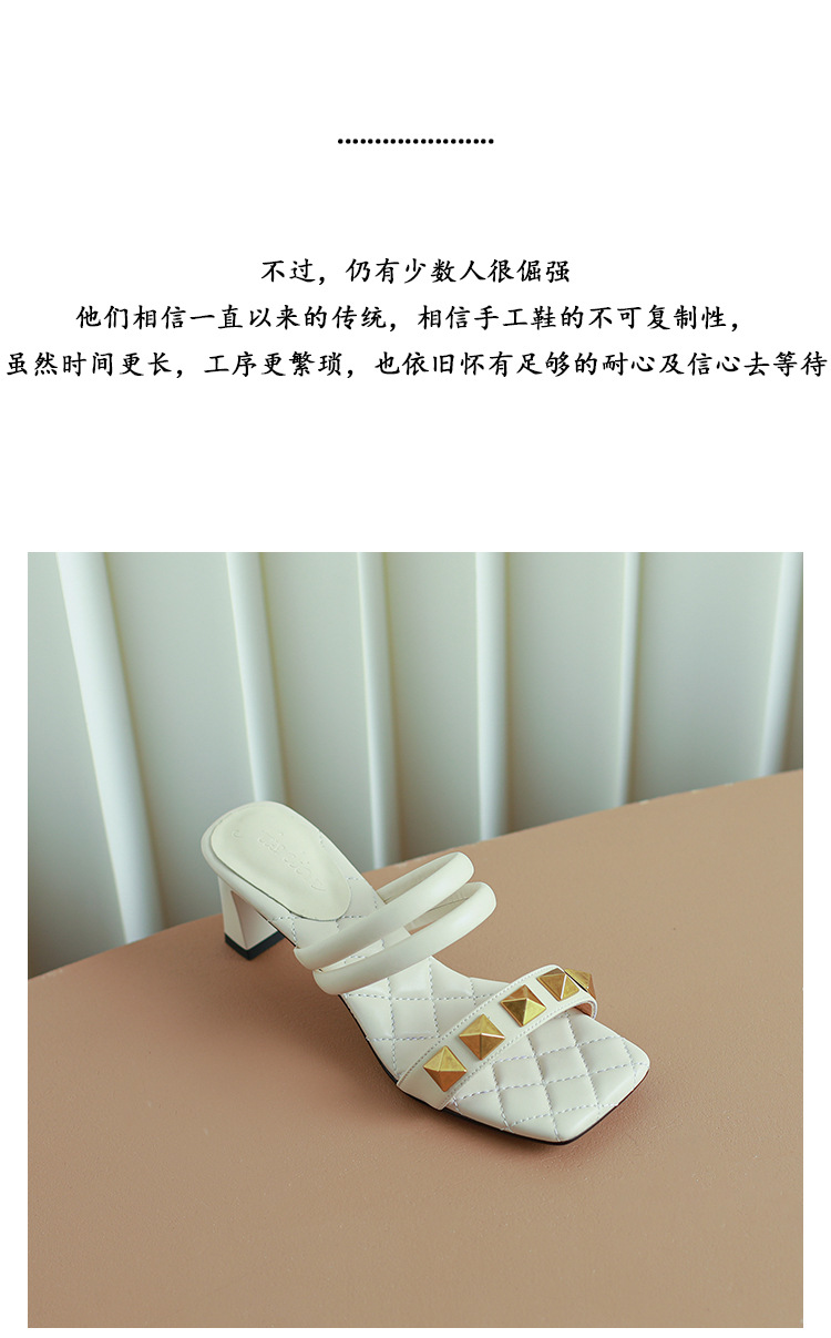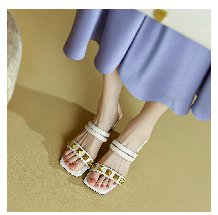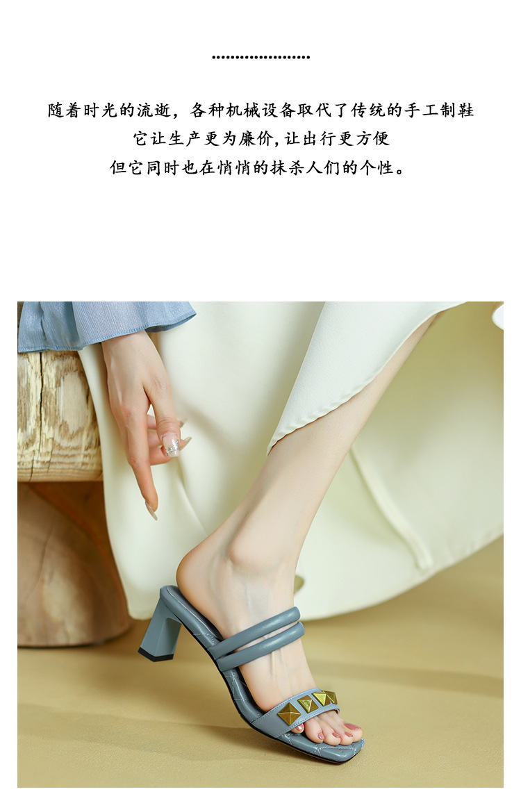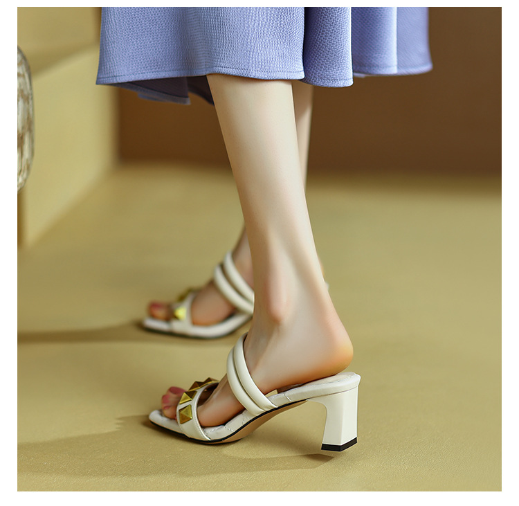 牛皮一字带铆钉,外穿粗高跟露趾凉拖DB-M5309