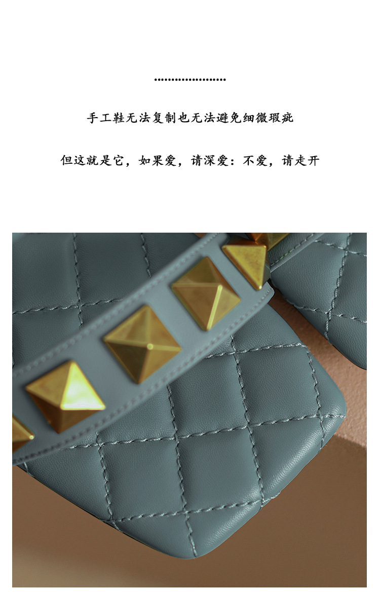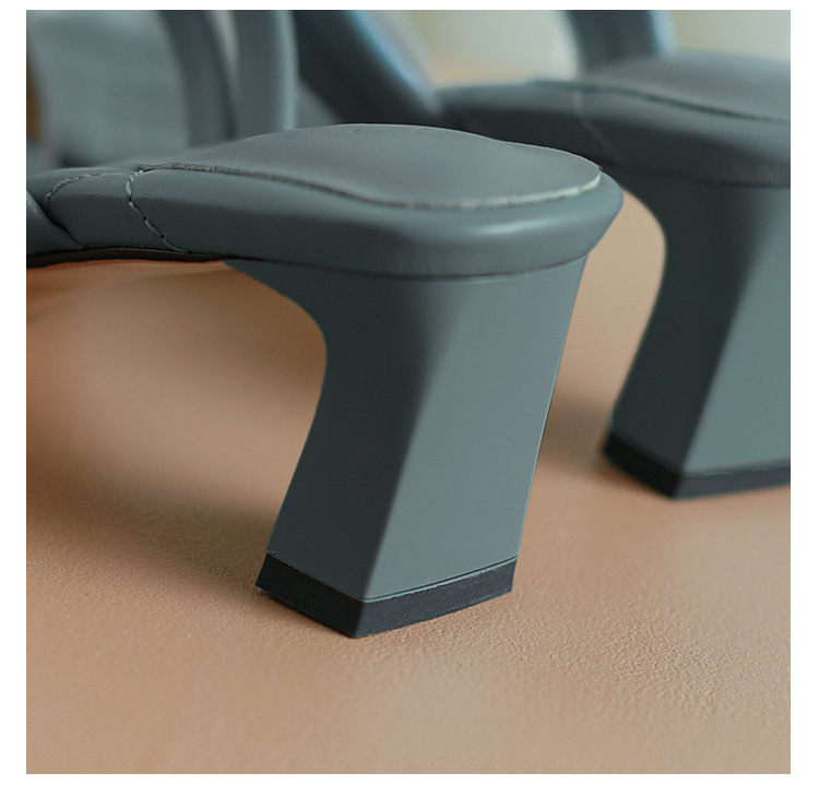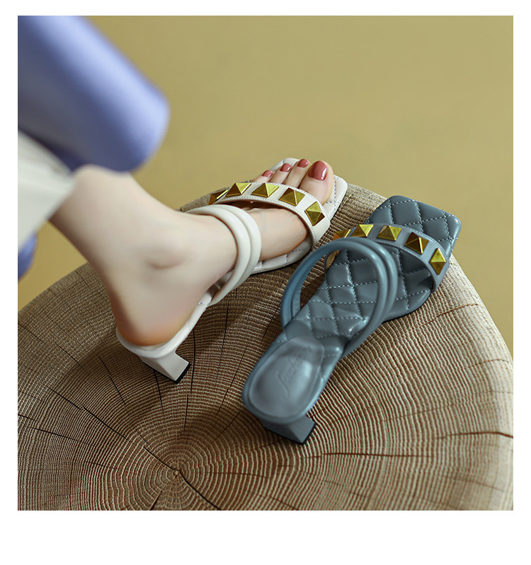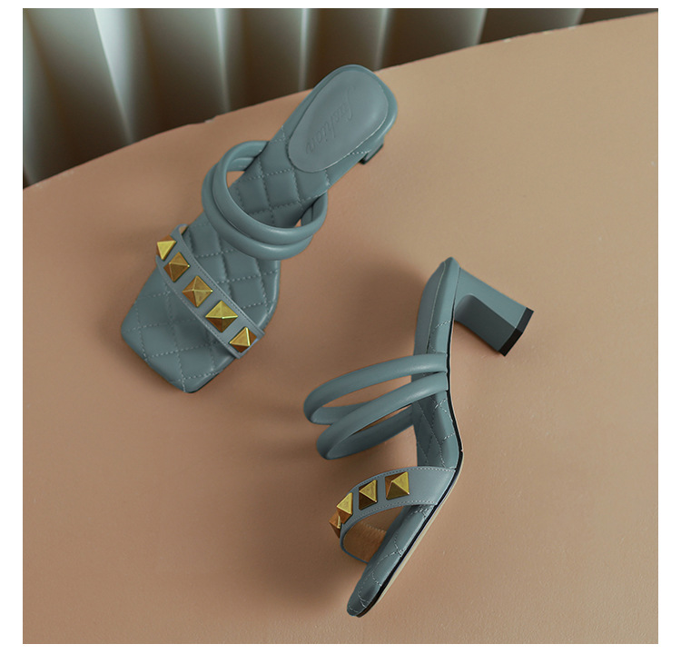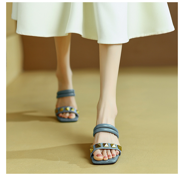 牛皮一字带铆钉,外穿粗高跟露趾凉拖DB-M5309