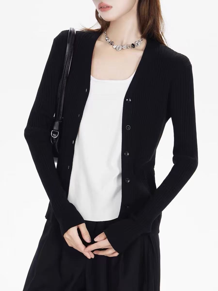 【孤品捡漏】(品质)G216黑色品质六粒扣修身开衫-喜出