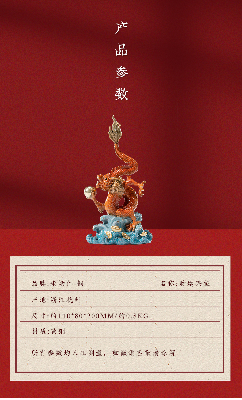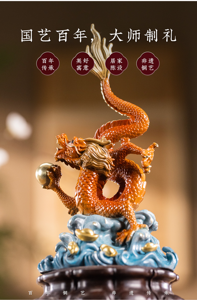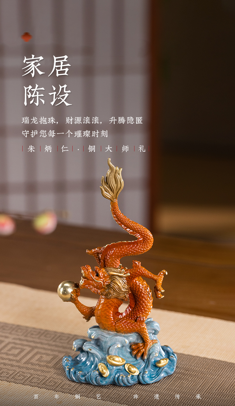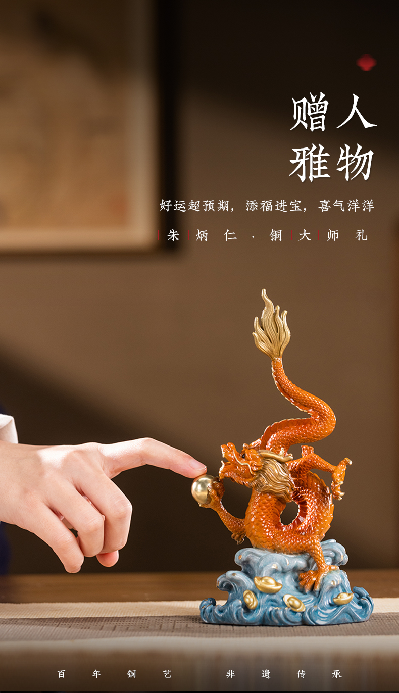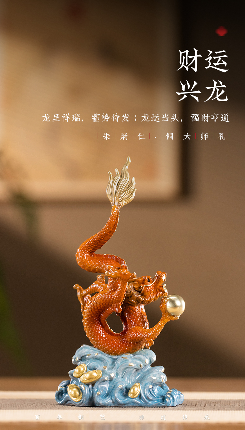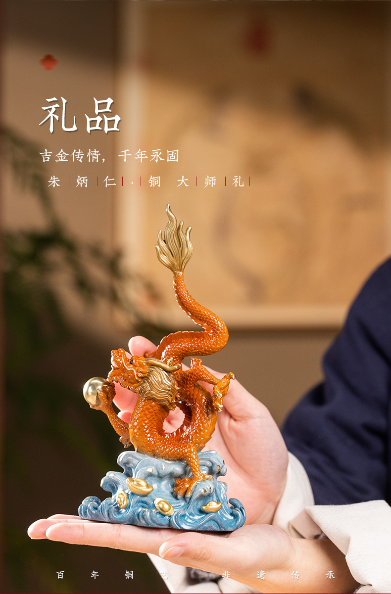 朱炳仁铜 财运兴龙腾飞版龙年摆件桌面办公室家居装饰开业礼品