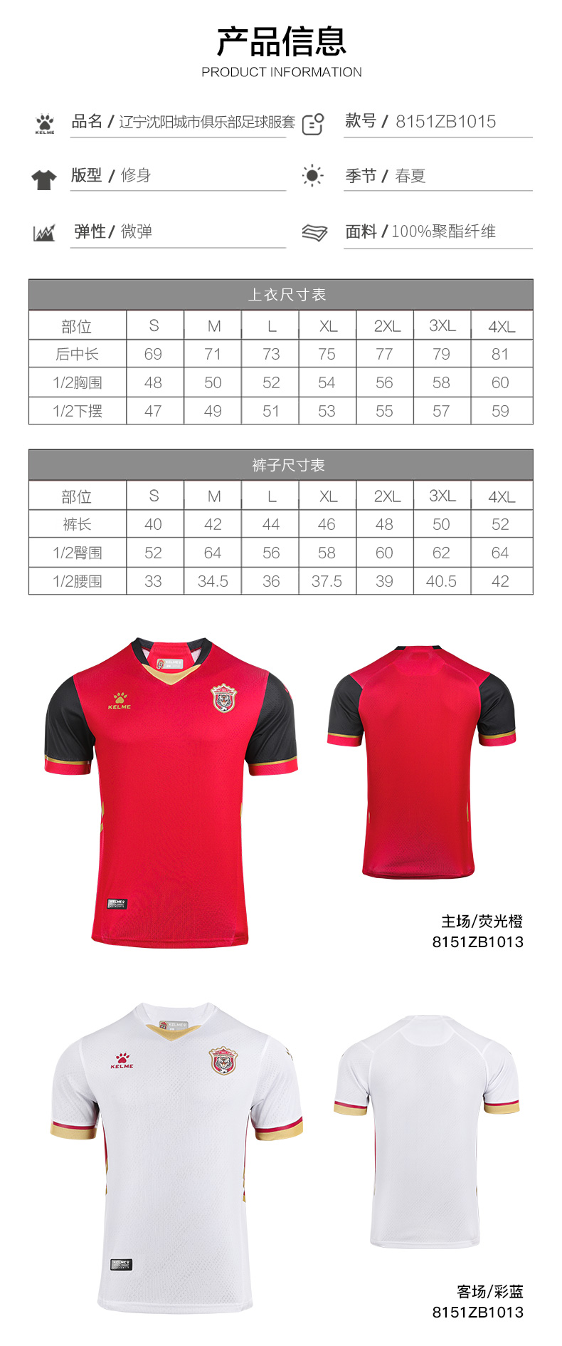 KELME卡尔美足球服 21赛季中甲沈阳城市足球俱乐部 球员版新球衣