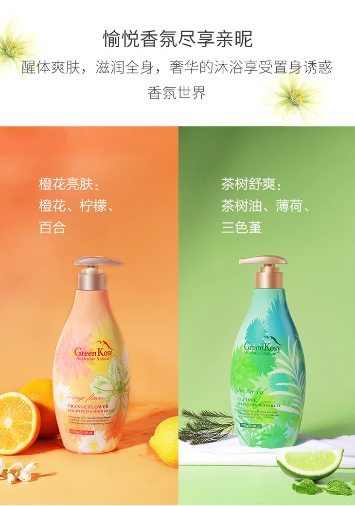 【福利购】700g绿色溪谷橙花亮肤沐浴露 细腻泡沫 净爽肌肤